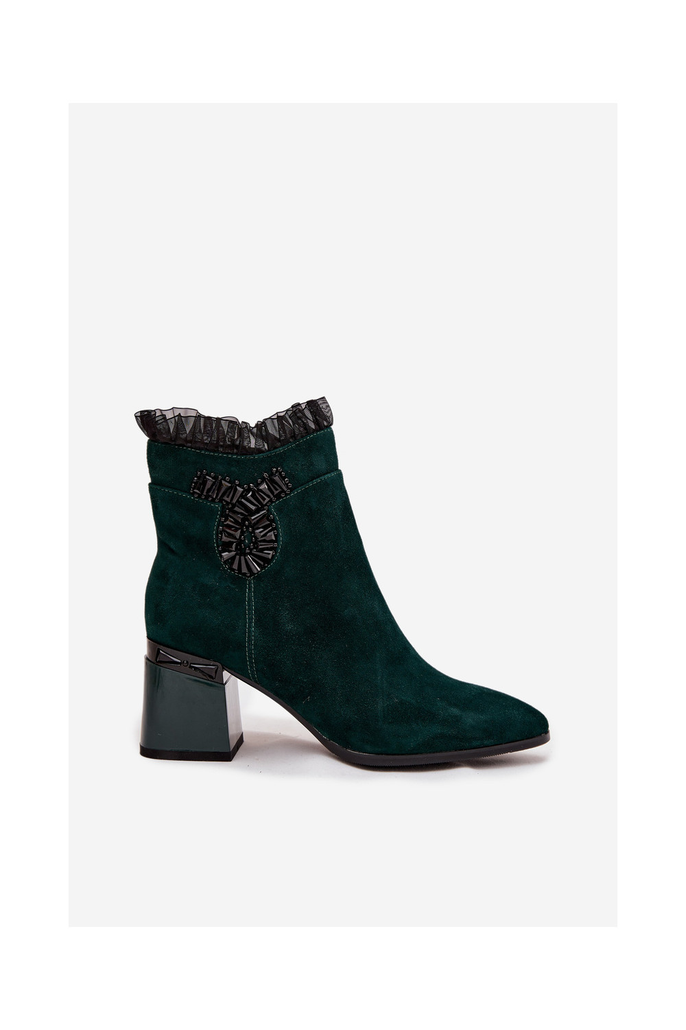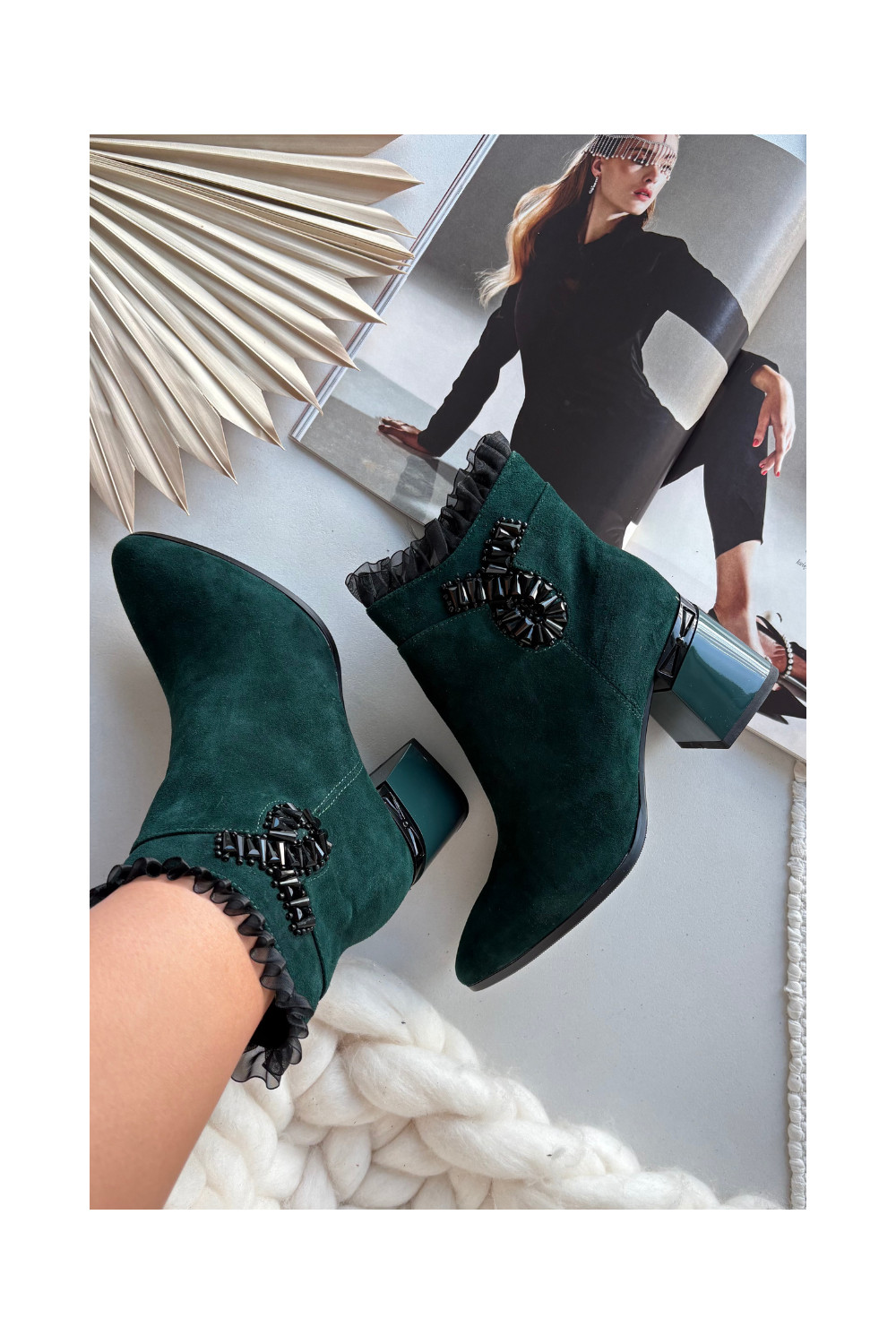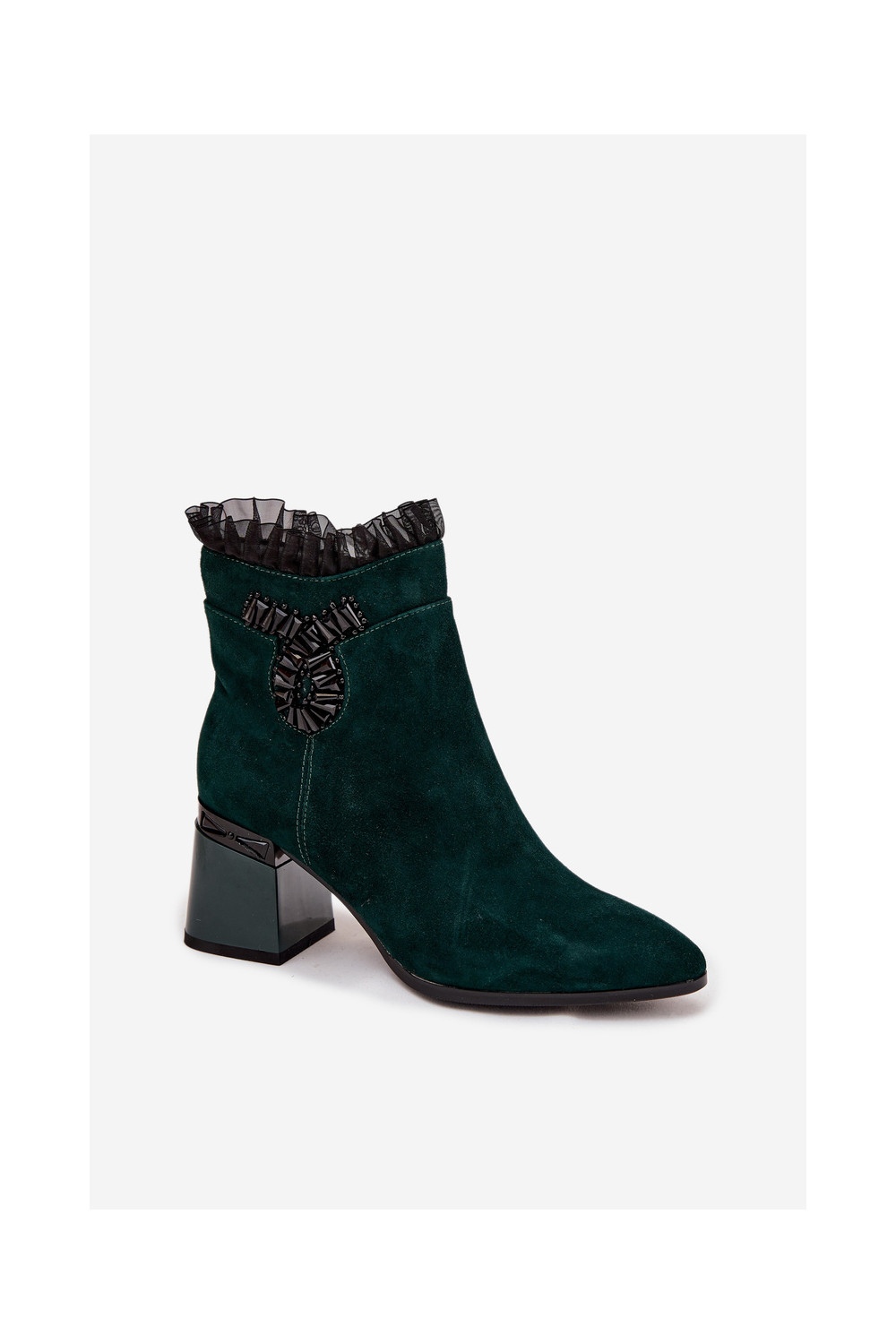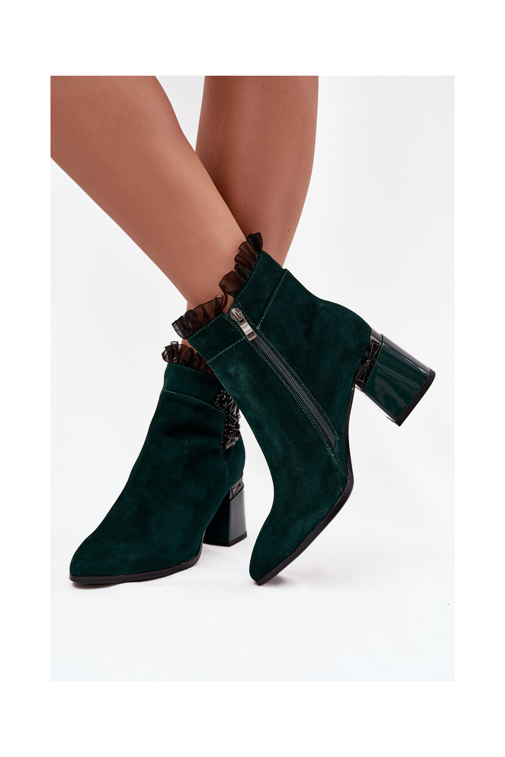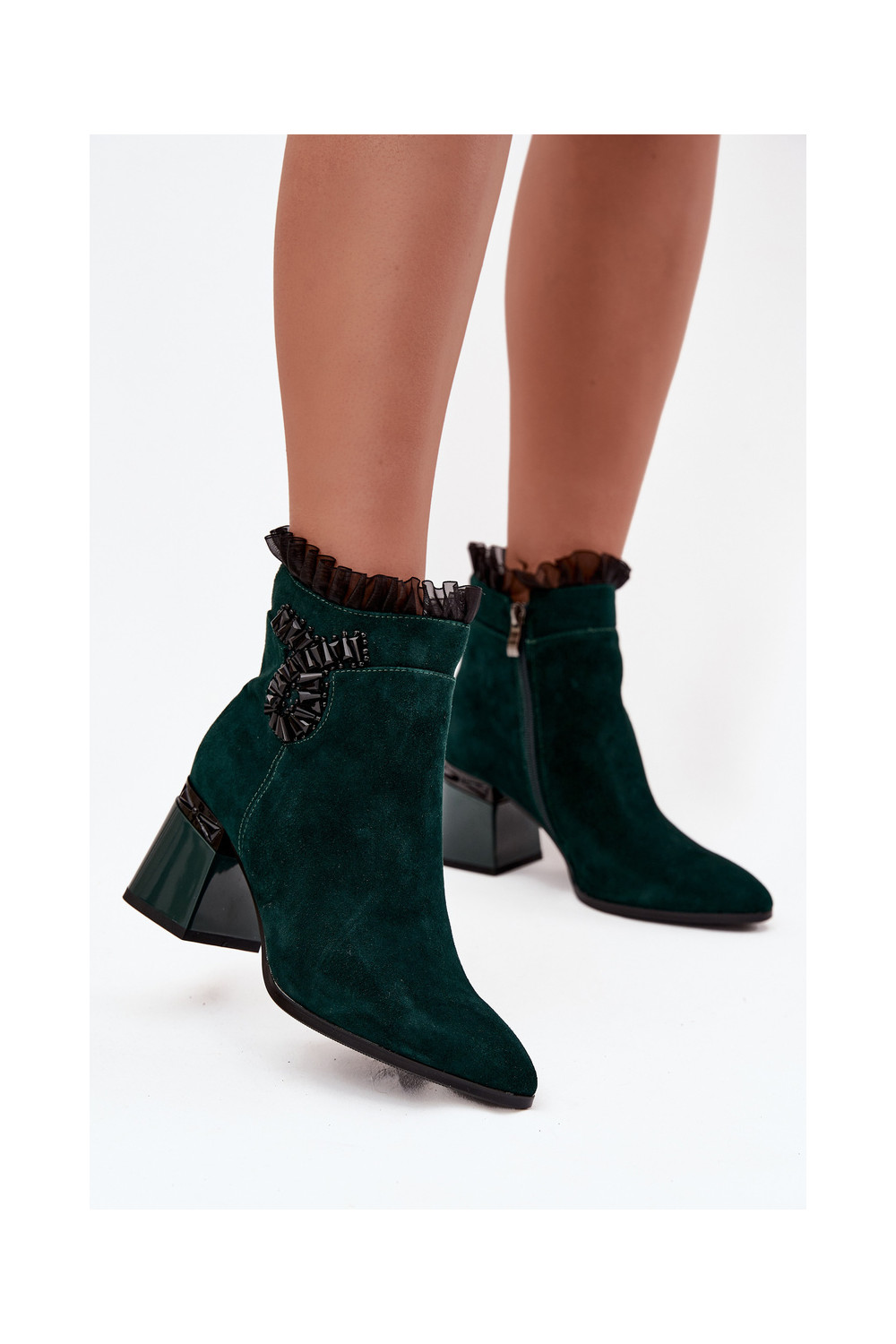 Moteriški pašiltinti dirbtinės zomšos aulinukai su ornamentais D&A MR52-127 butelio žalios spalvos
