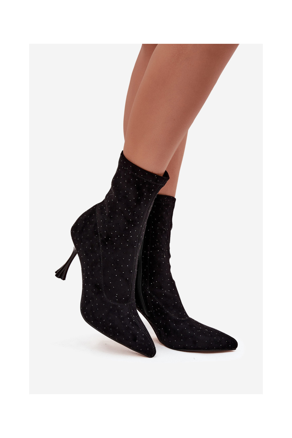 Dekoruotos Moteriški aulinukai su plonais kulniukais D&A JC52-882 Juodos spalvos