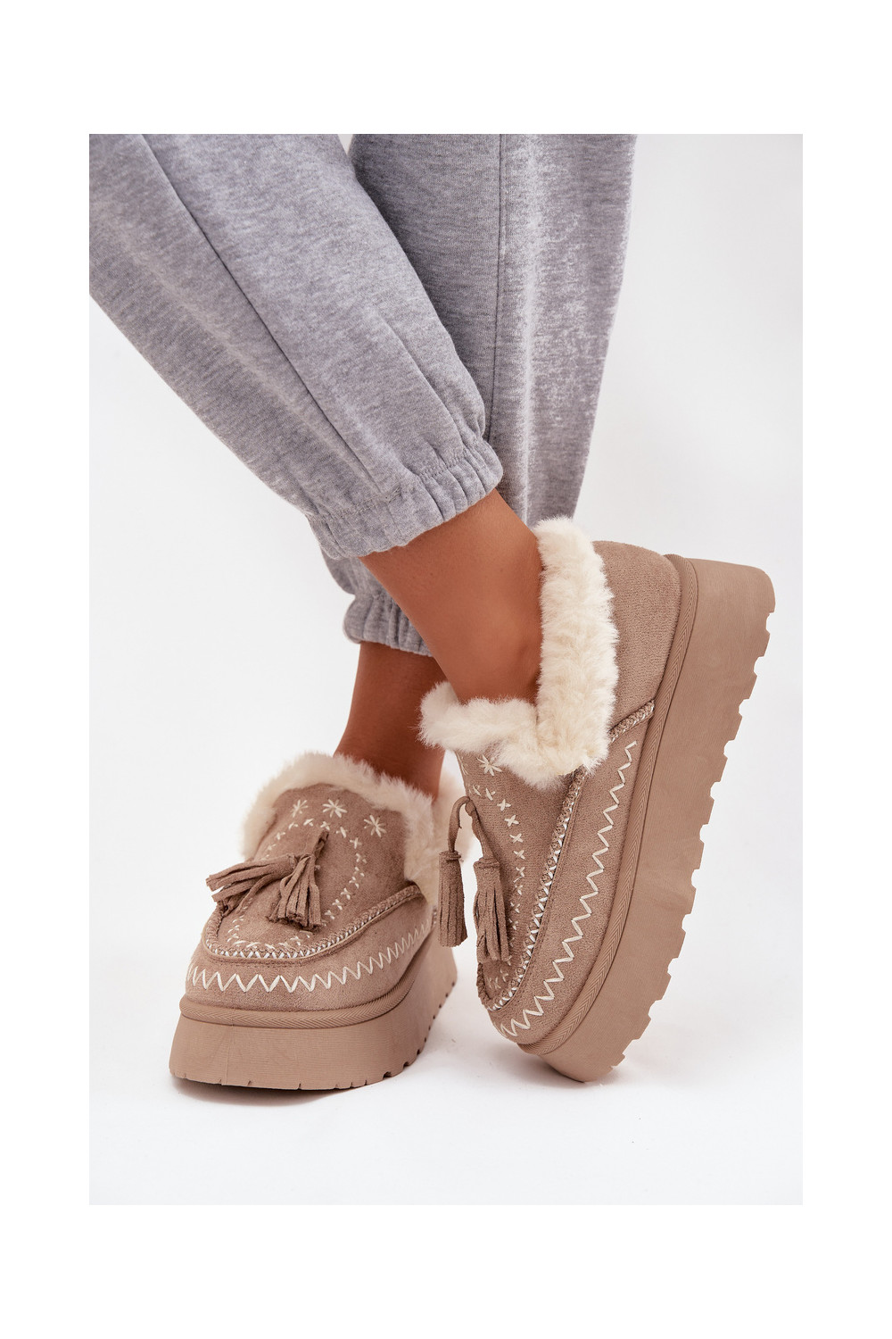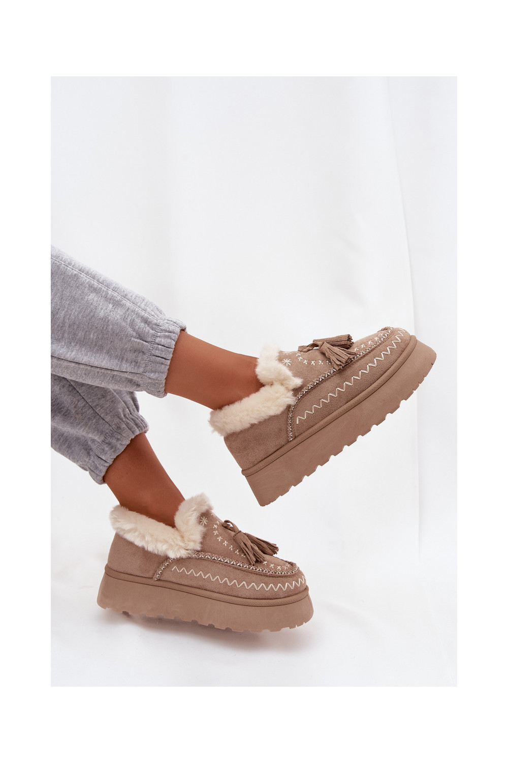 sniego batai su platforma su kailiuku smėlio spalvos Ferayne