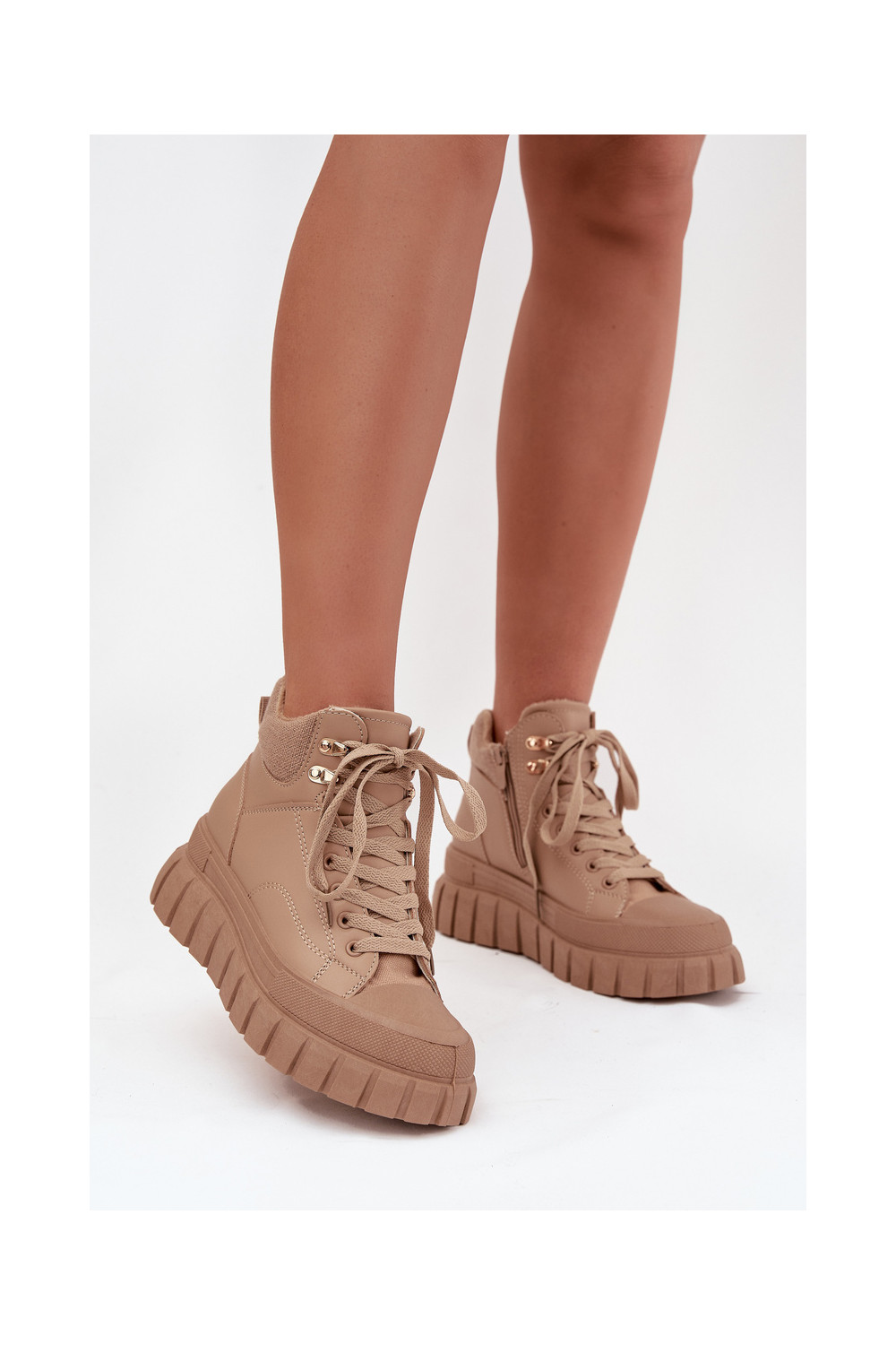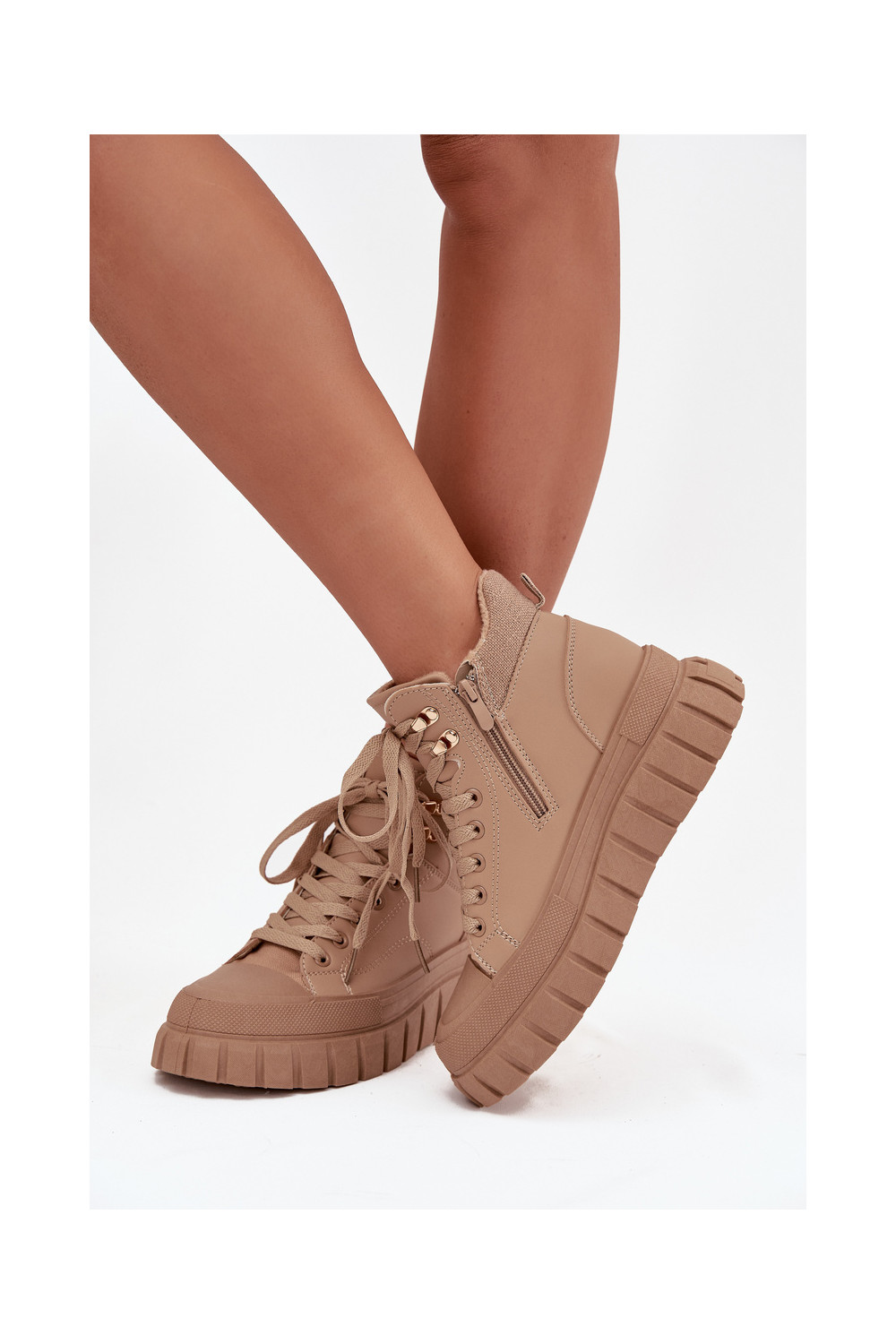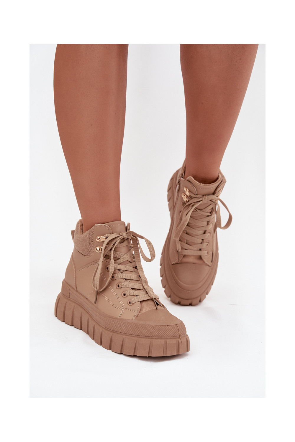 pašiltinti Aulinukai batai su platforma rudos spalvos Carenna