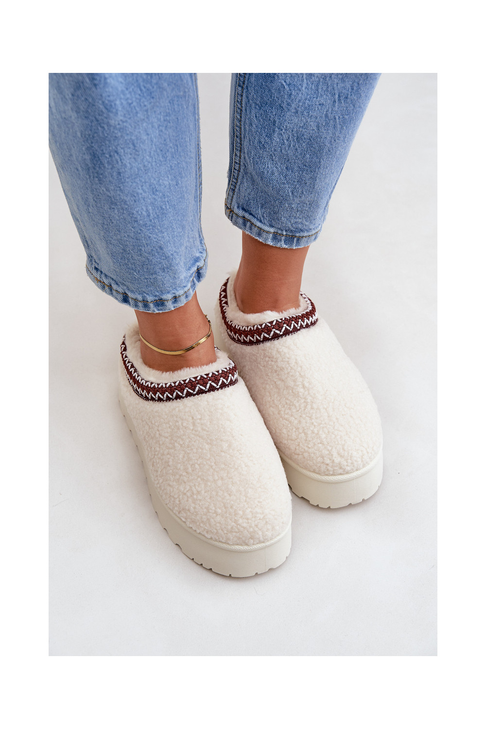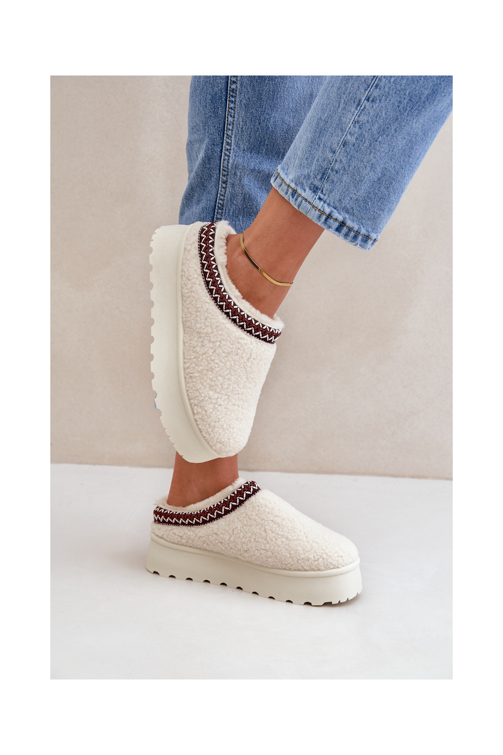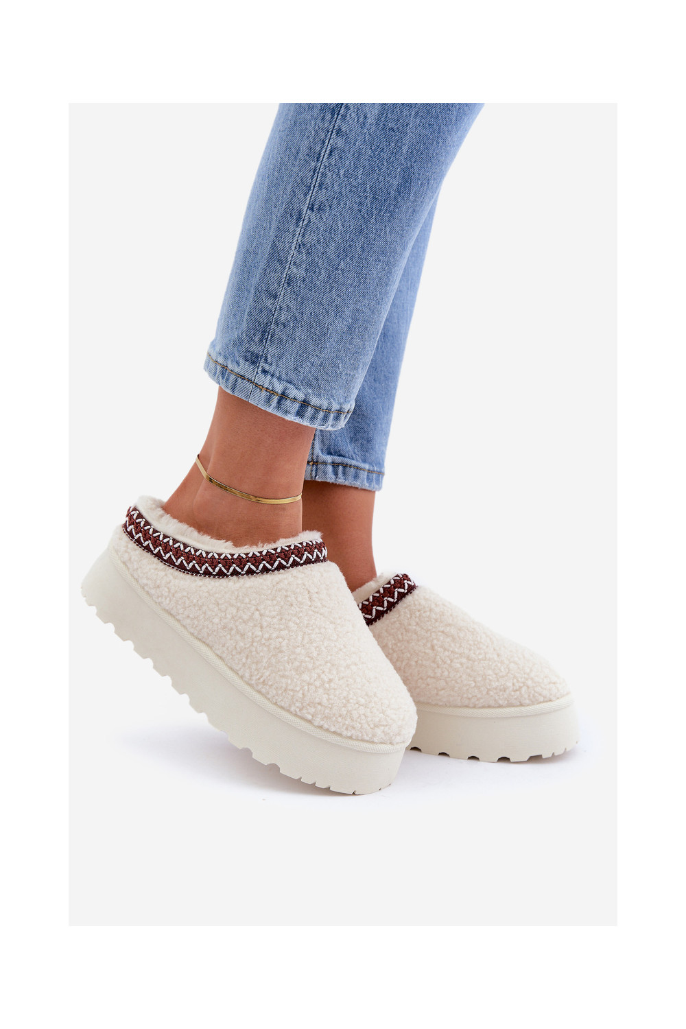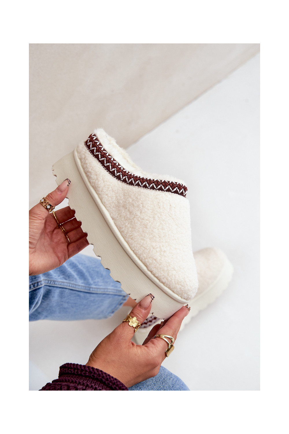 sniego batai Šlepetės su platforma su kailiuku Typu Baranek dramblio kaulo spalvos Ovirissa