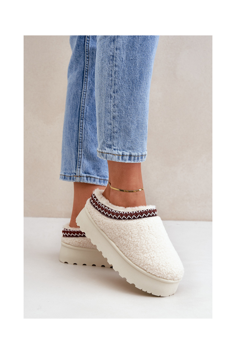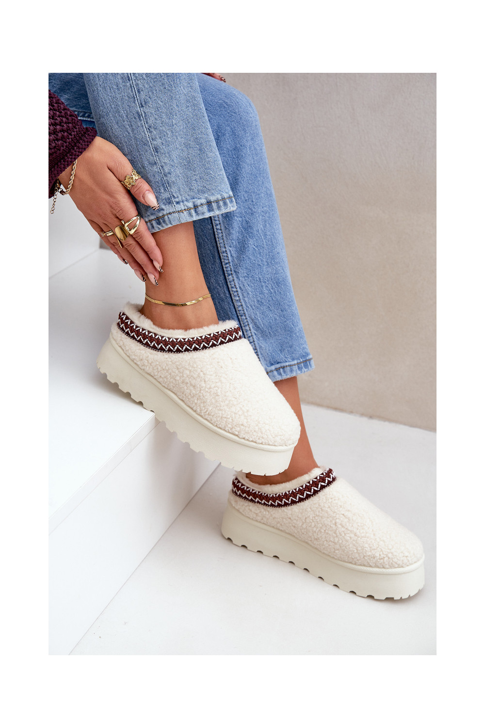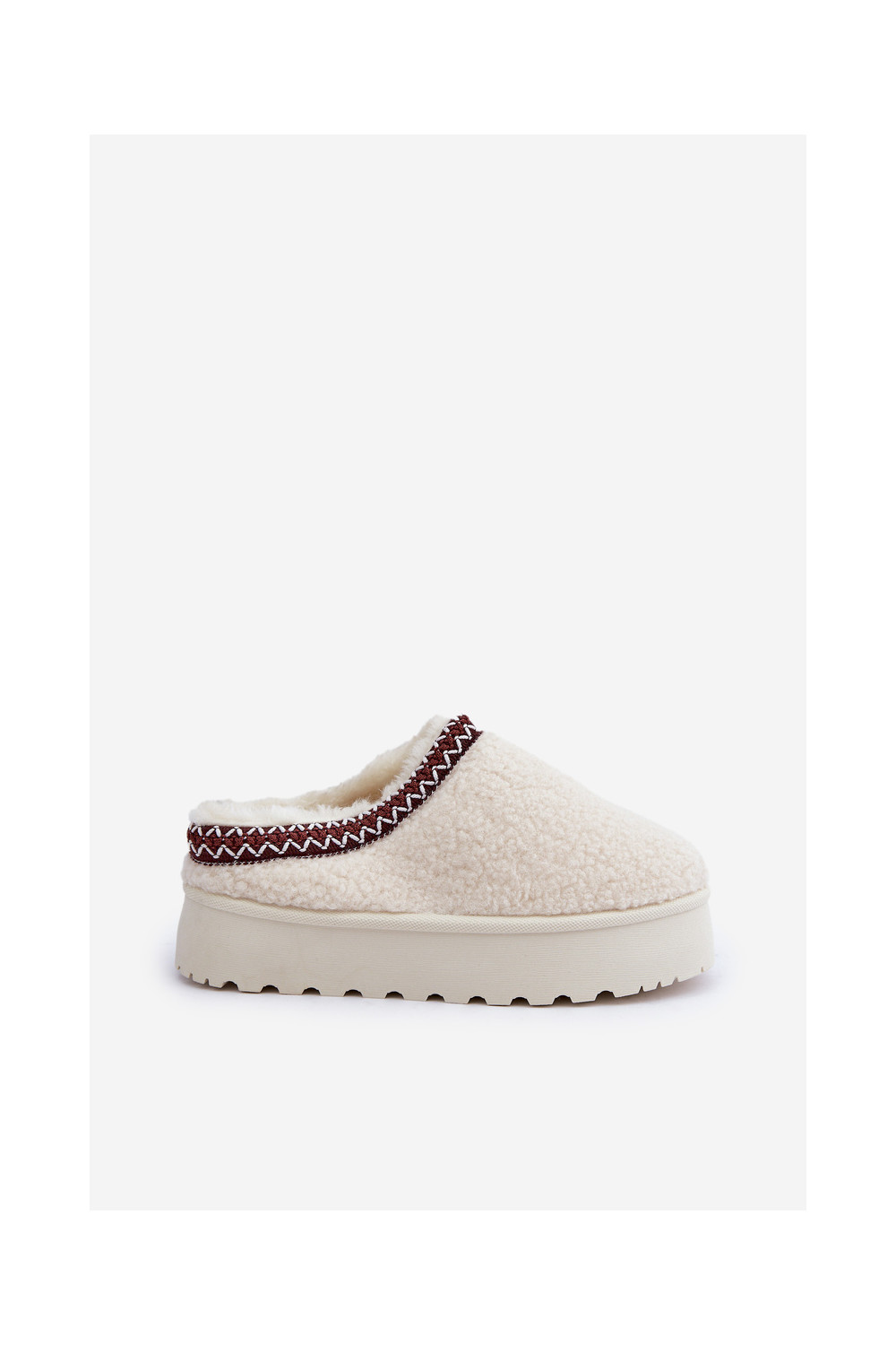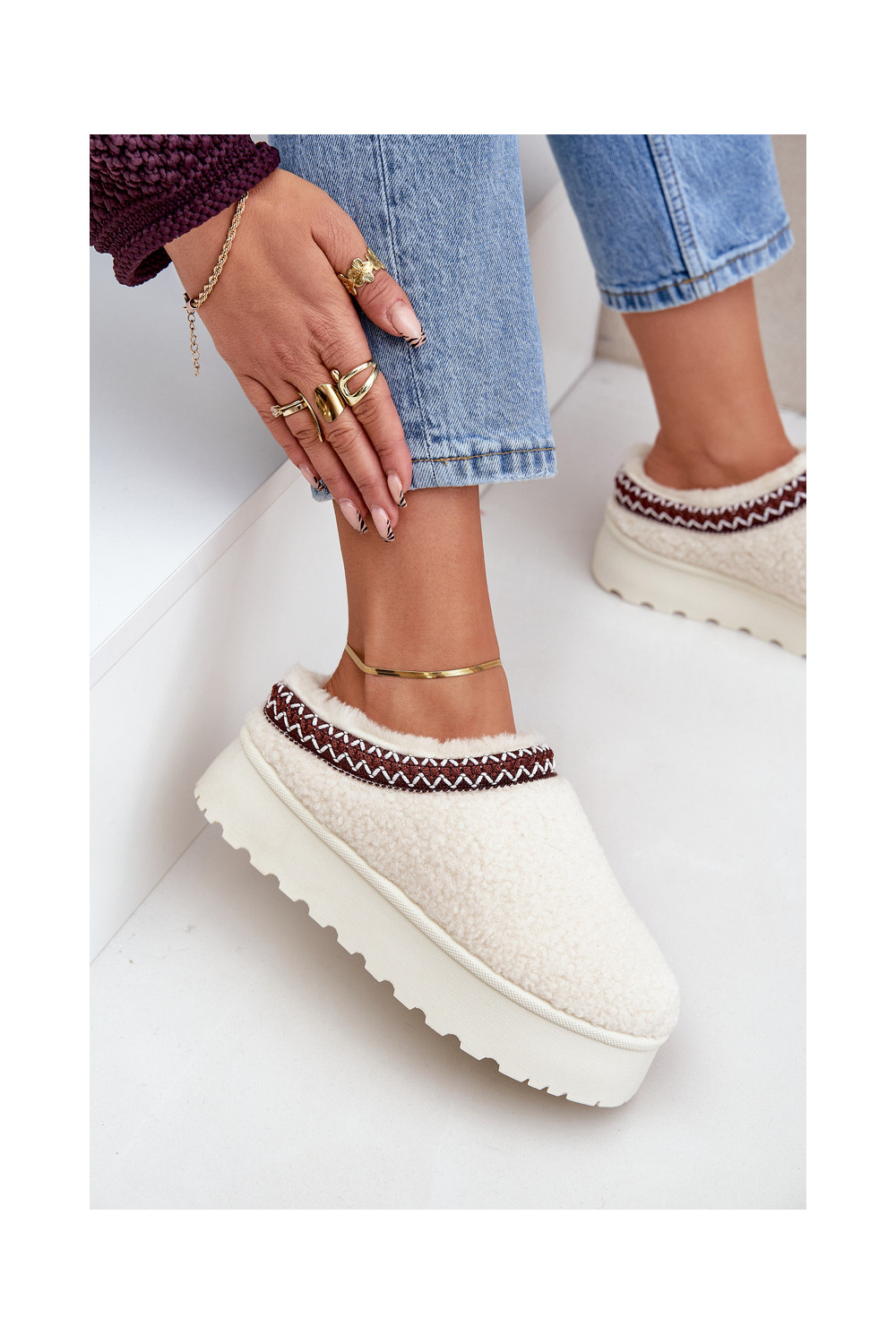 sniego batai Šlepetės su platforma su kailiuku Typu Baranek dramblio kaulo spalvos Ovirissa