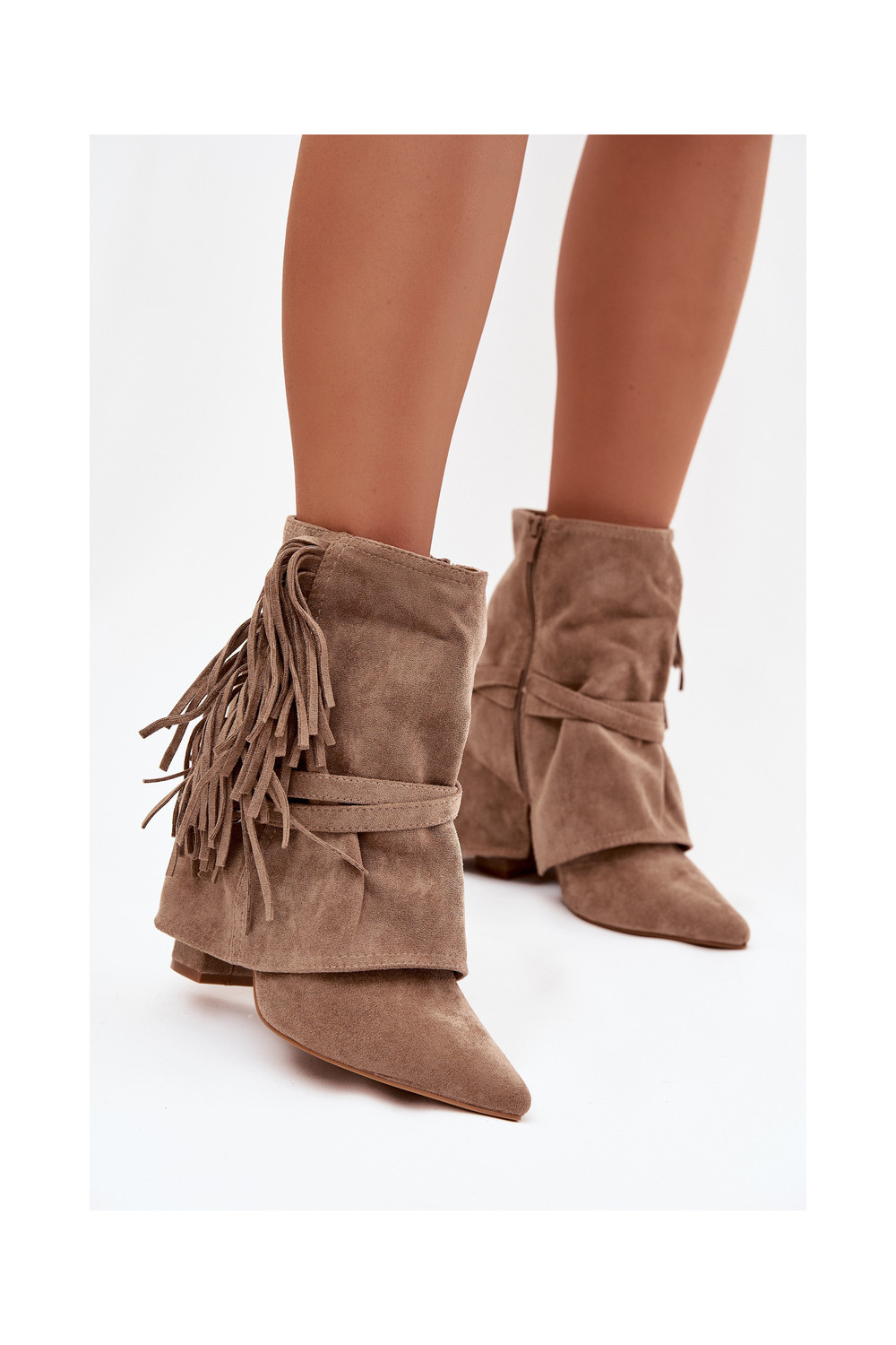 Mėgstami moteriški batai. Nėriniuoti batai iš zomšos imitacijos - idealus šio sezono pasiūlymas! Jie yra ant storo pado. Modelis nėra apšiltintas. Puikiai tinka rudens ir žiemos stilizacijai.