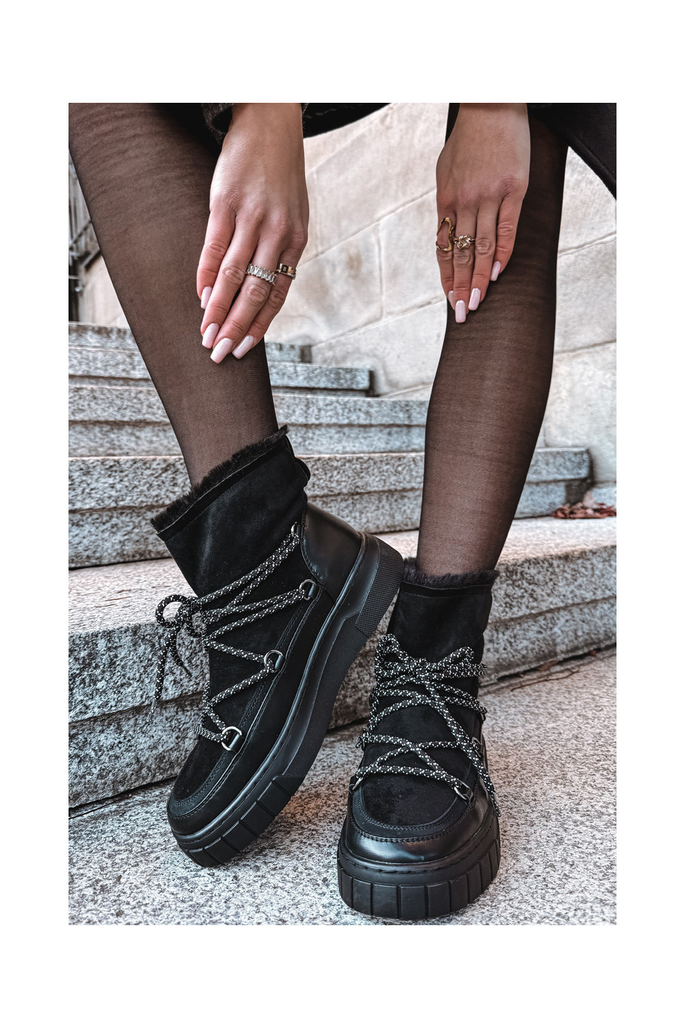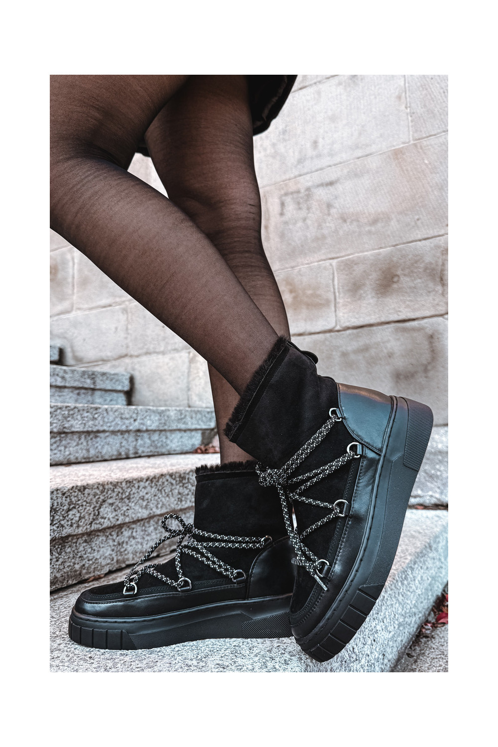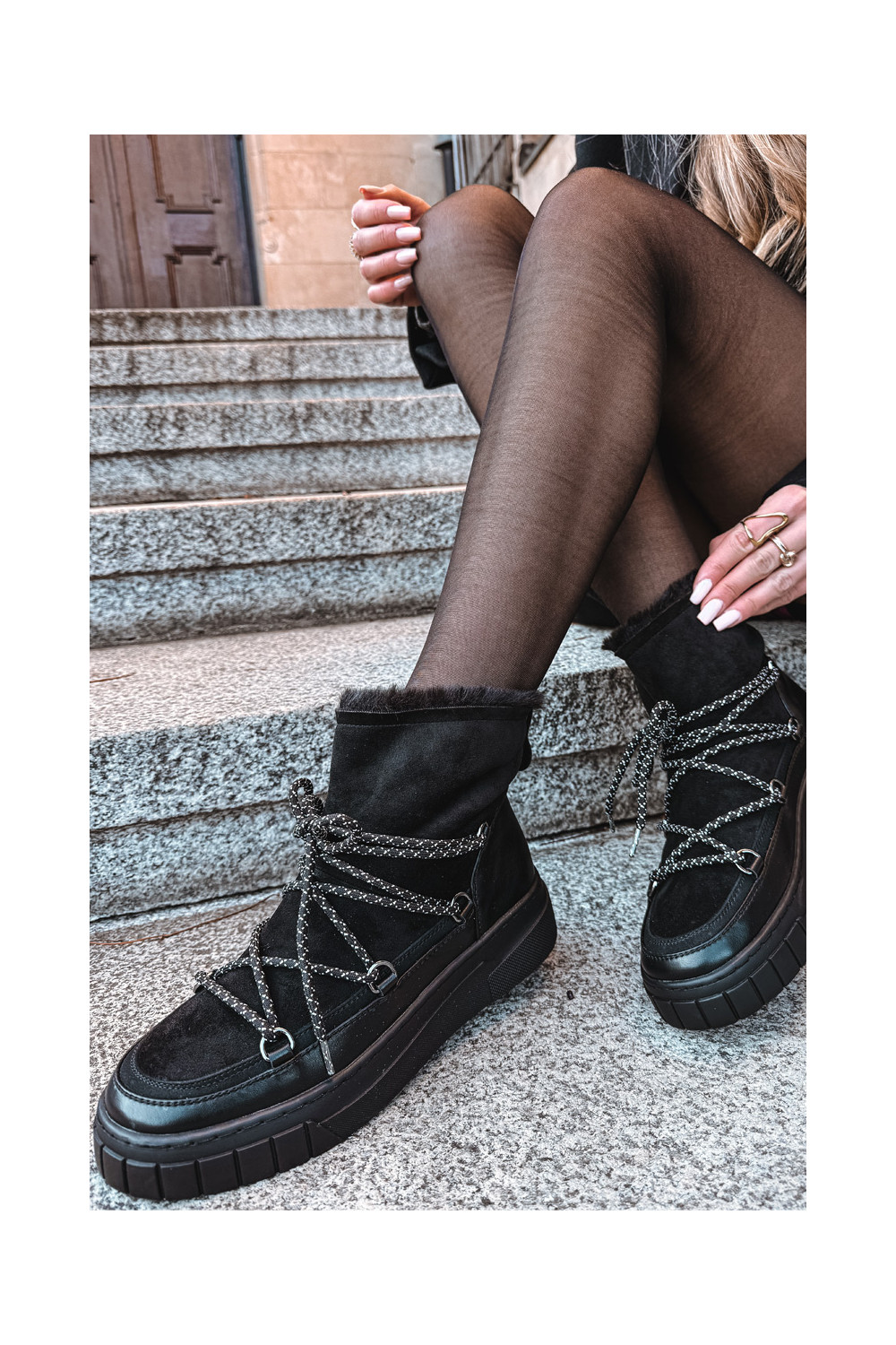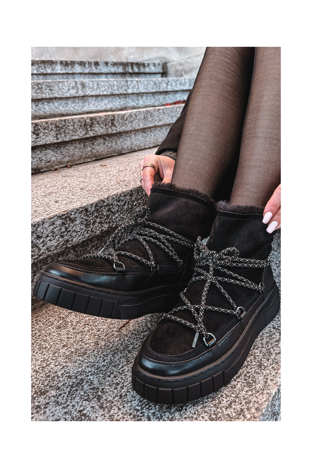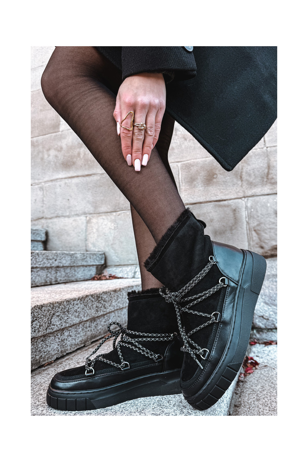 Juodos spalvos moteriški sniego batai su stilingomis detalėmis Isalisse