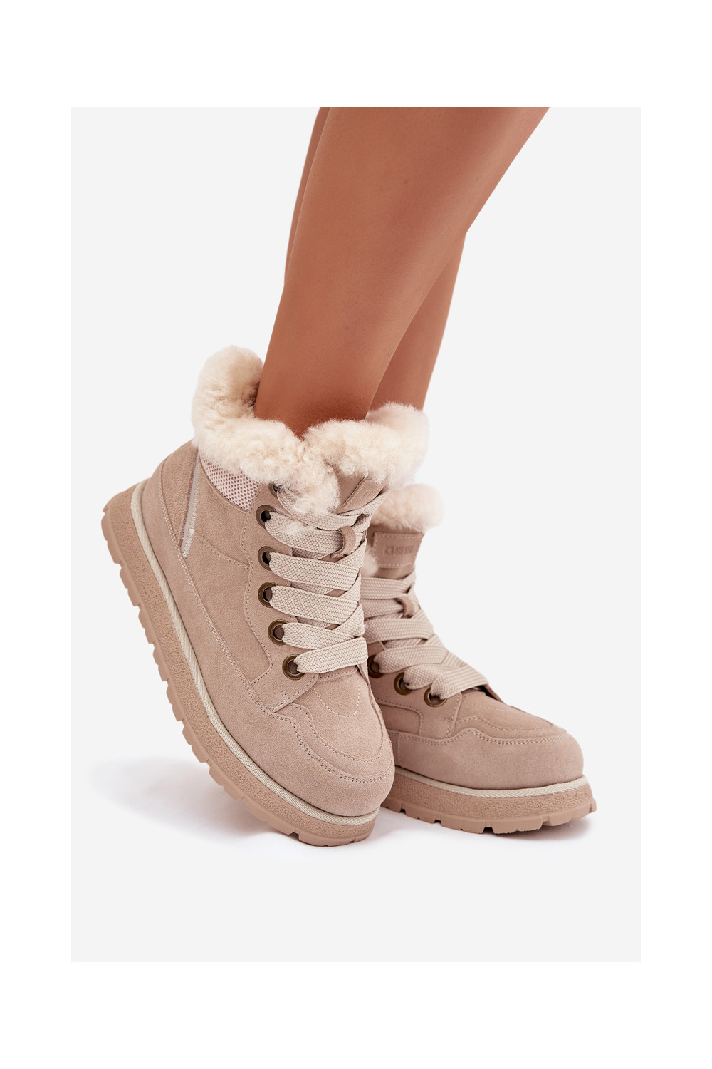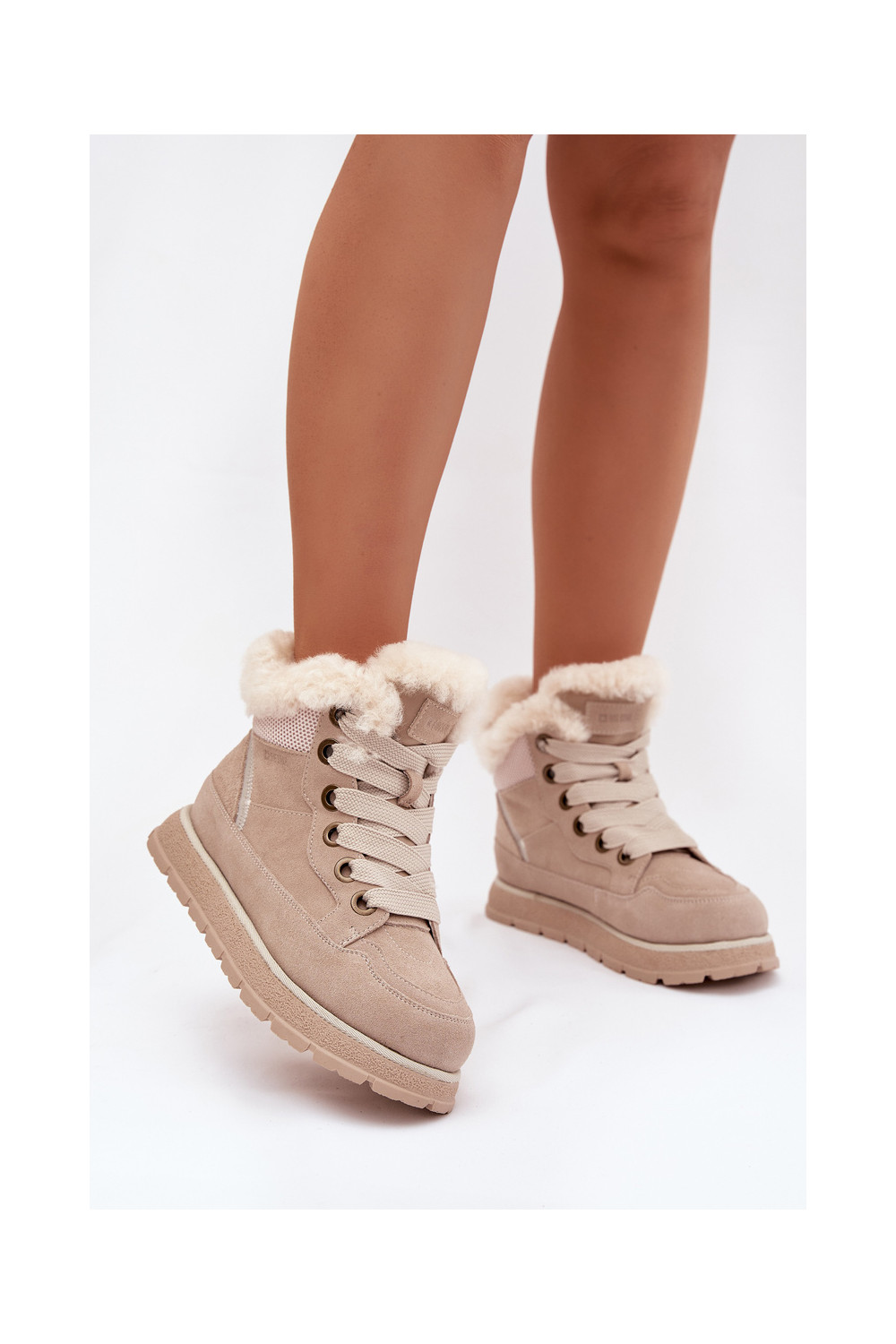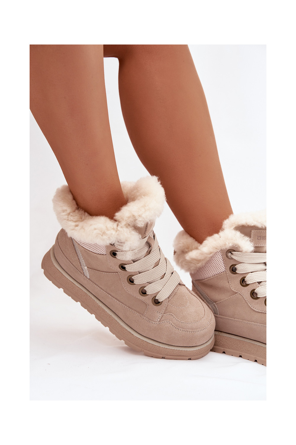 iš zomšos sniego batai batai su platforma su kailiuku Big Star SS274371 smėlio spalvos