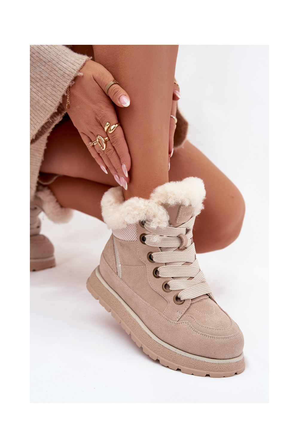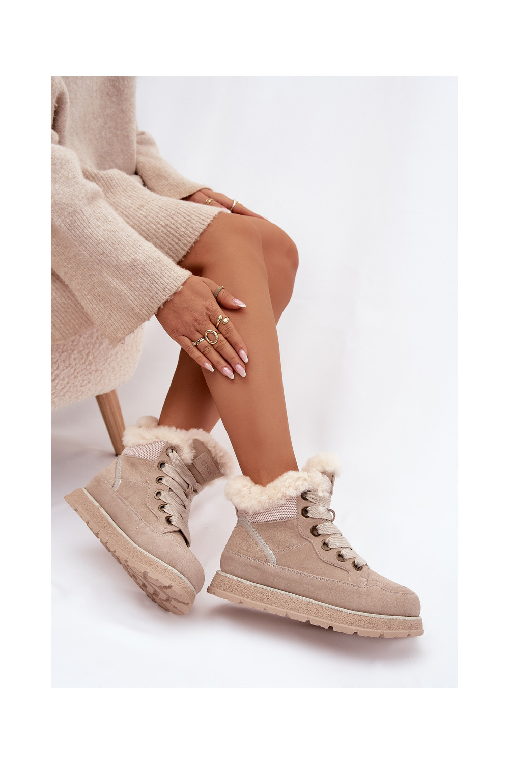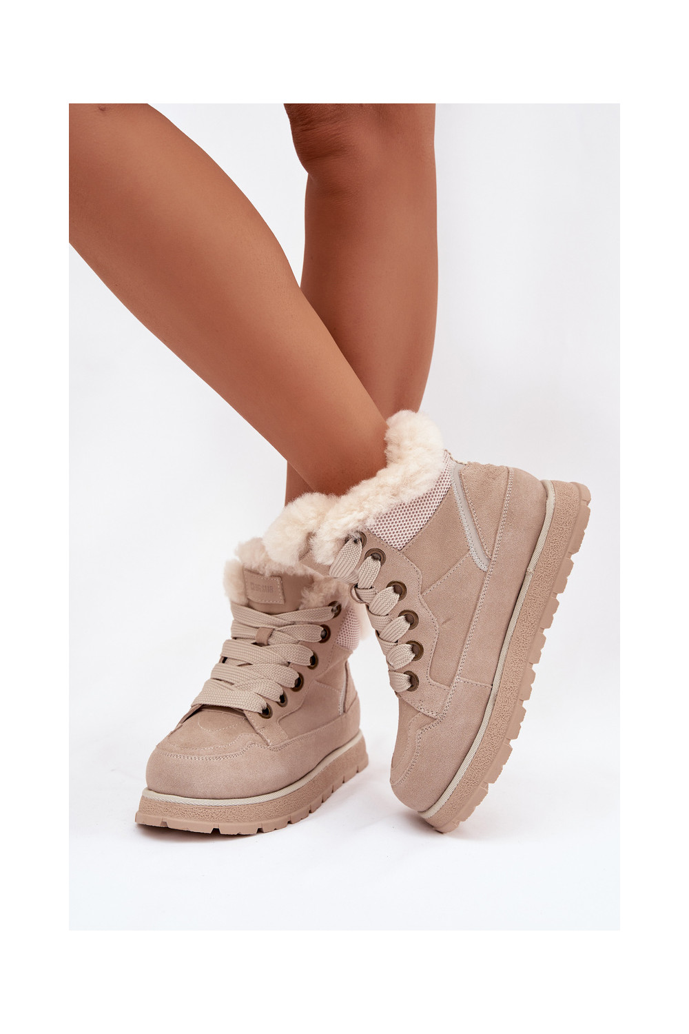 iš zomšos sniego batai batai su platforma su kailiuku Big Star SS274371 smėlio spalvos