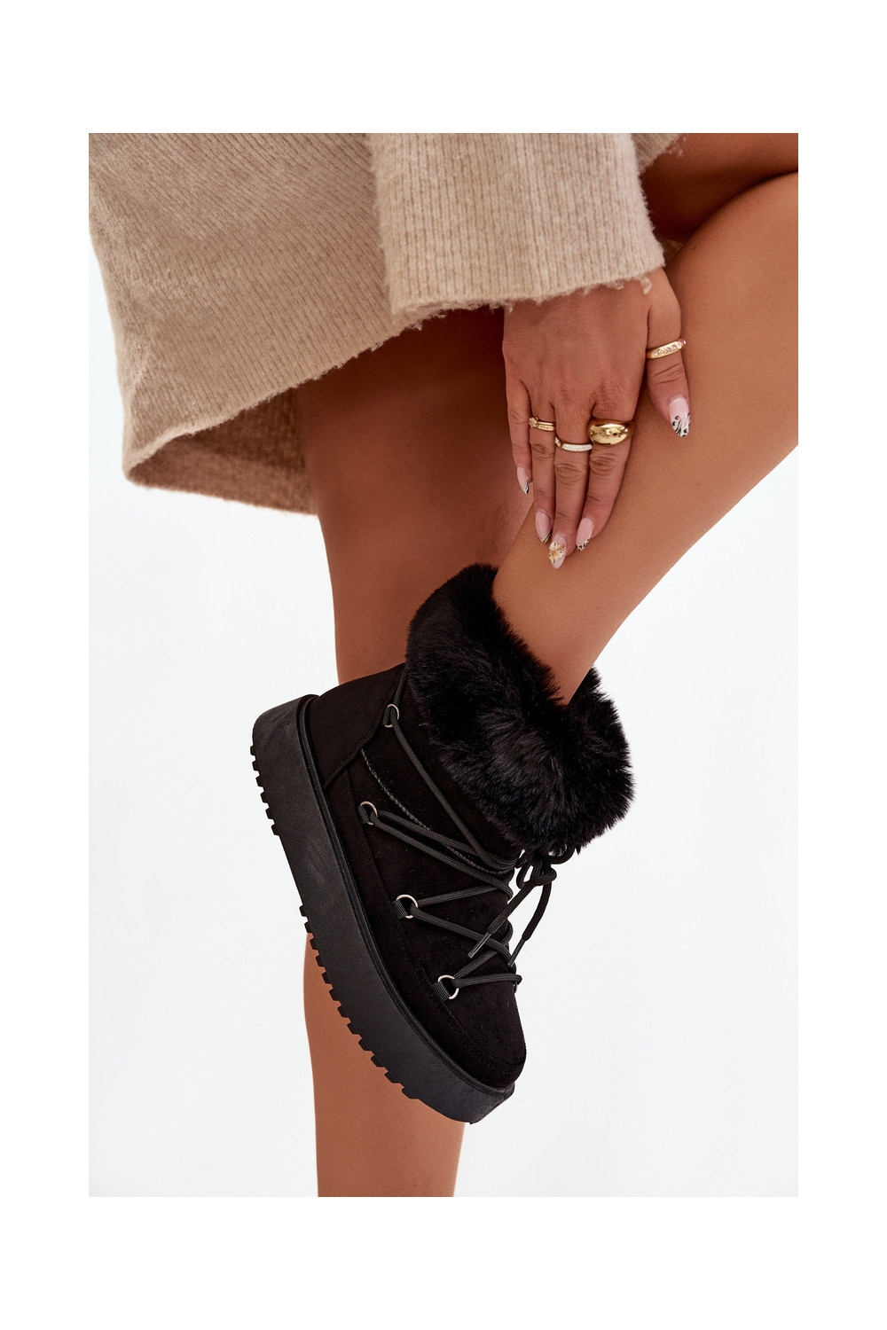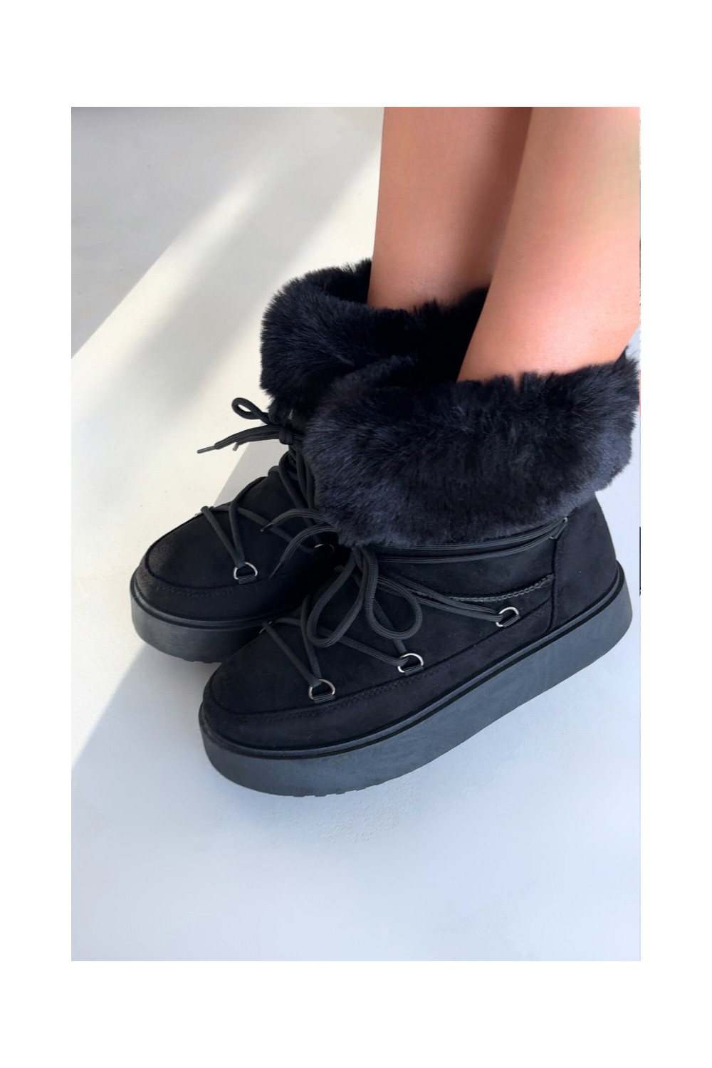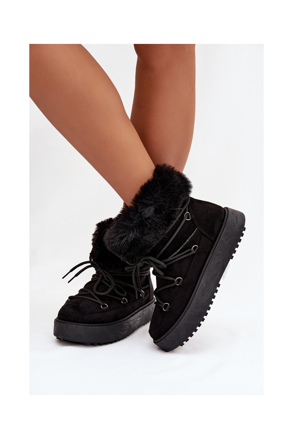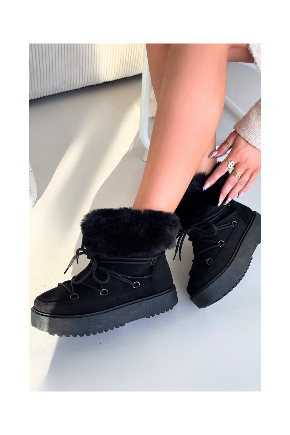 sniego batai su kailiuku I Wiązaniem Juodos spalvos Sarivie