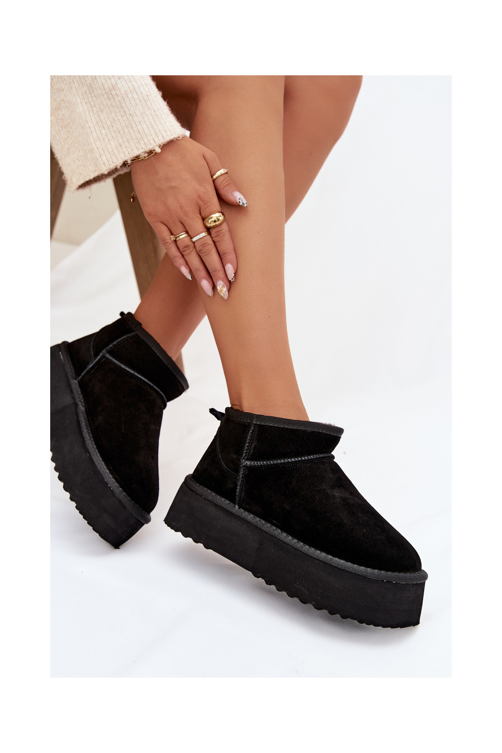 sniego batai Z Naturalnego Zamszu Juodos spalvos Mairene
