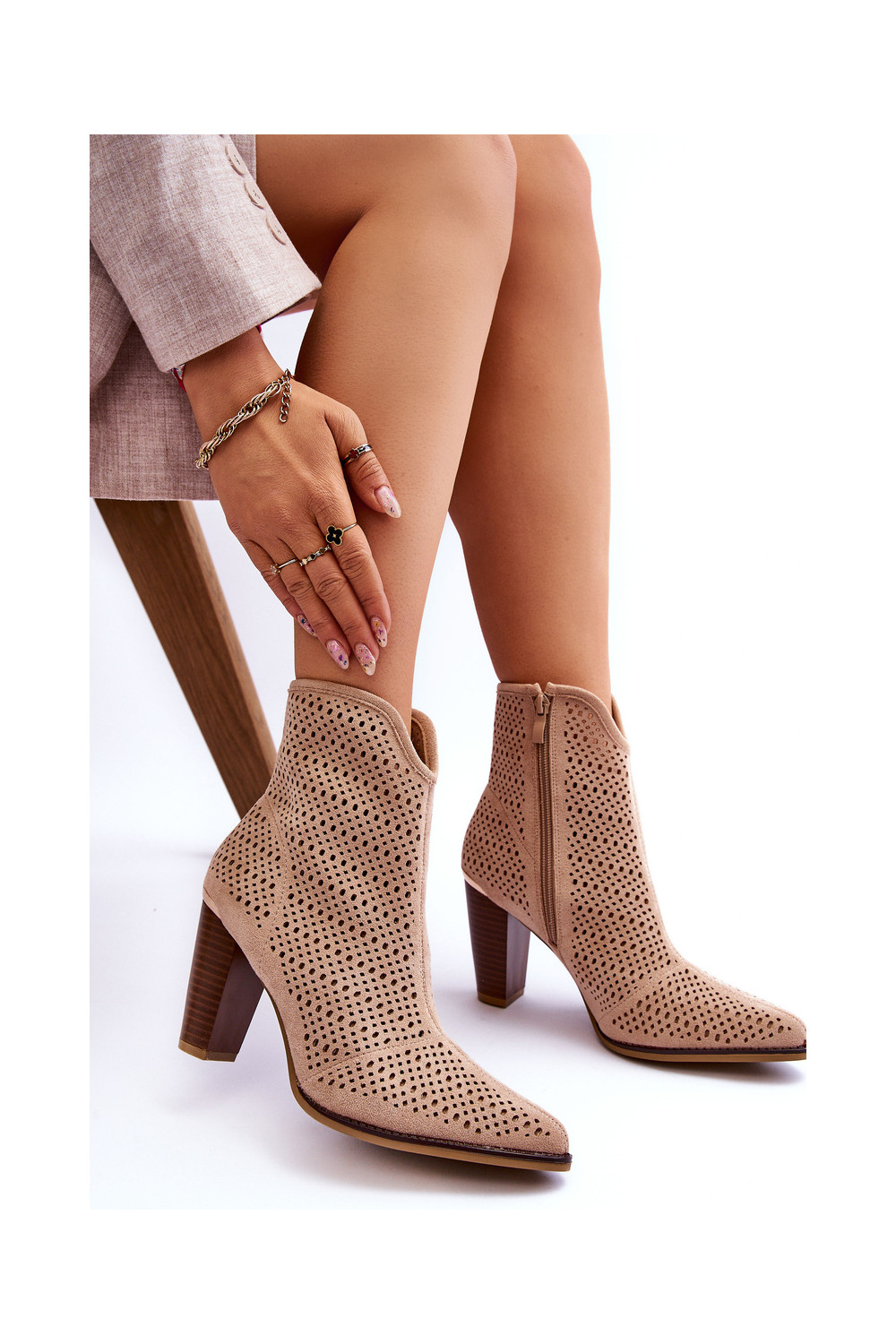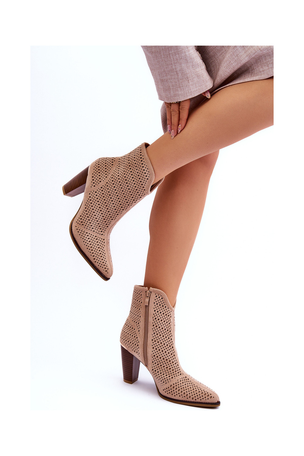 Mėgstami moteriški batai. Nėriniuoti batai iš zomšos imitacijos - idealus šio sezono pasiūlymas! Jie yra ant storo pado. Modelis nėra apšiltintas. Puikiai tinka rudens ir žiemos stilizacijai.