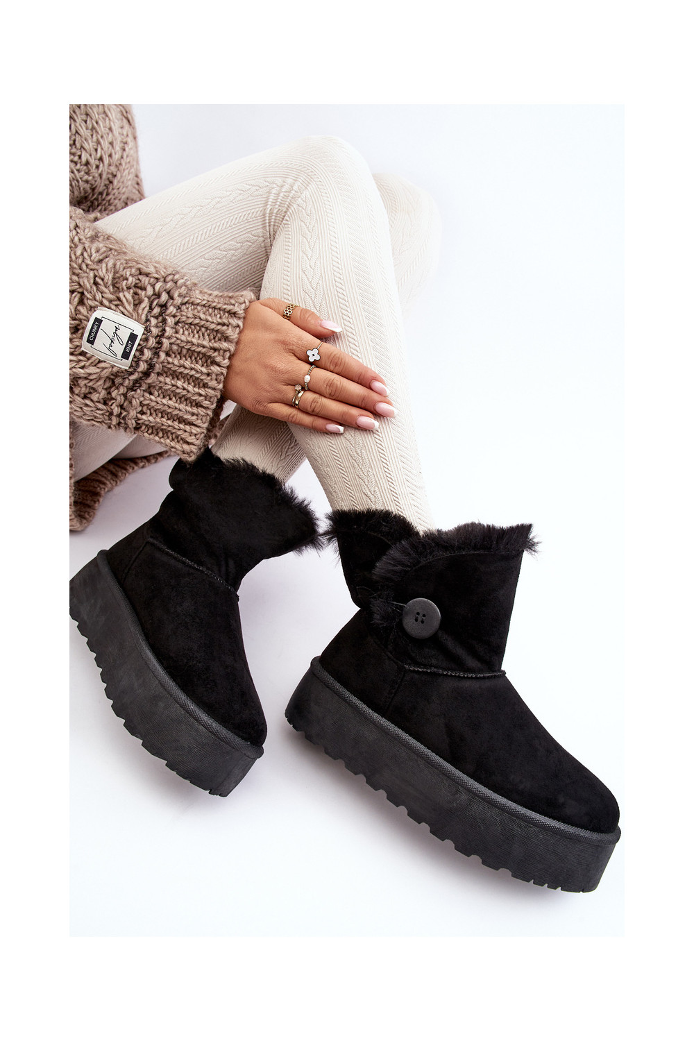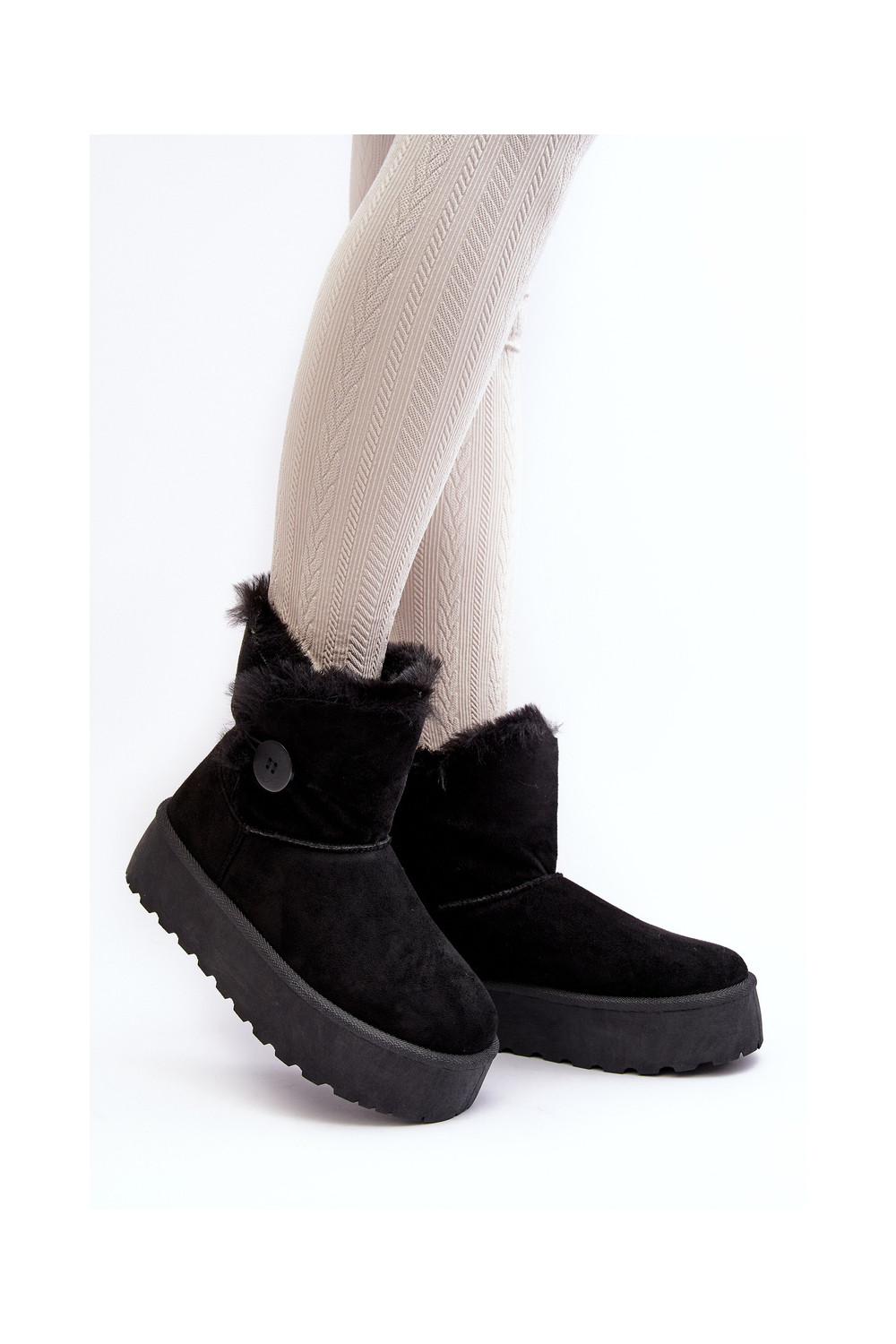 Moteriškas sniego batai su platforma su kailiuku juodos spalvos INikasem