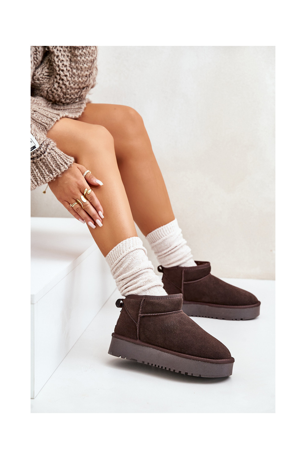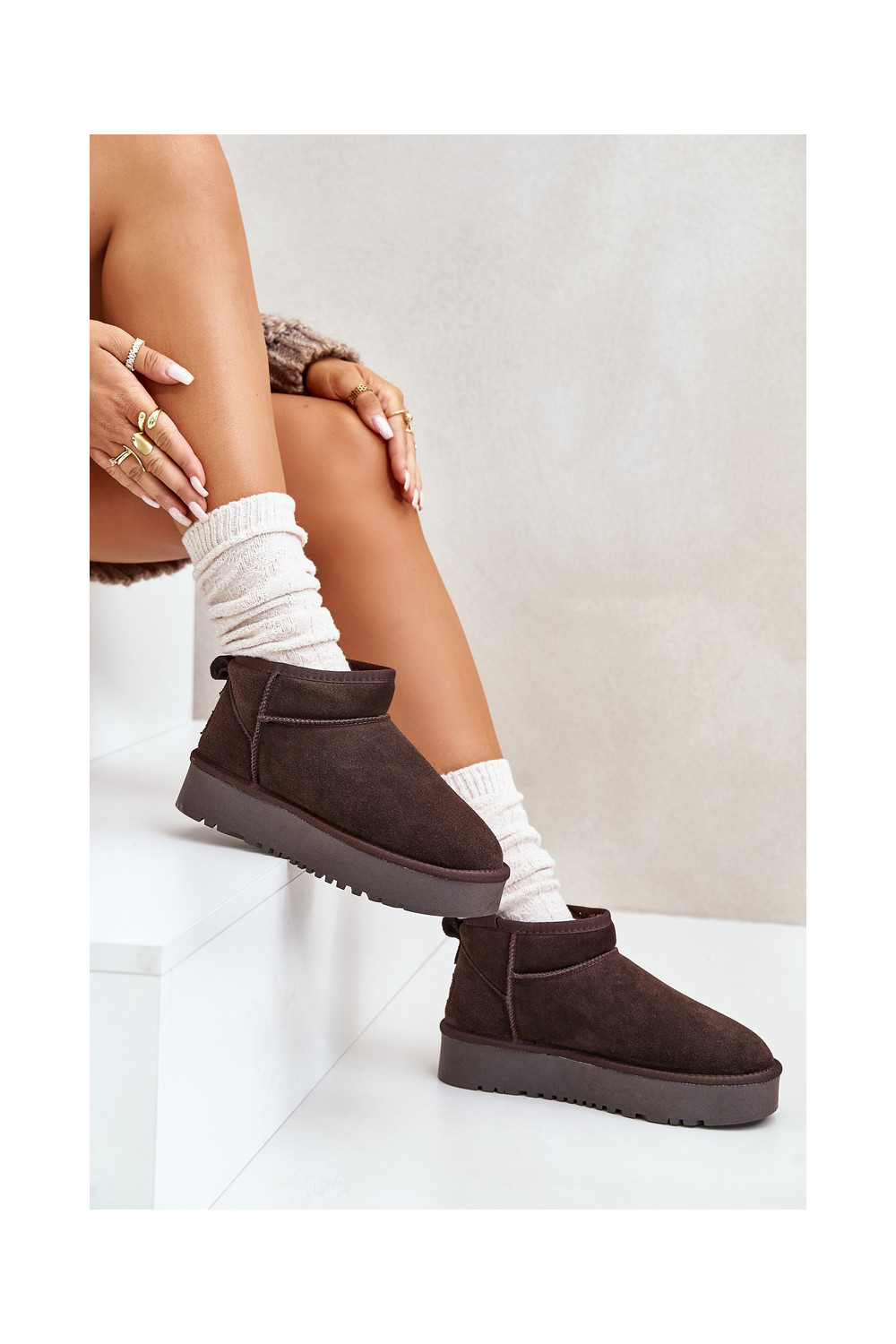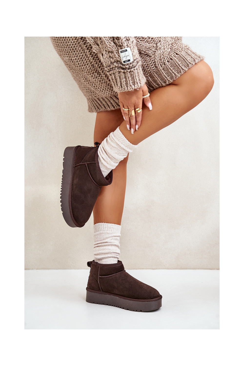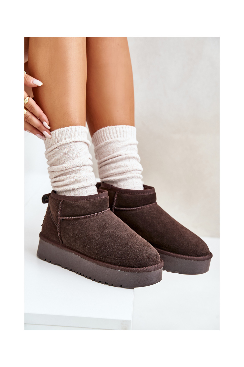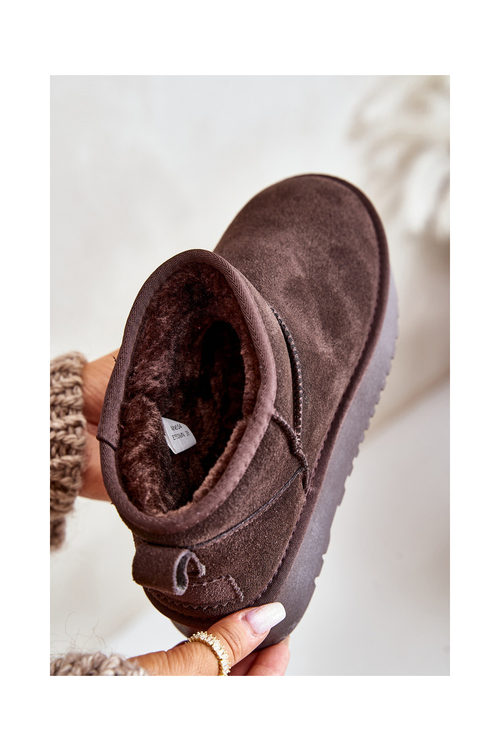 Oda iš zomšos sniego batai su platforma rudos spalvos Nereviana