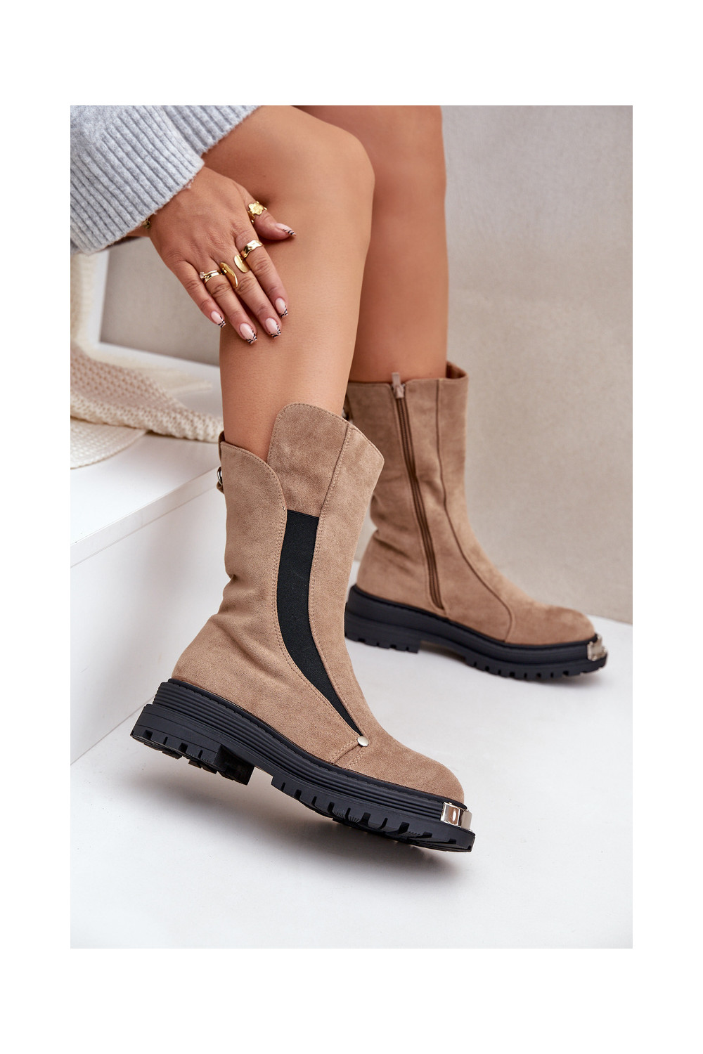 iš zomšos pašiltinti Aulinukai su plačiais kulniukais smėlio spalvos Palimra