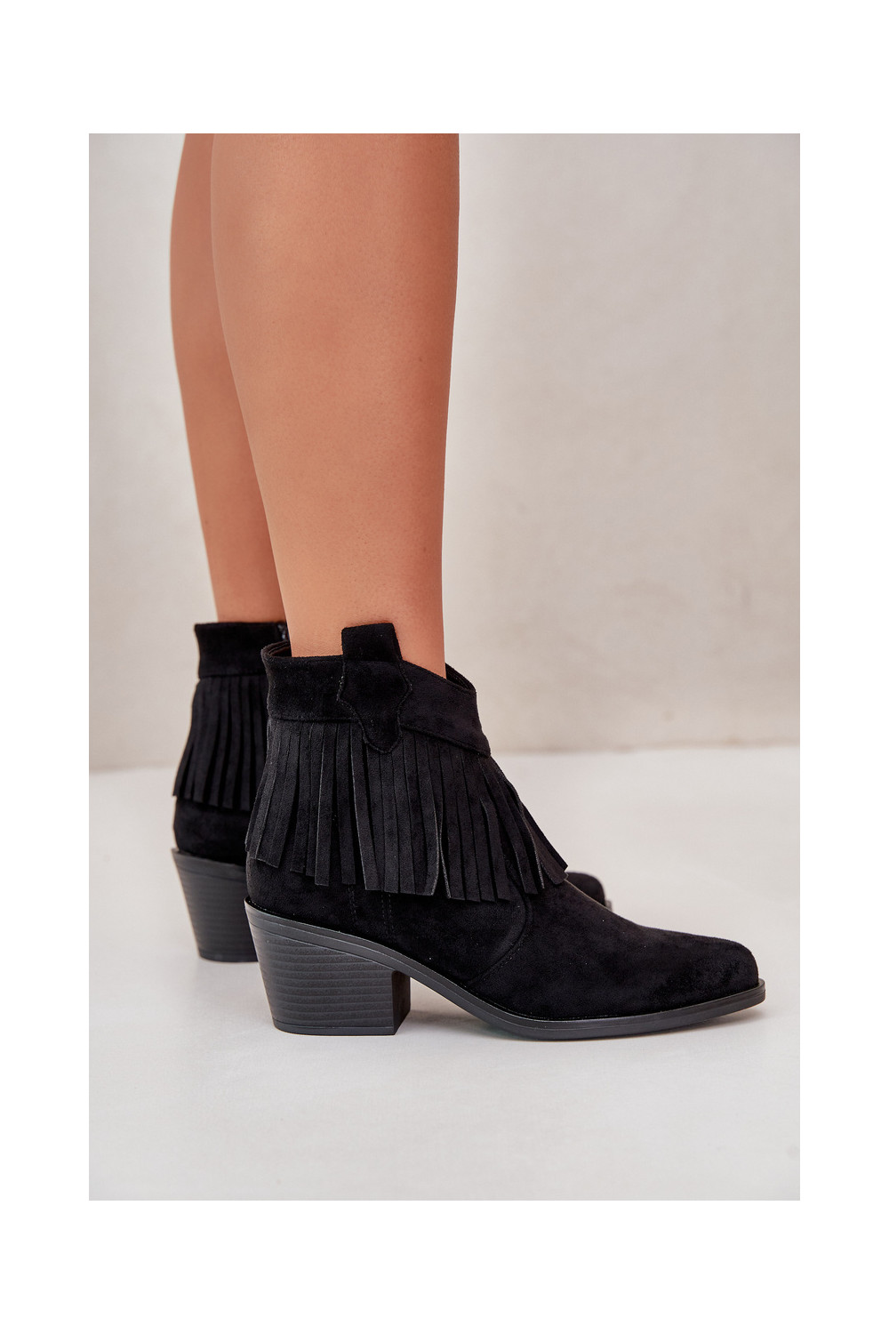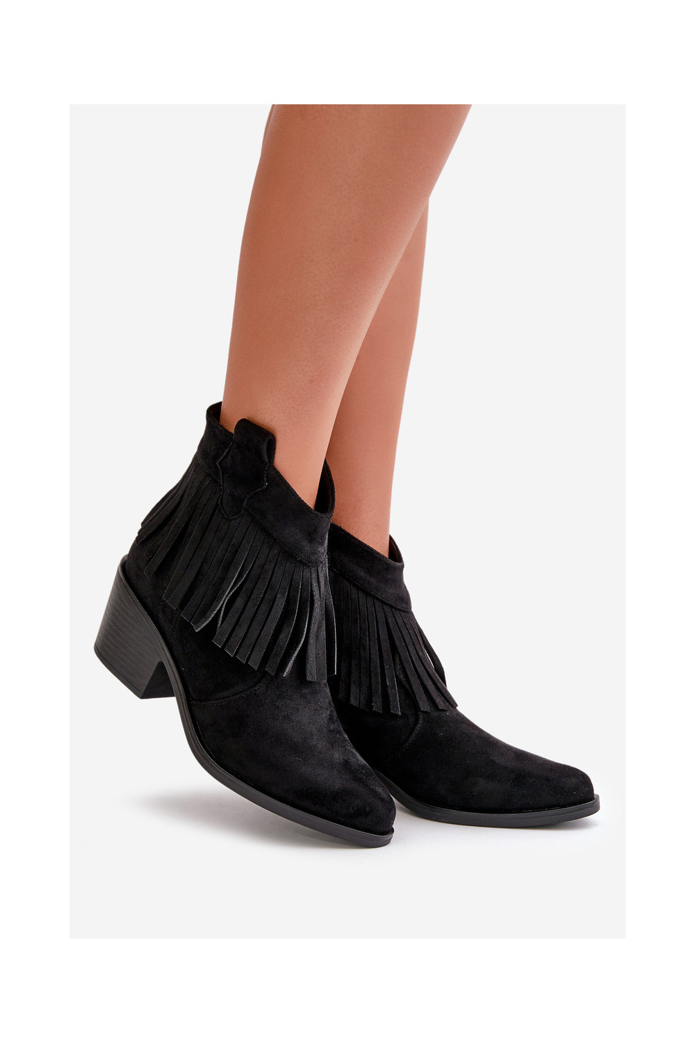 kaubojiško stiliaus aulinukai Moteriškas Į Pilį iš eko zomšosoĮe juodos spalvos S.Barski HY42-127