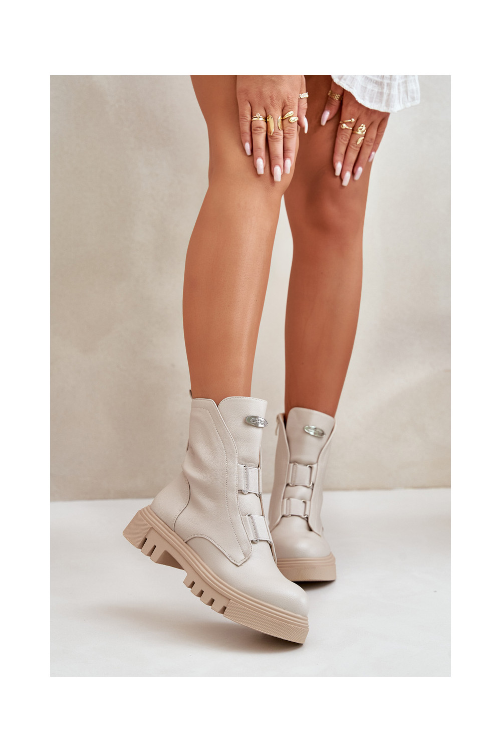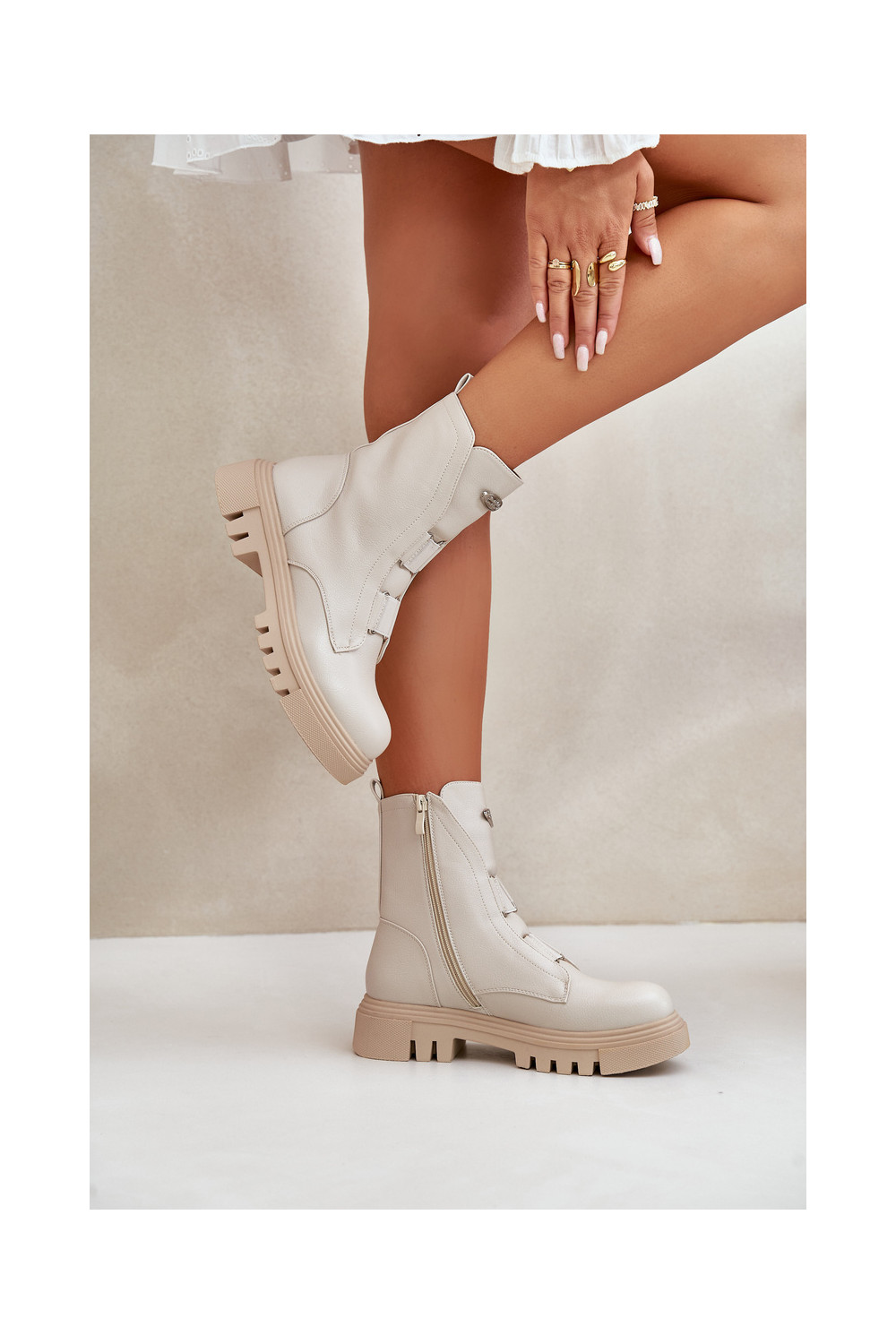 pašiltinti Darbiniai kulkšnies batai Moteriškas Į Pilį Eko Oda dramblio kaulo spalvos Tai turiilyra