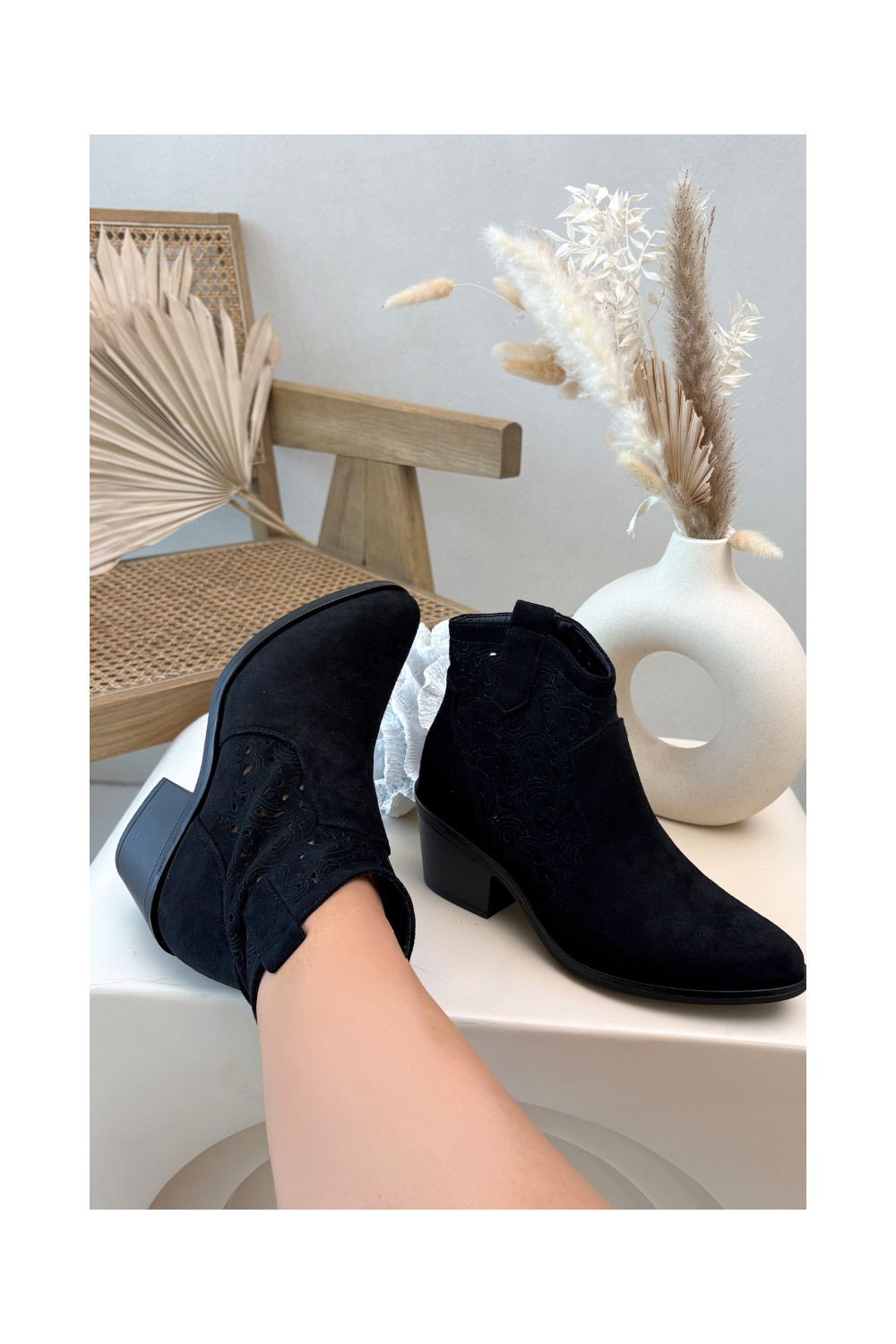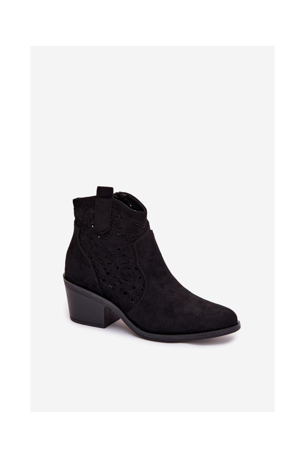 Ažūriniai aulinukai kaubojiško stiliaus Moteriškas su kulniukais S.Barski HY61-8012 juodos spalvos