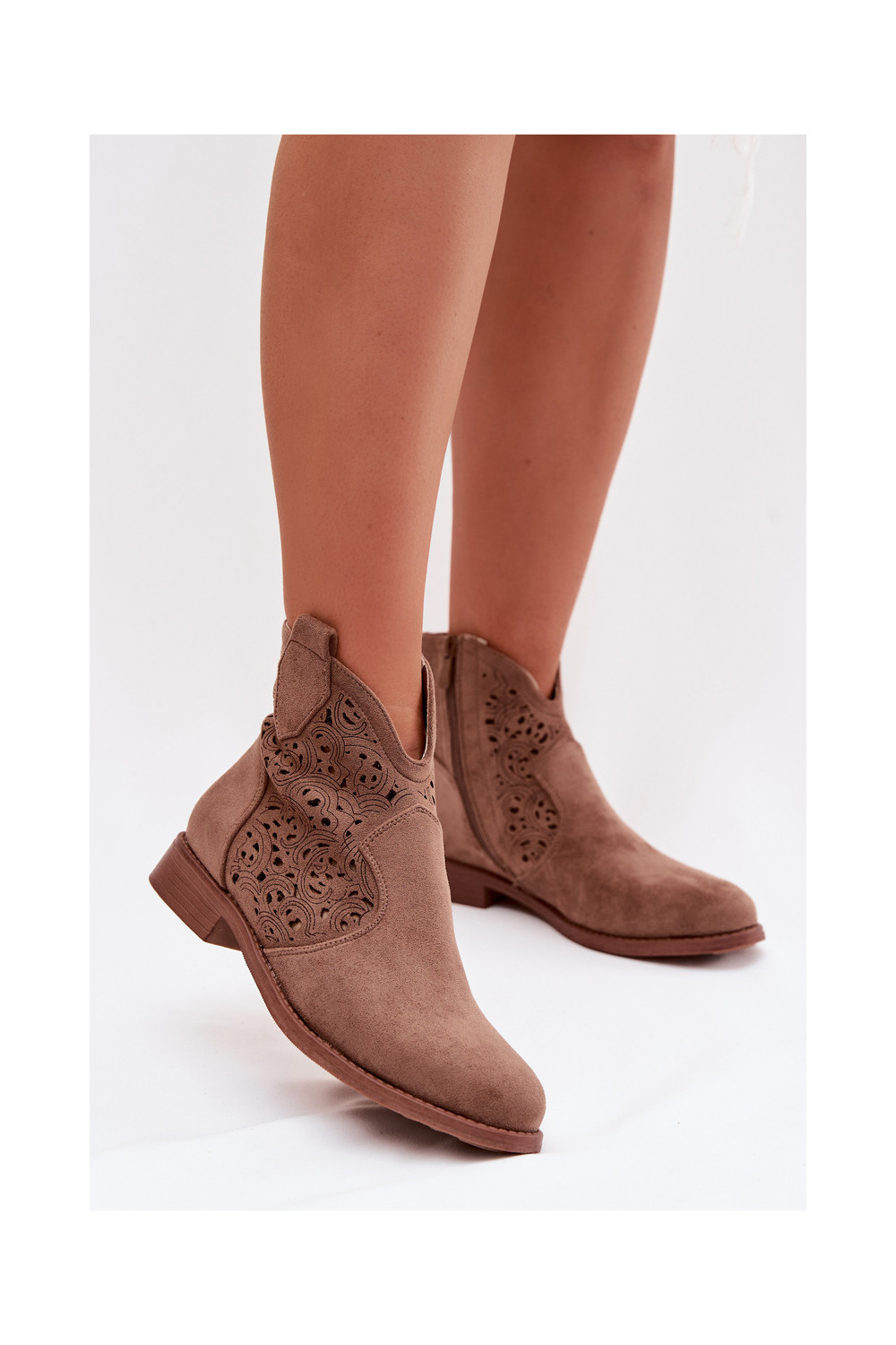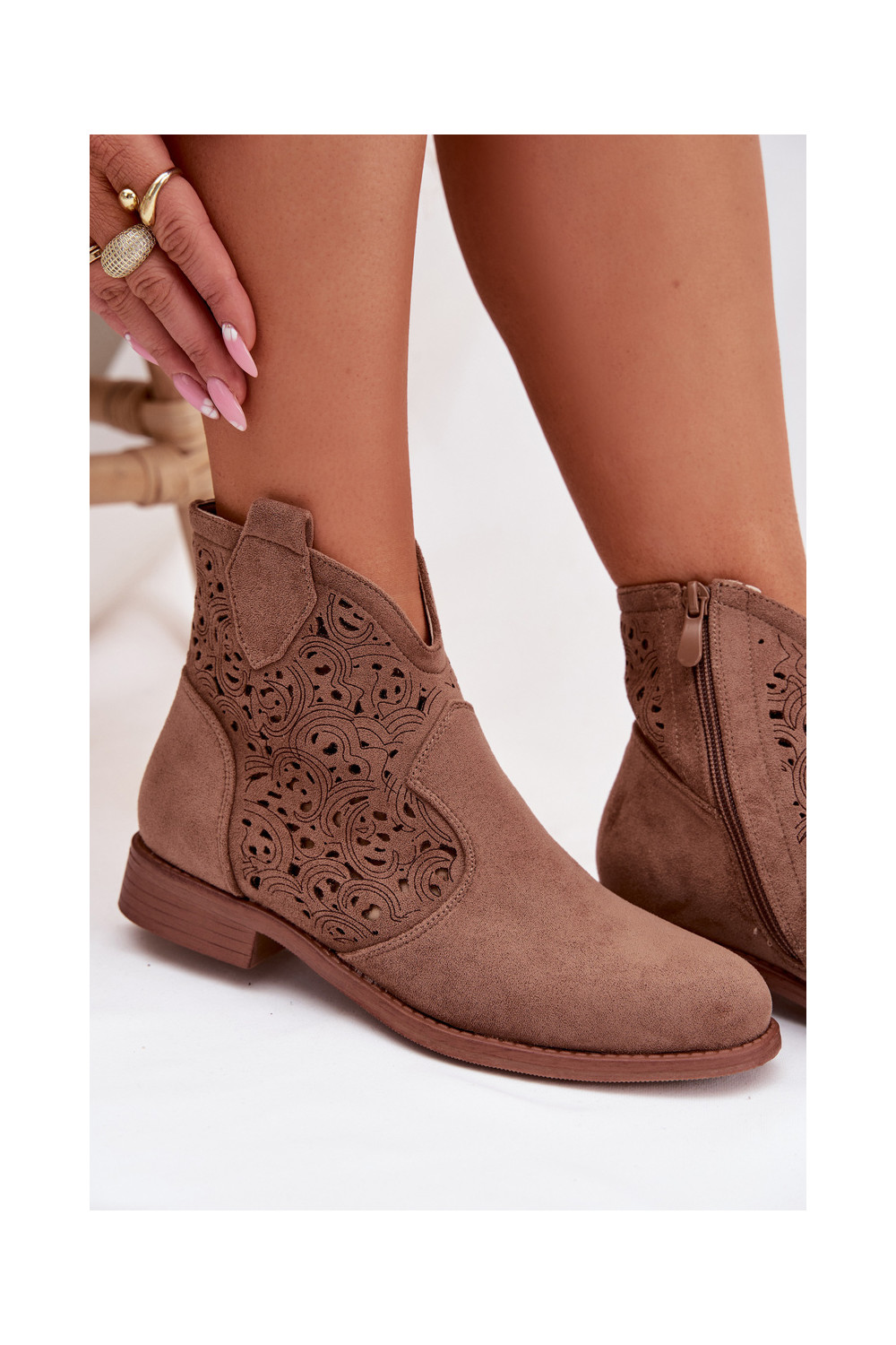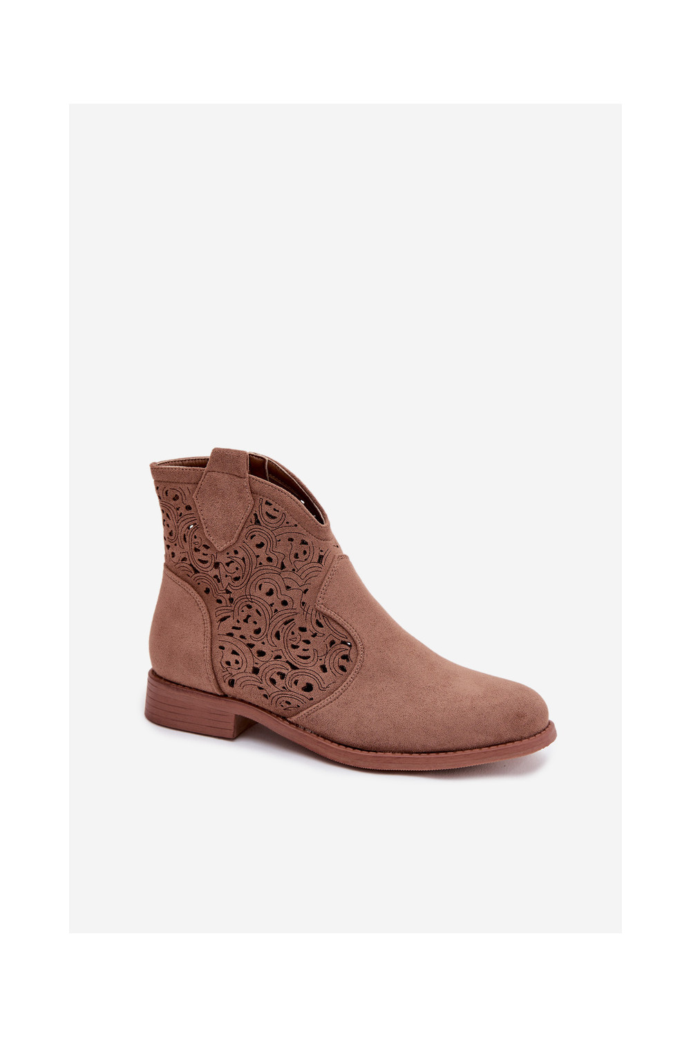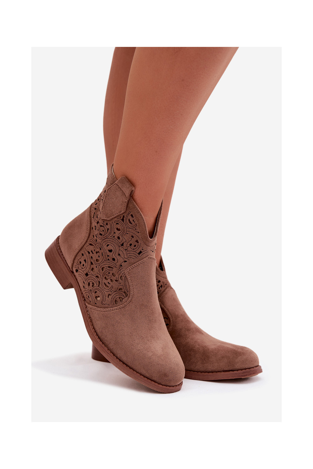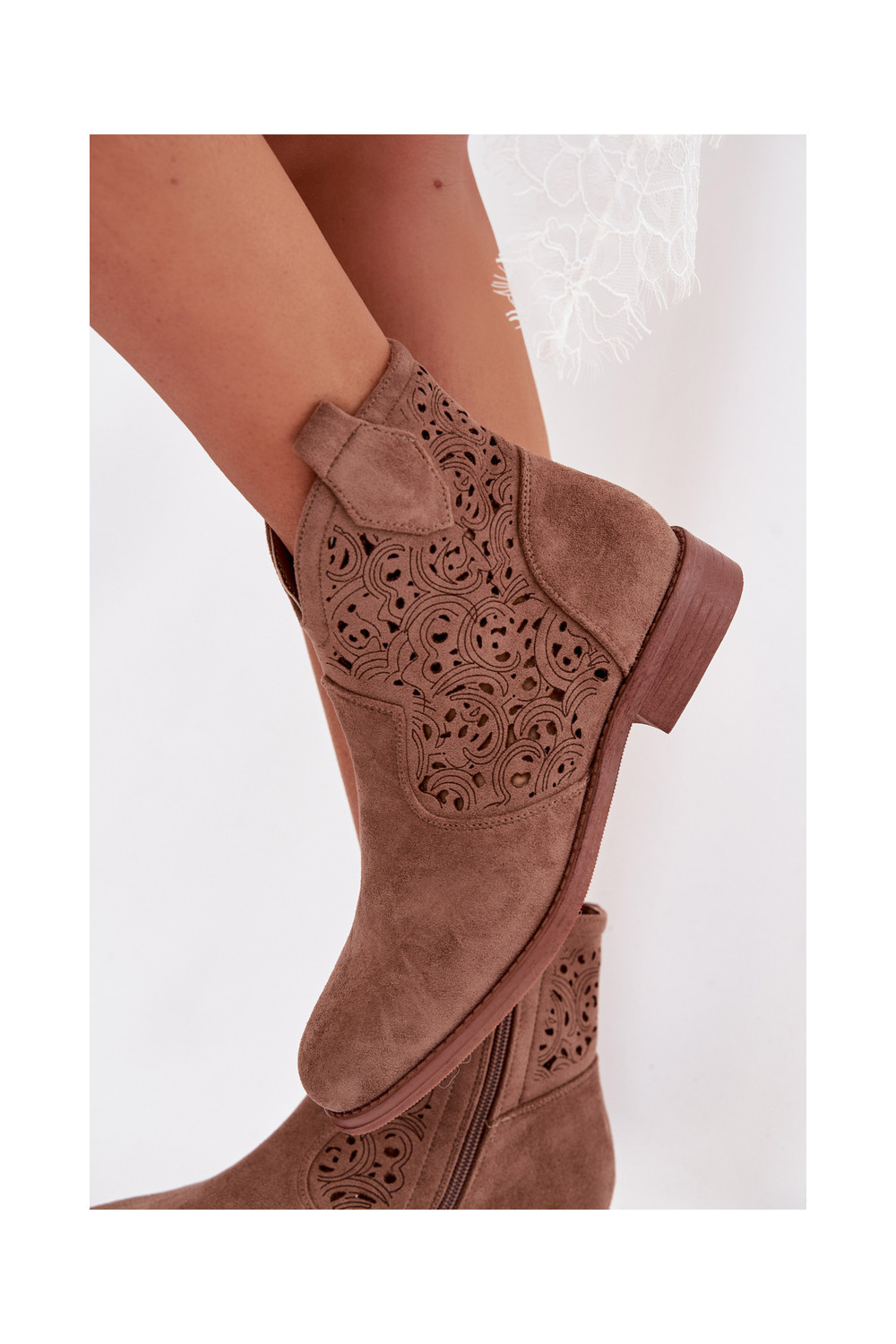 Ažūriniai aulinukai Moteriškas su plačiais kulniukais S.Barski HY61-8026 rudos spalvos