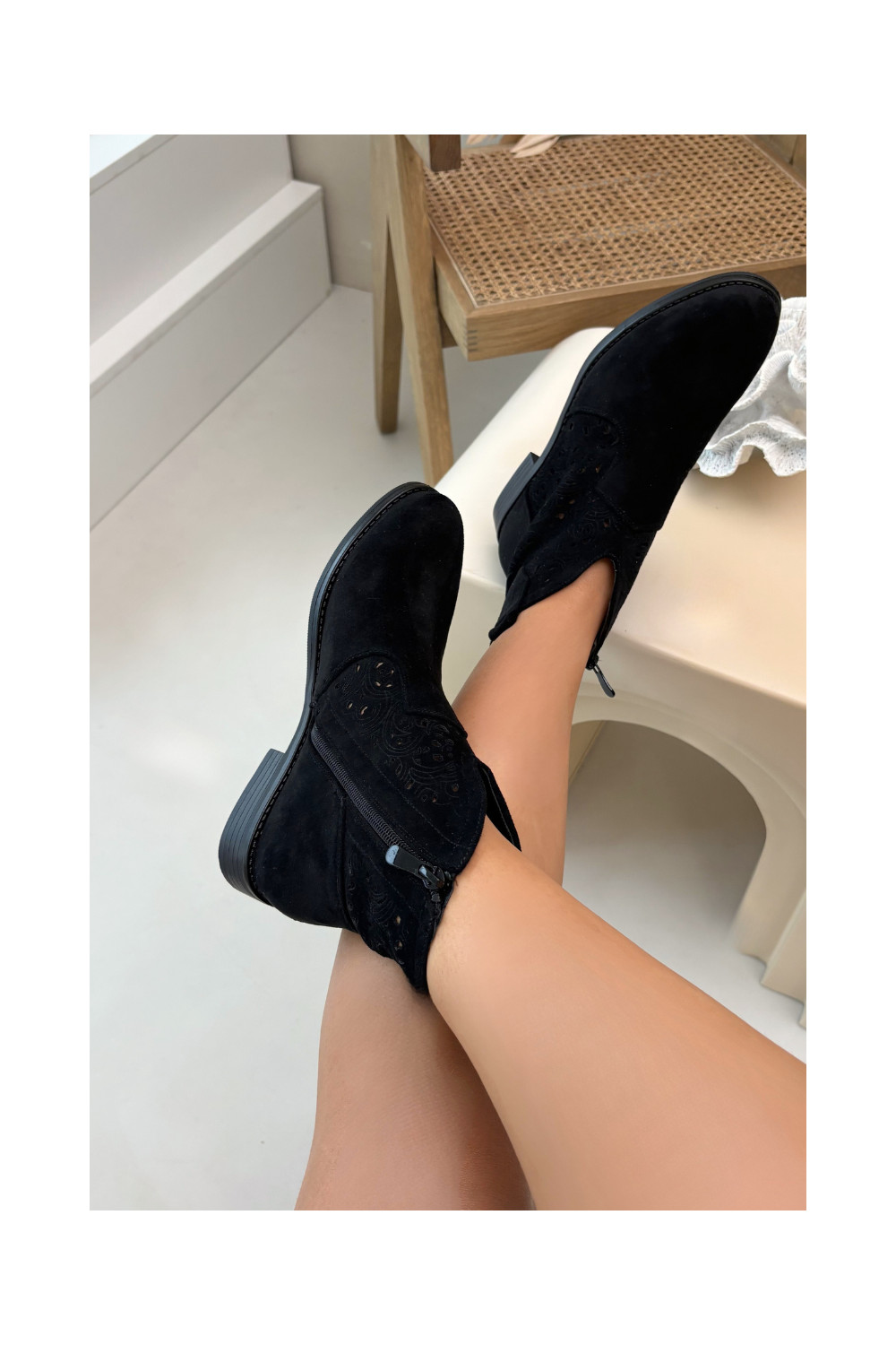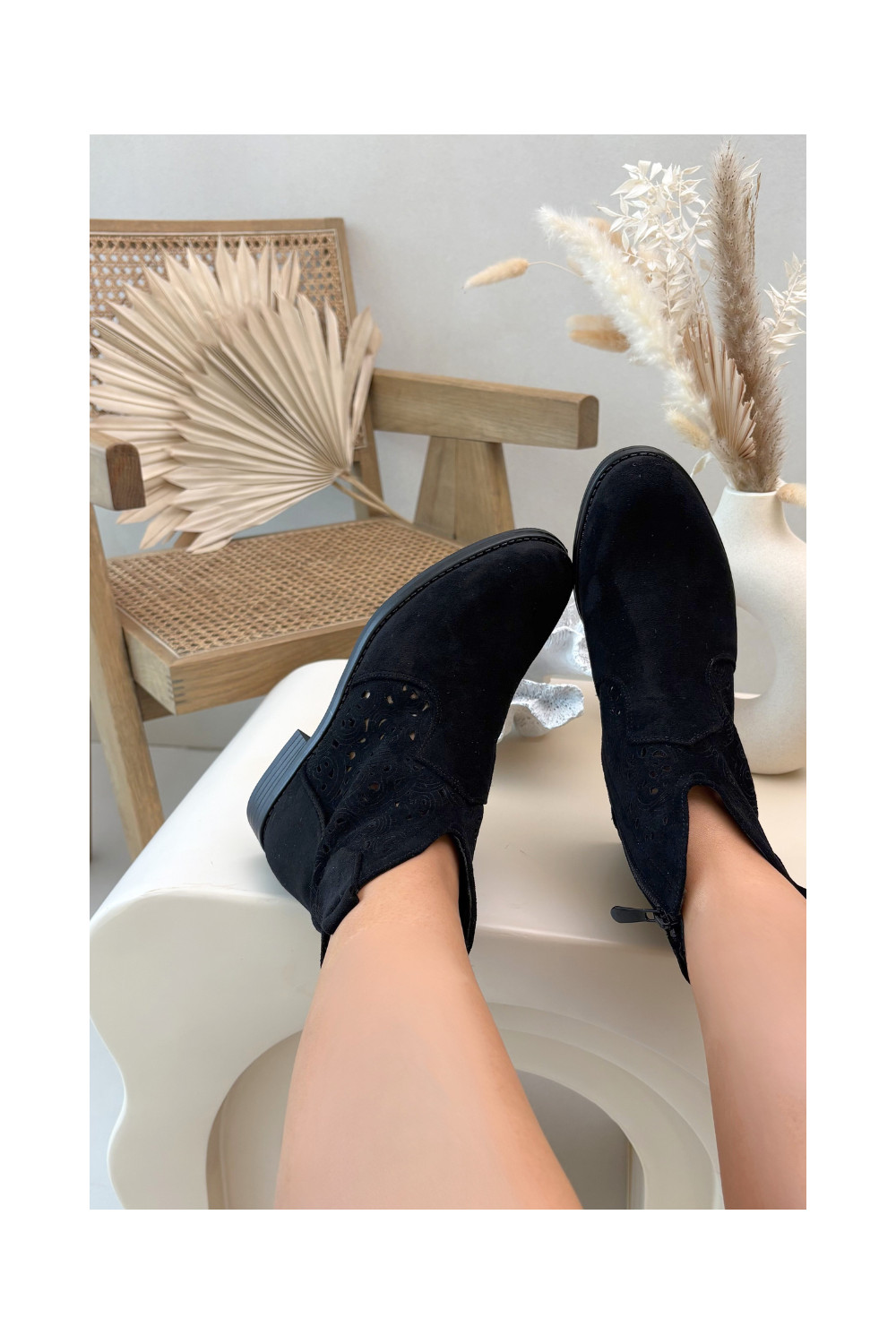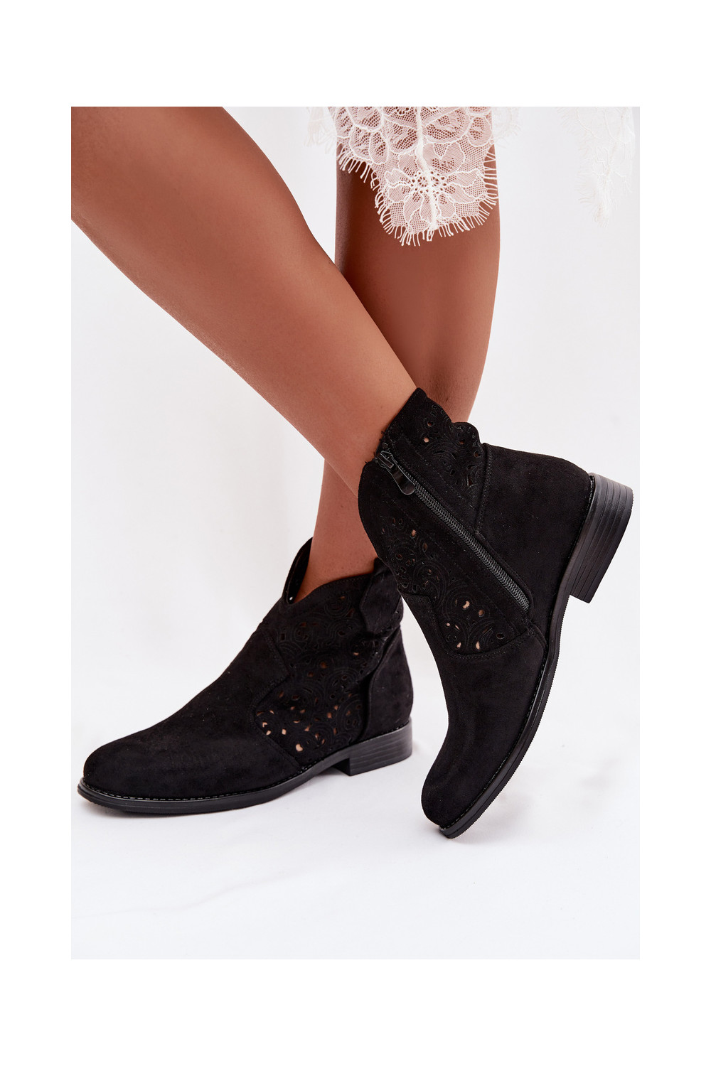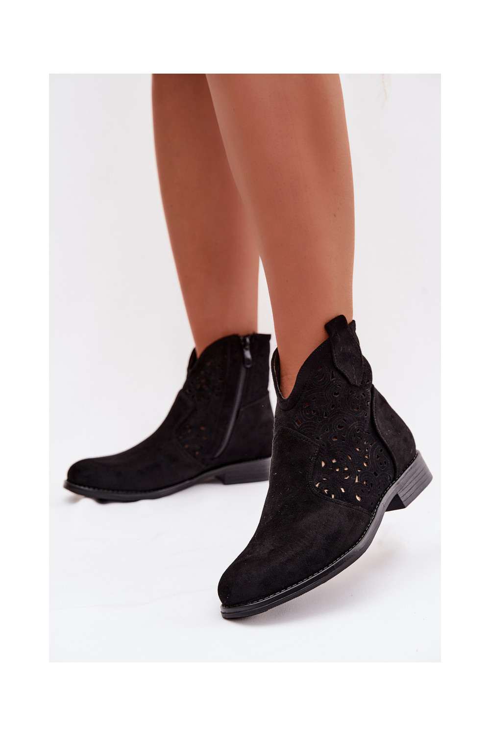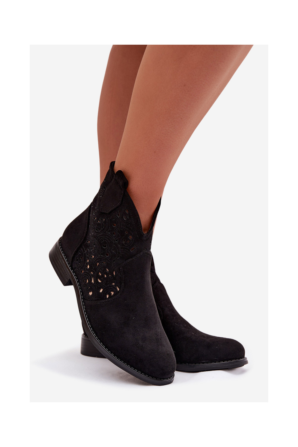 Ažūriniai aulinukai Moteriškas su plačiais kulniukais S.Barski HY61-8026 juodos spalvos