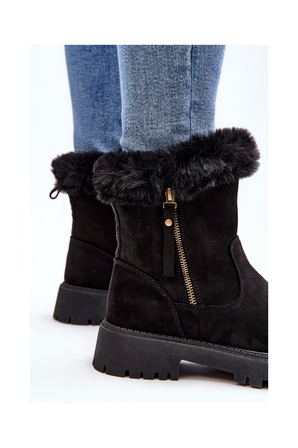 Aulinukai iš zomšos Moteriškas su kailiuku juodos spalvos Hasiva