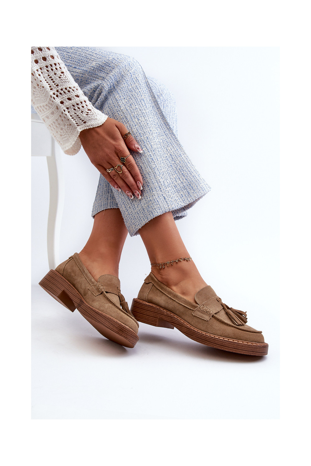 Moteriški mokasinai iš zomšos su kutais rudos spalvos