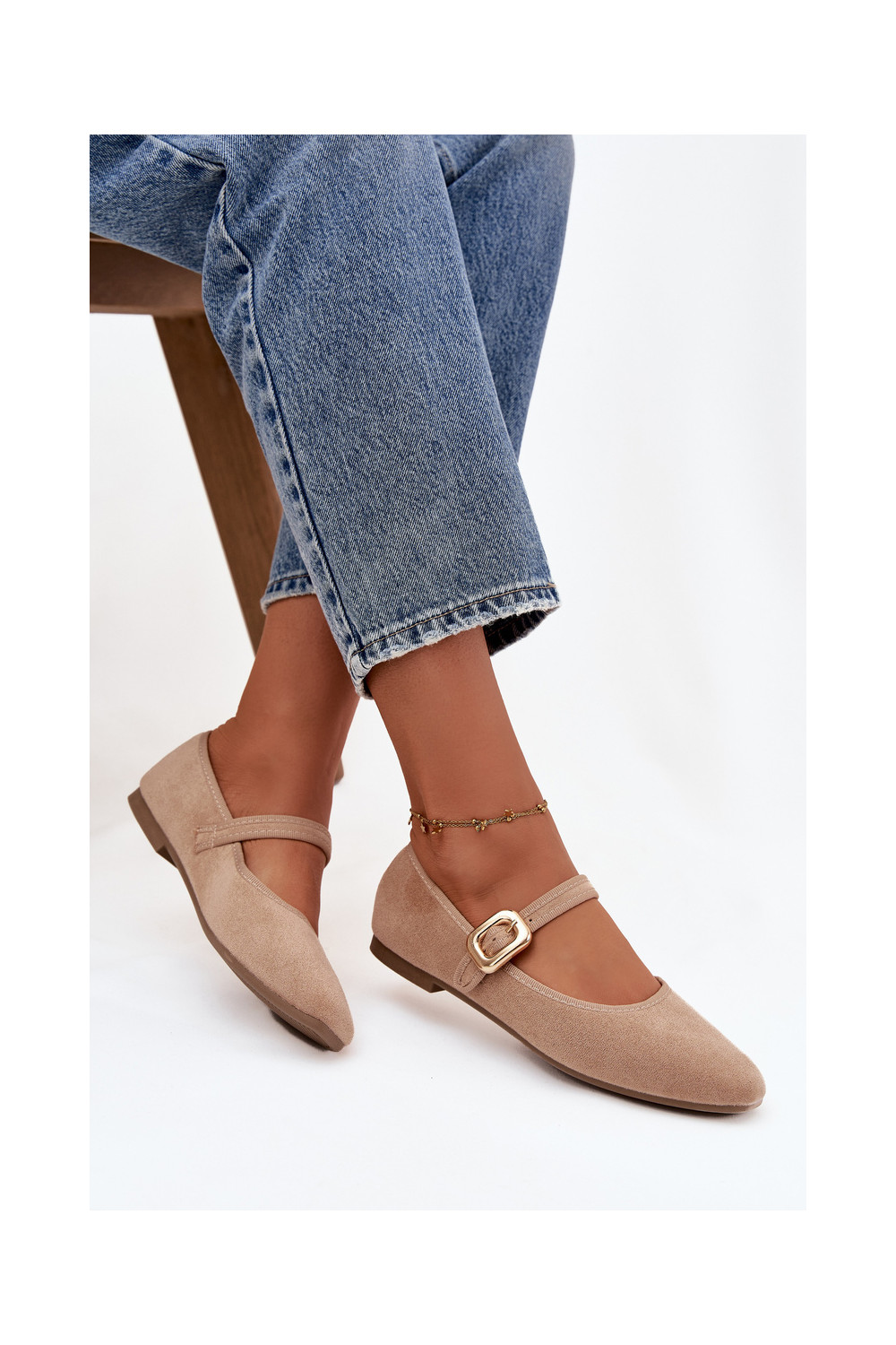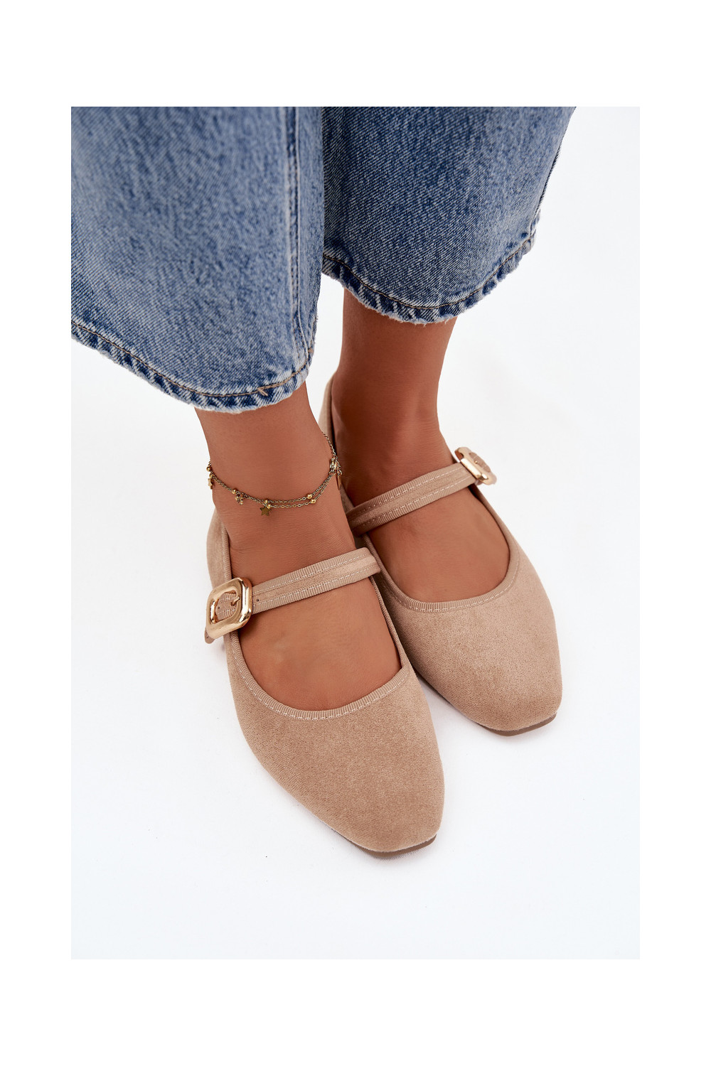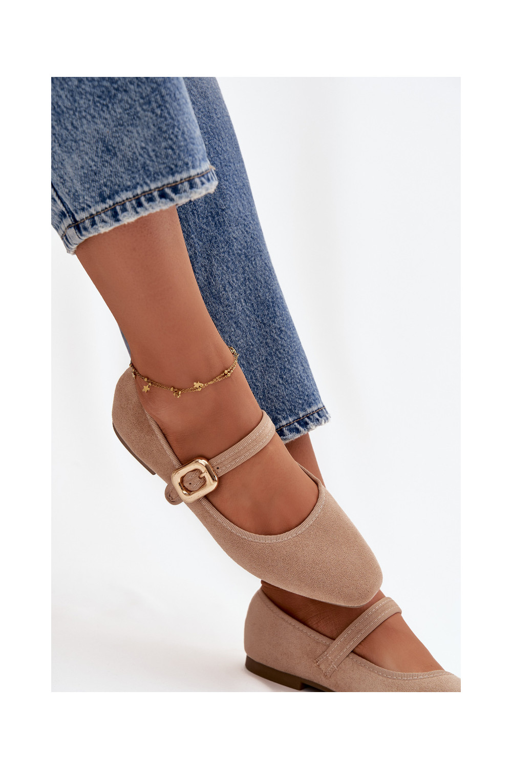 Balerinos su dirželiais I Złotą su sagtimis iš eko zomšosowe smėlio spalvos Adelora