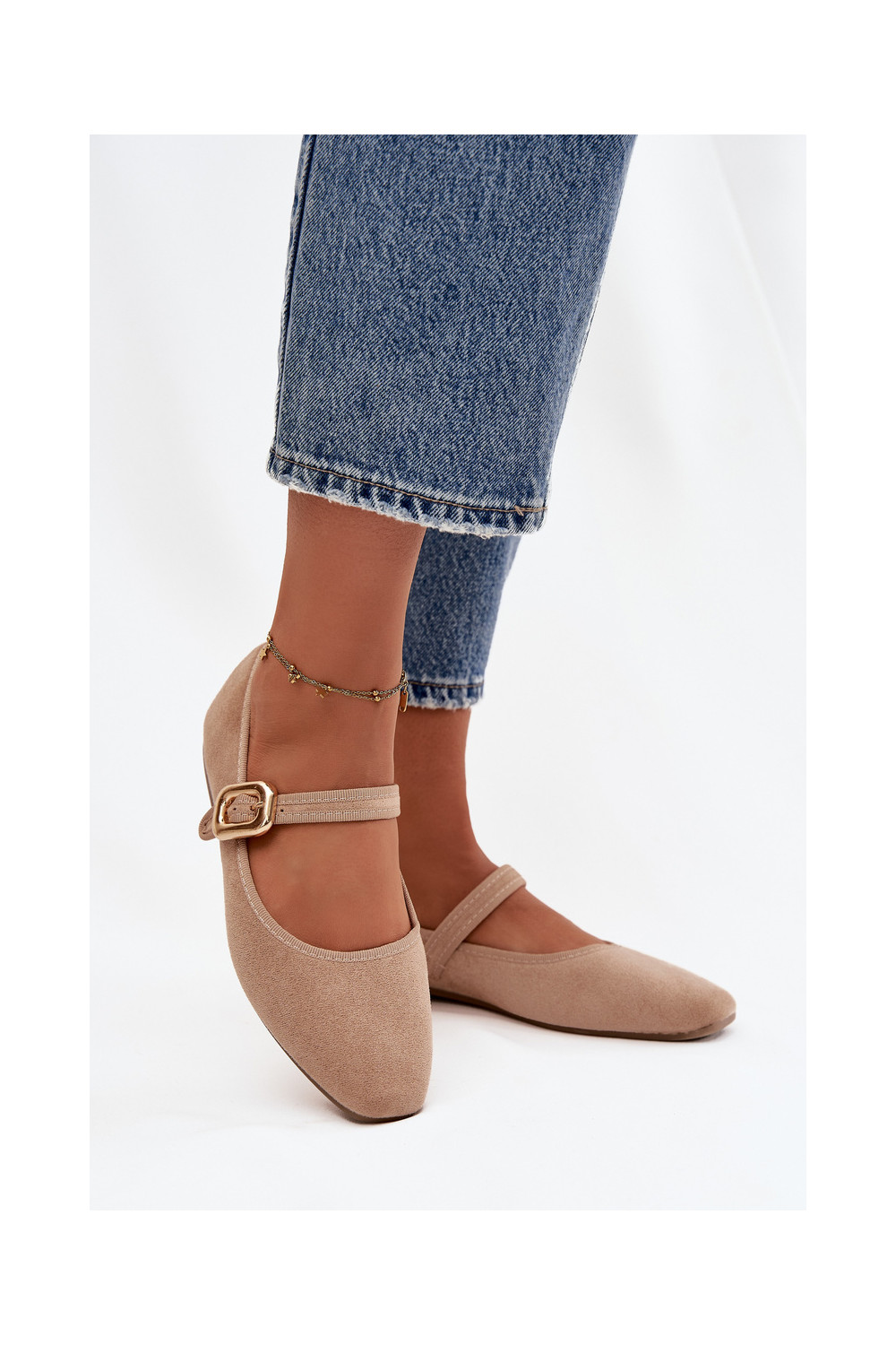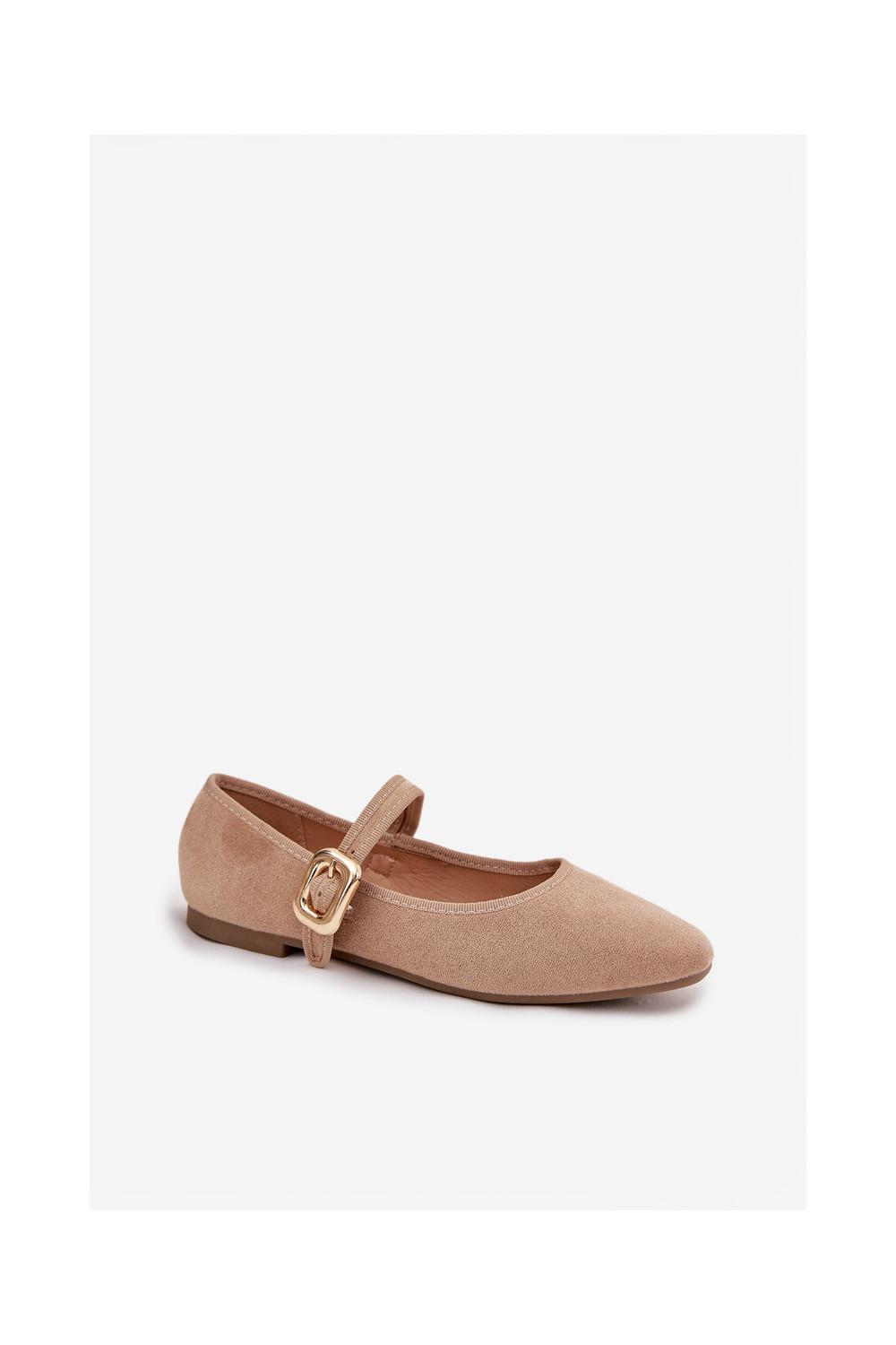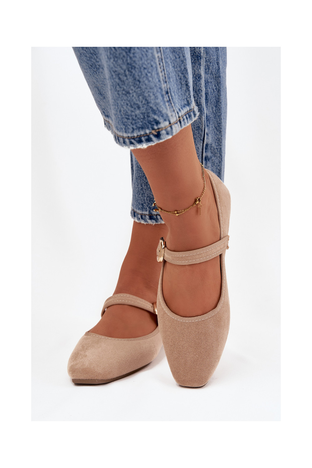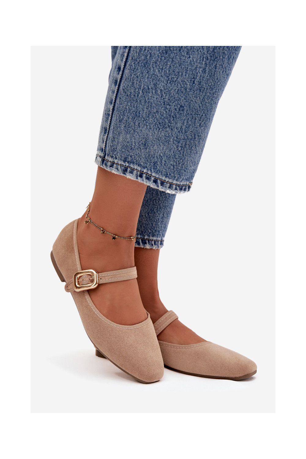 Balerinos su dirželiais I Złotą su sagtimis iš eko zomšosowe smėlio spalvos Adelora