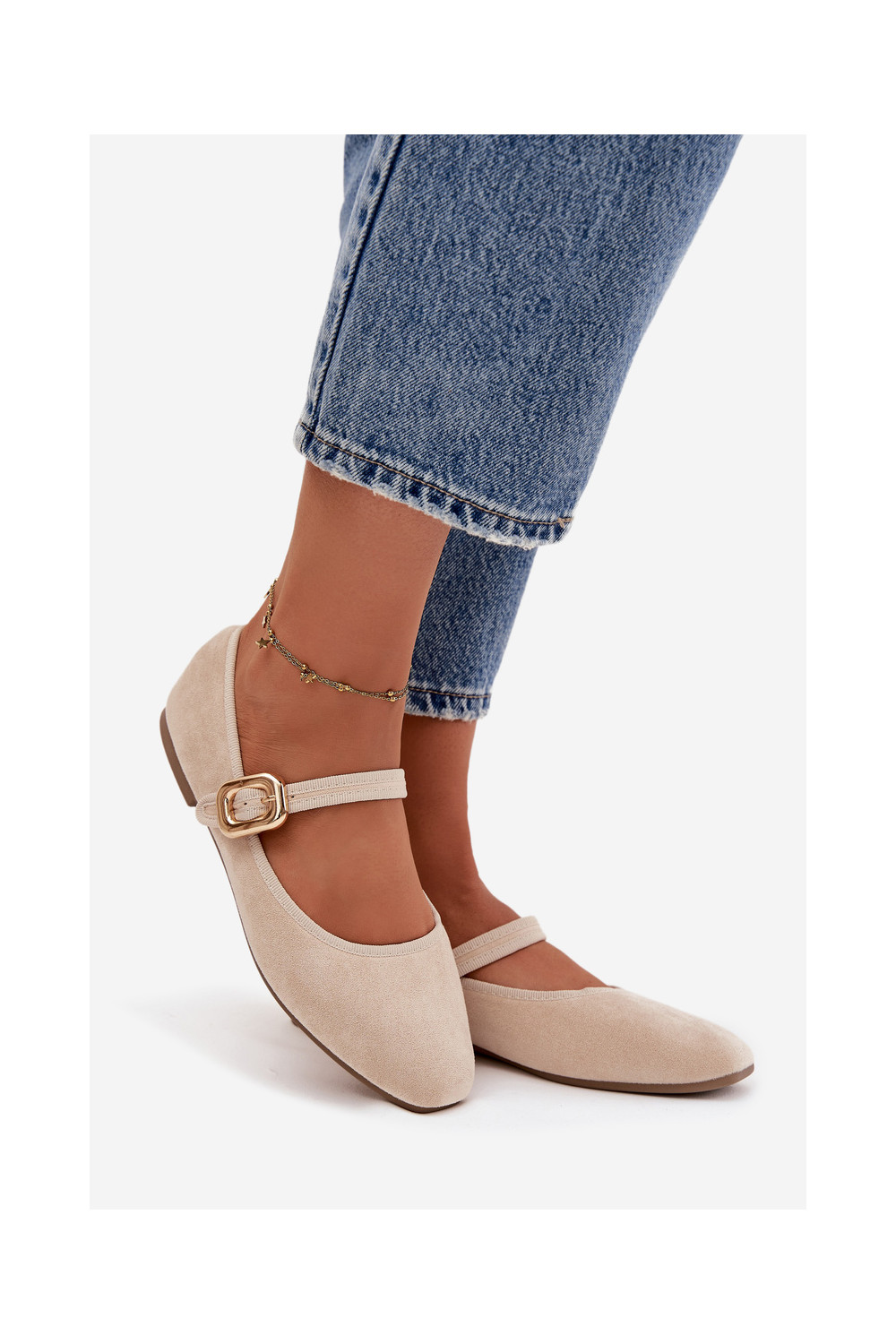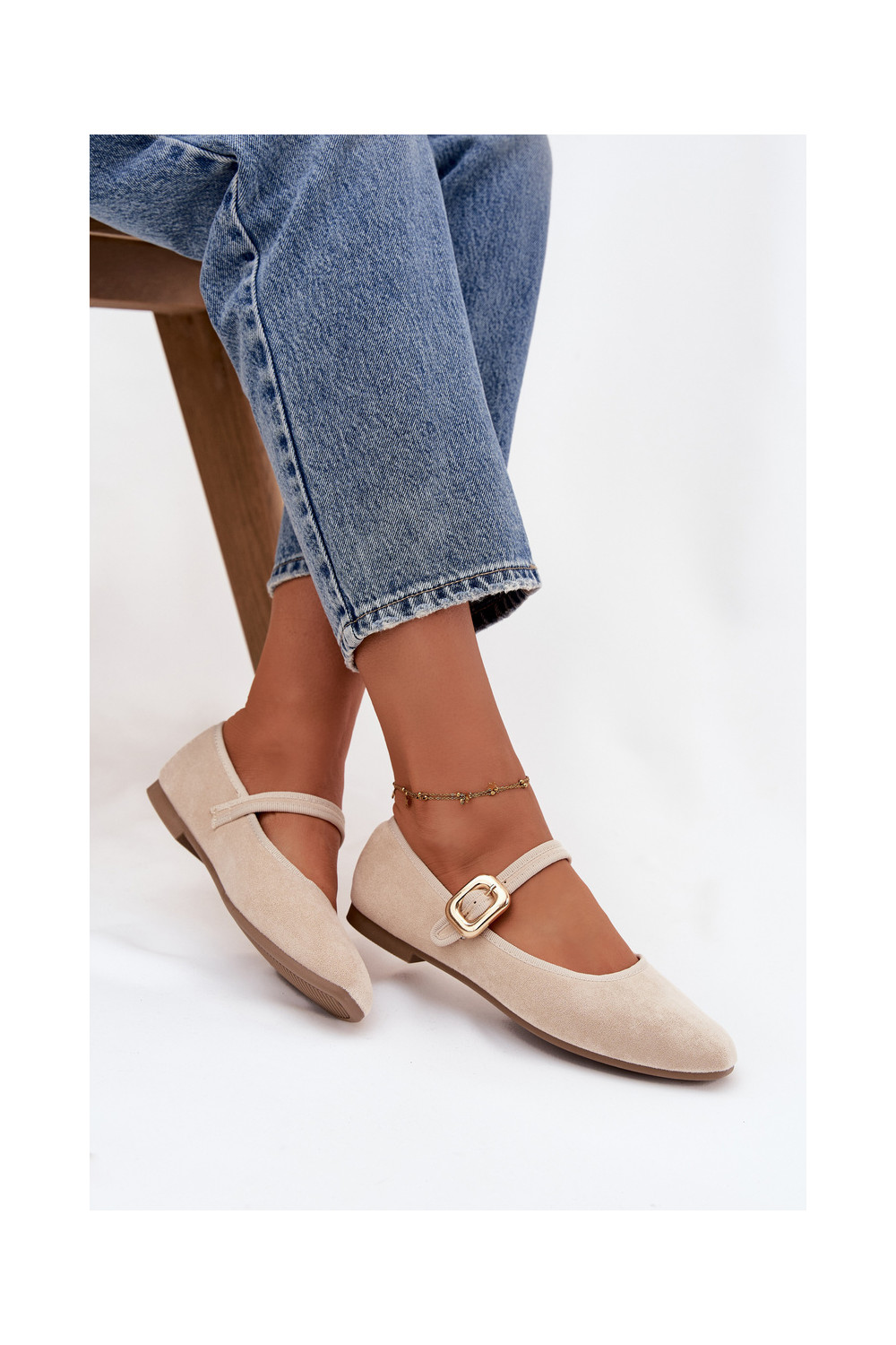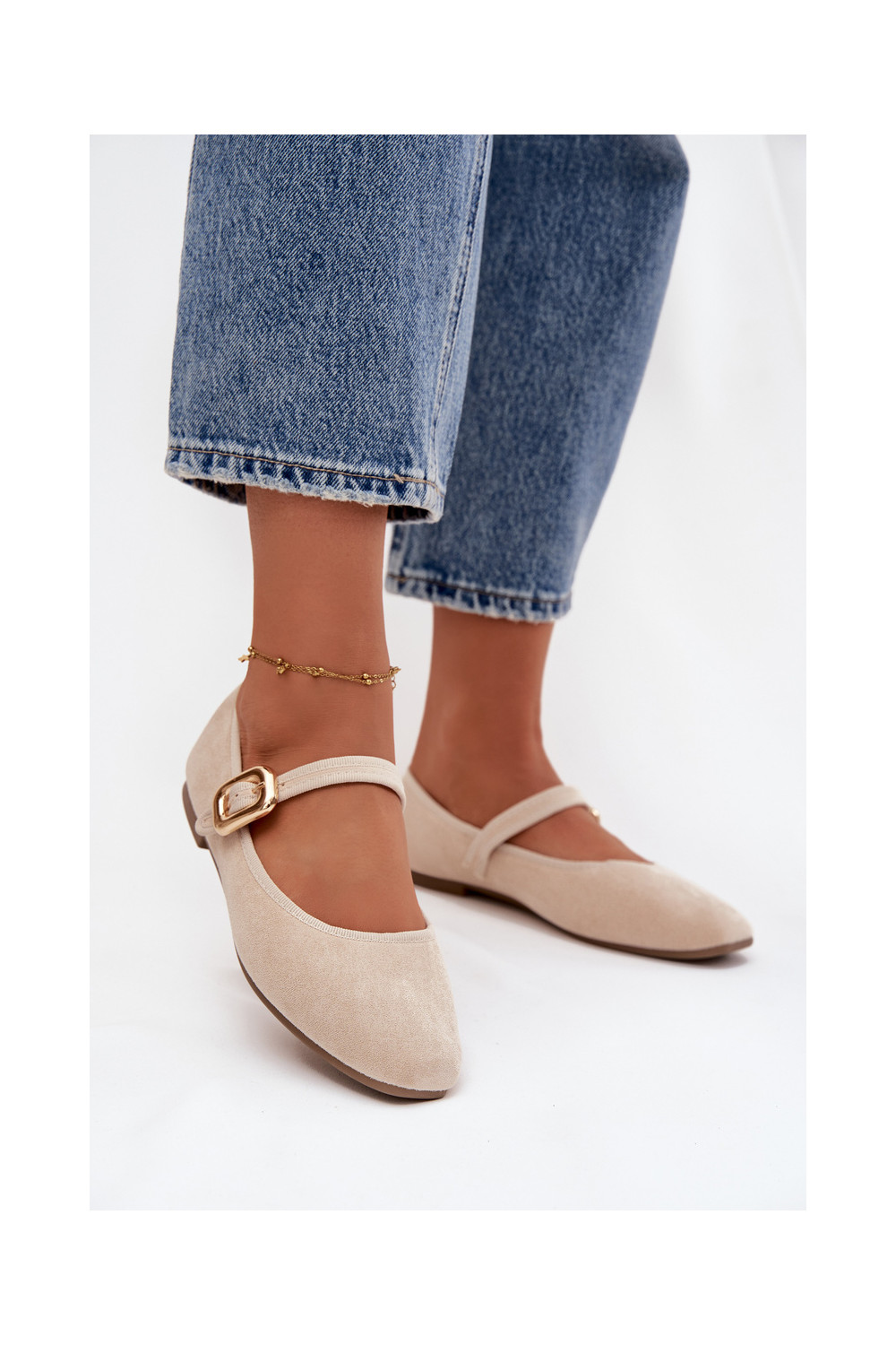 Balerinos su dirželiais I Złotą su sagtimis iš eko zomšosowe dramblio kaulo spalvos Adelora