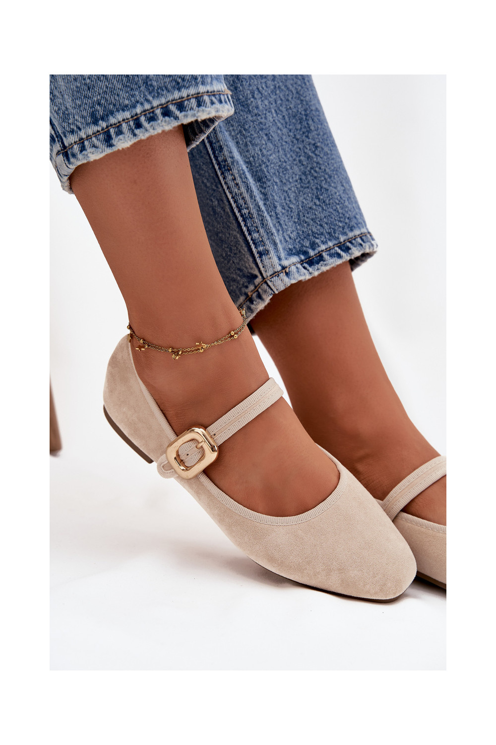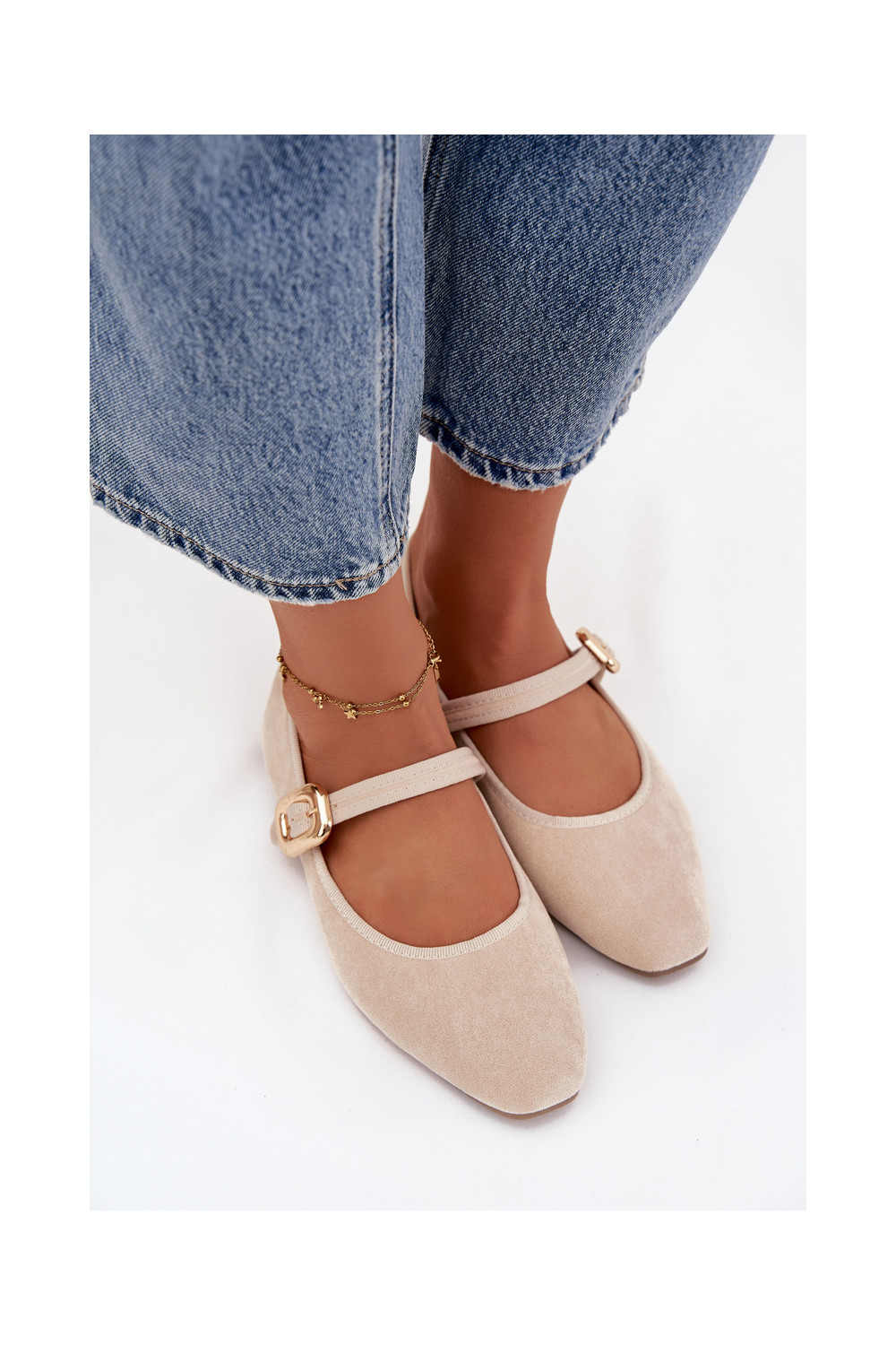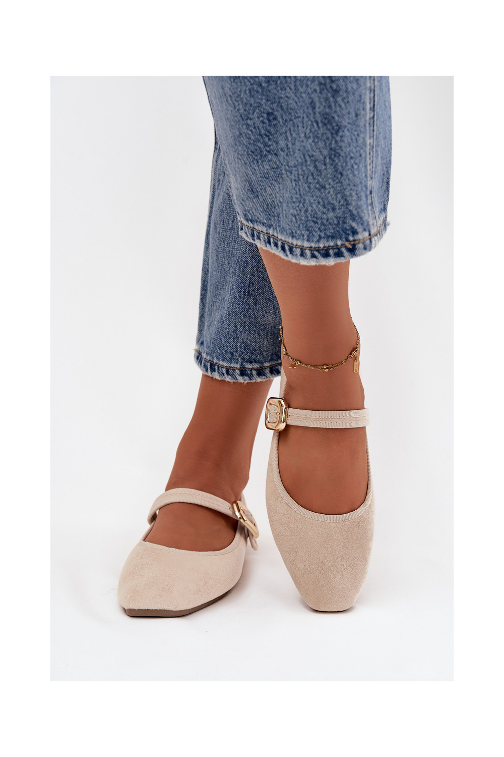 Balerinos su dirželiais I Złotą su sagtimis iš eko zomšosowe dramblio kaulo spalvos Adelora