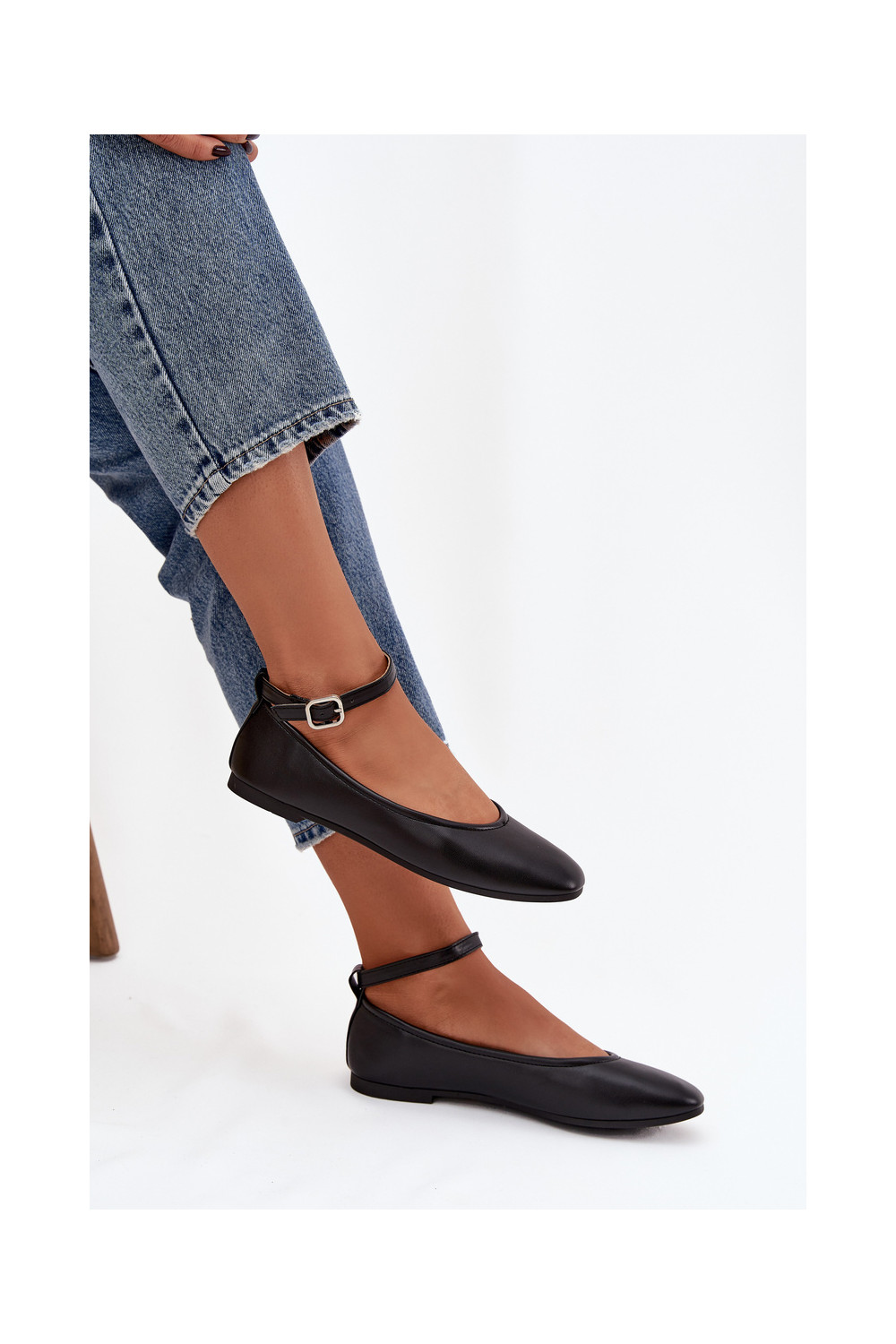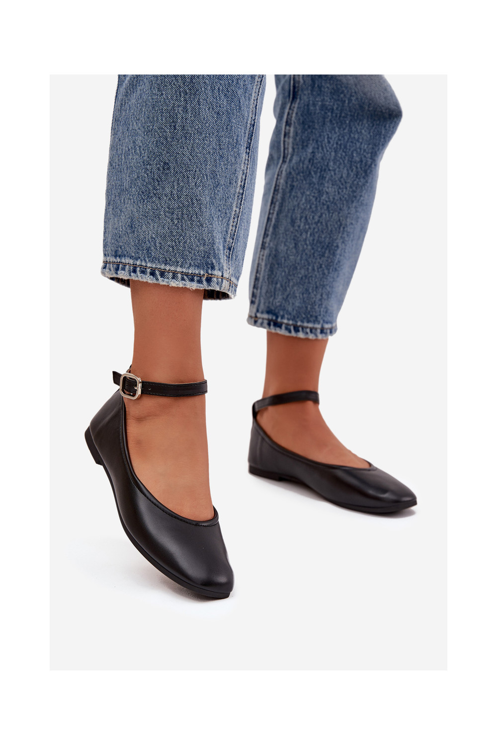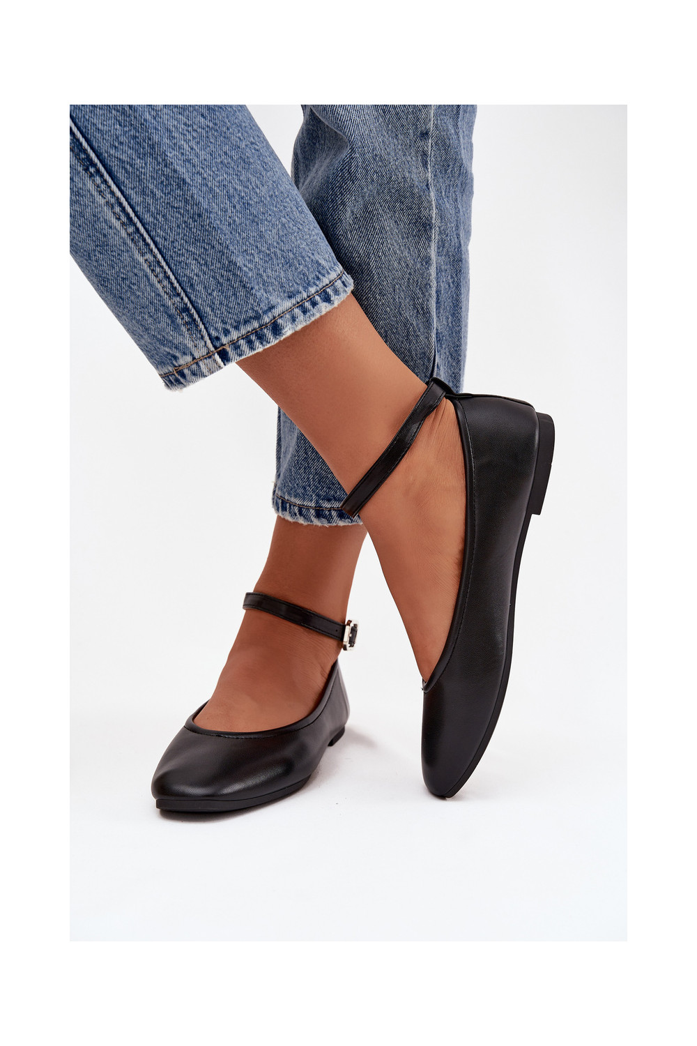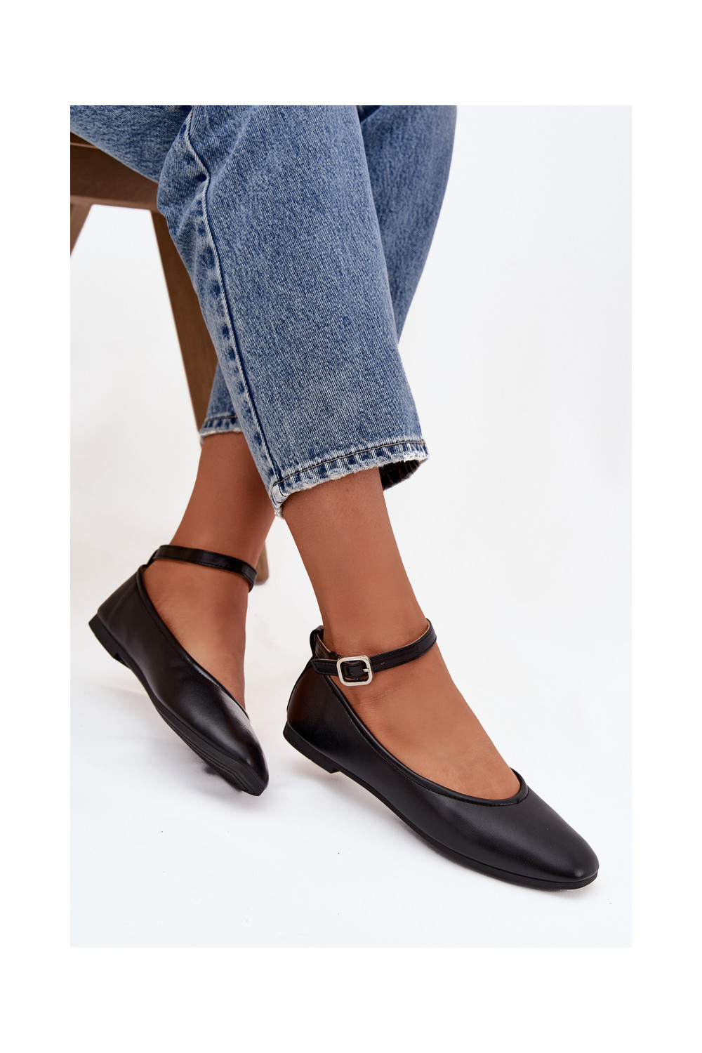 Balerinos Moteriškas su dirželiais I su sagtimis juodos spalvos Janelor