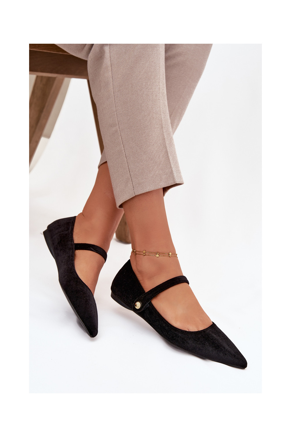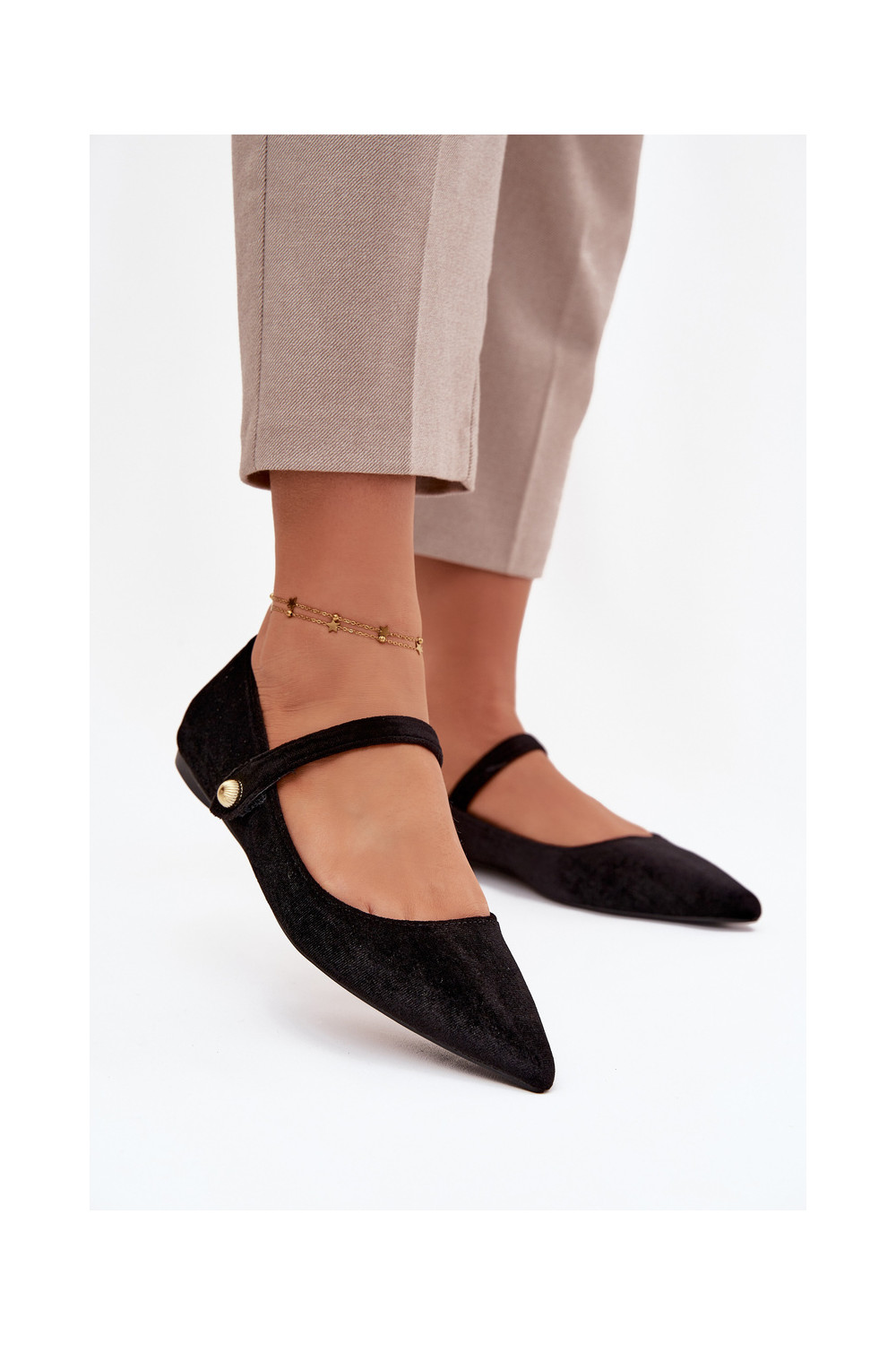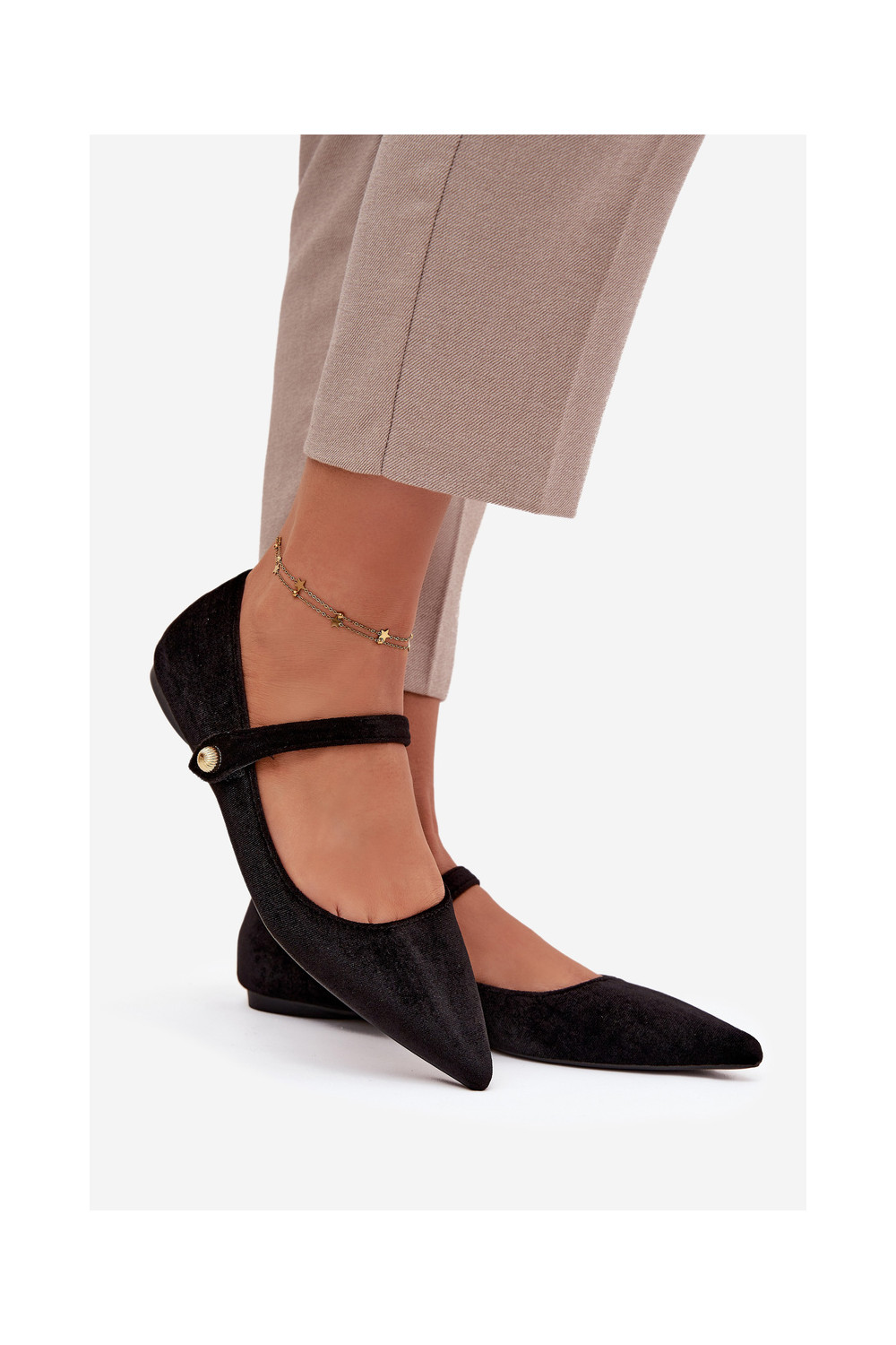 Aksamitne Balerinos su dirželiais I aukso spalvosm Detalem juodos spalvos Gisanne