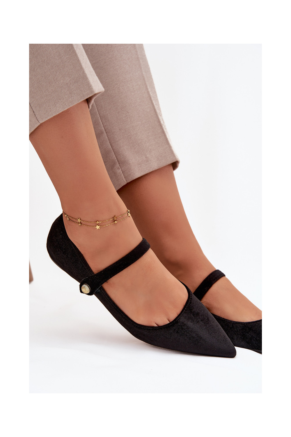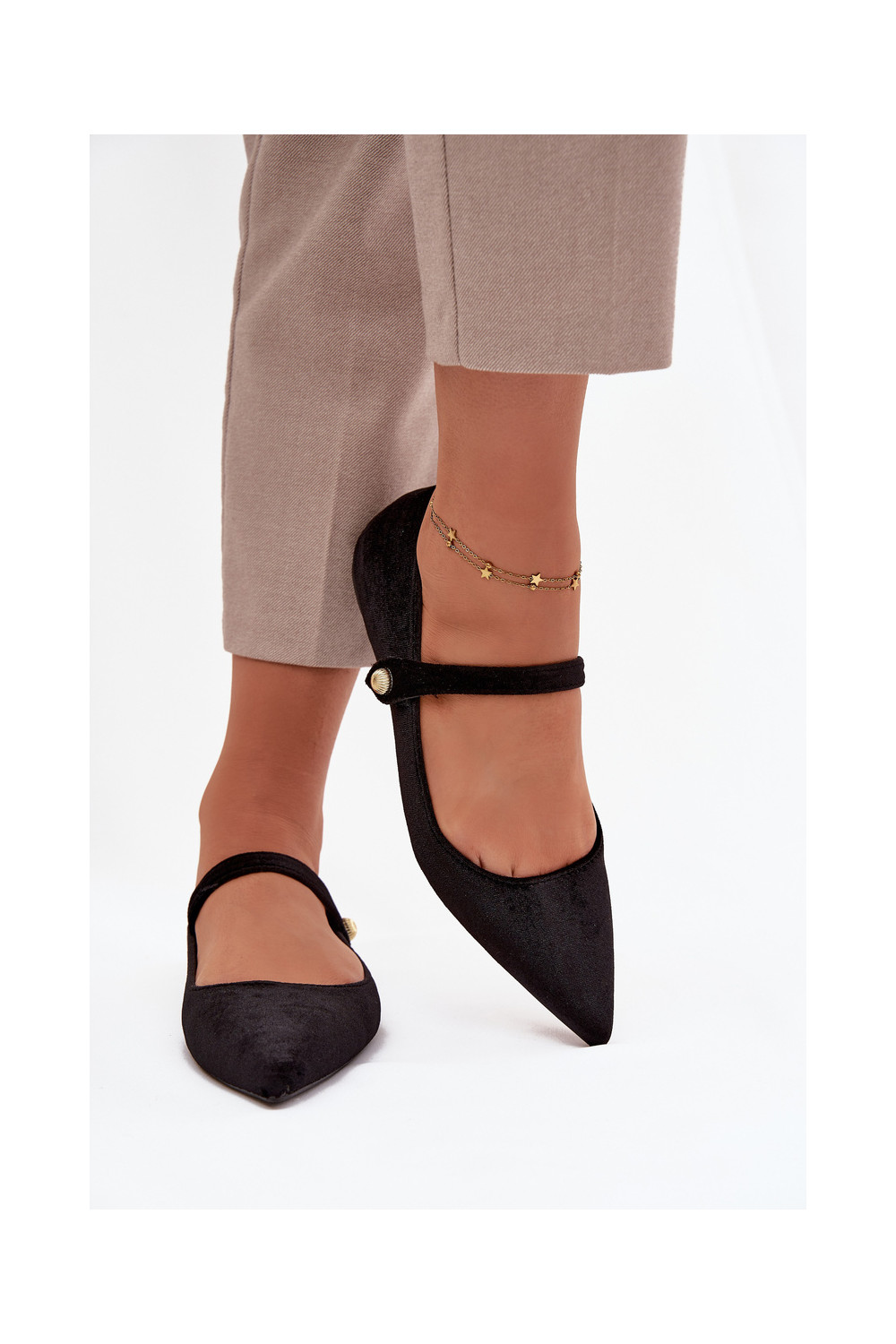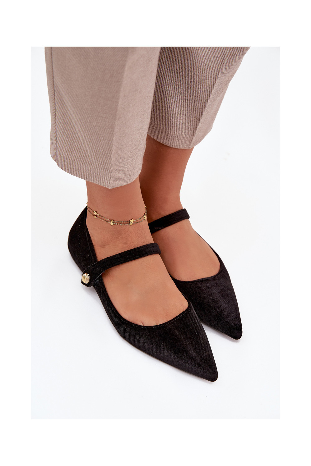 Aksamitne Balerinos su dirželiais I aukso spalvosm Detalem juodos spalvos Gisanne