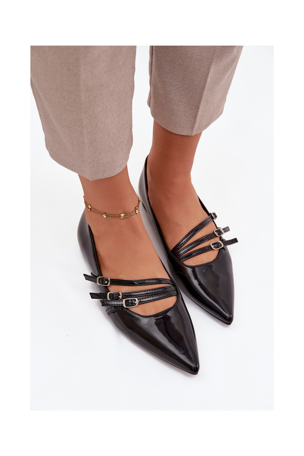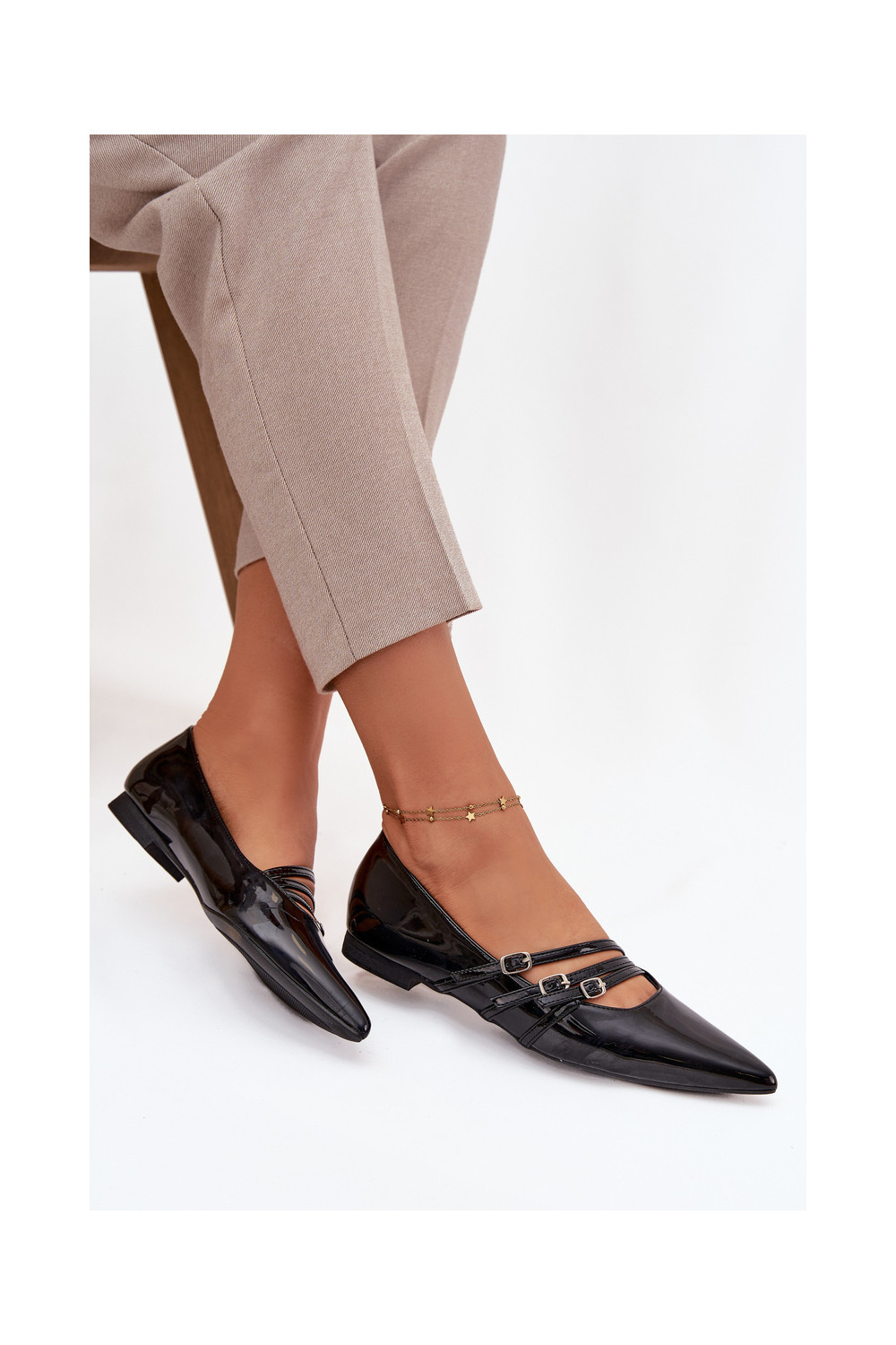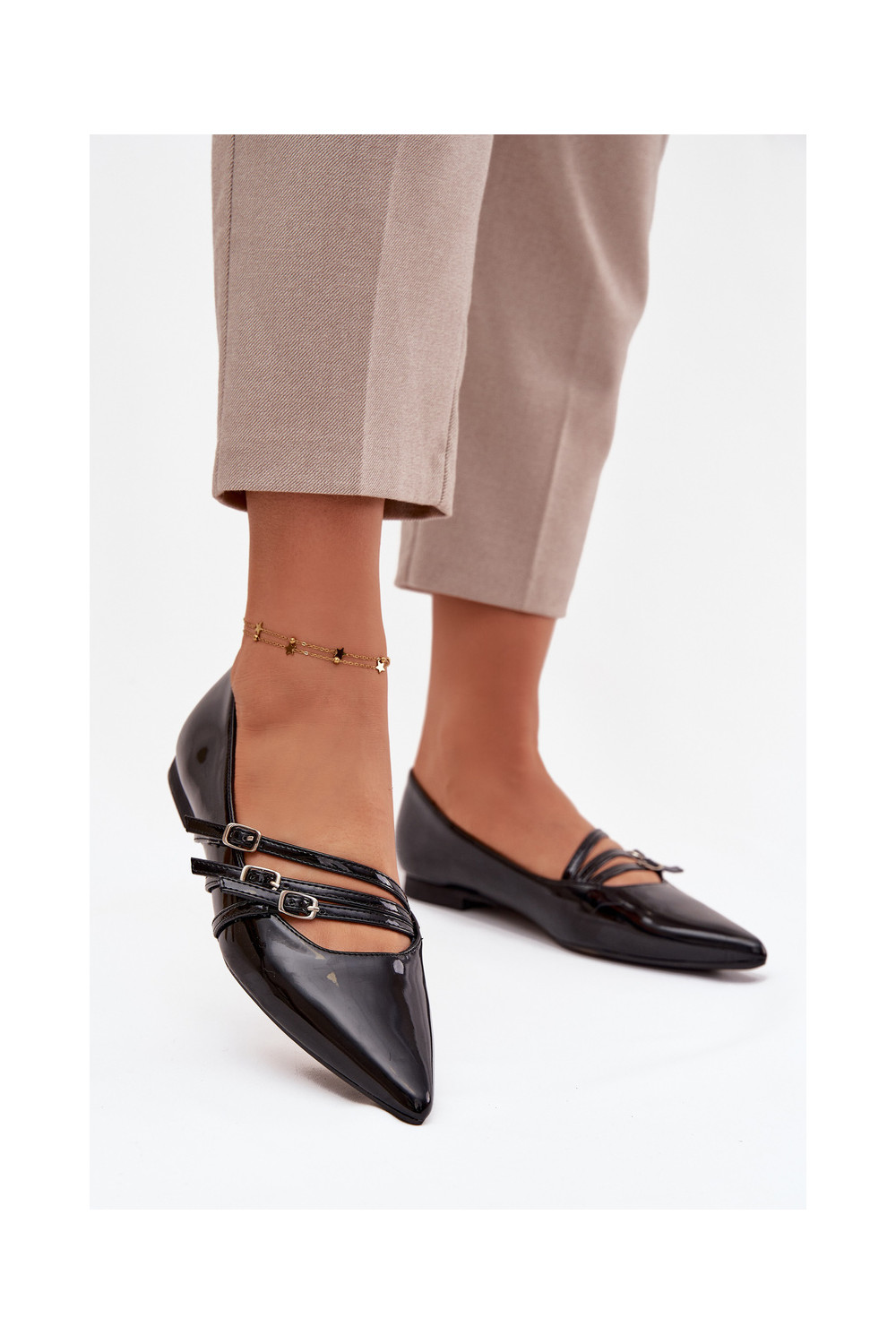 Lakuotos balerinos su juostelėmis Juodos spalvos Palenna