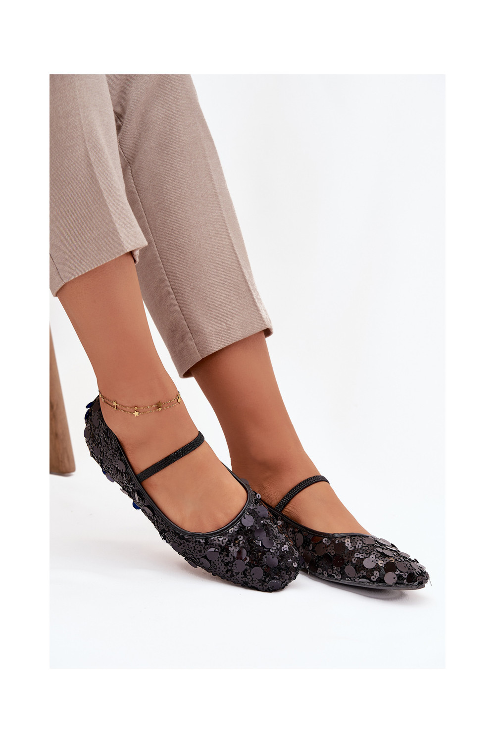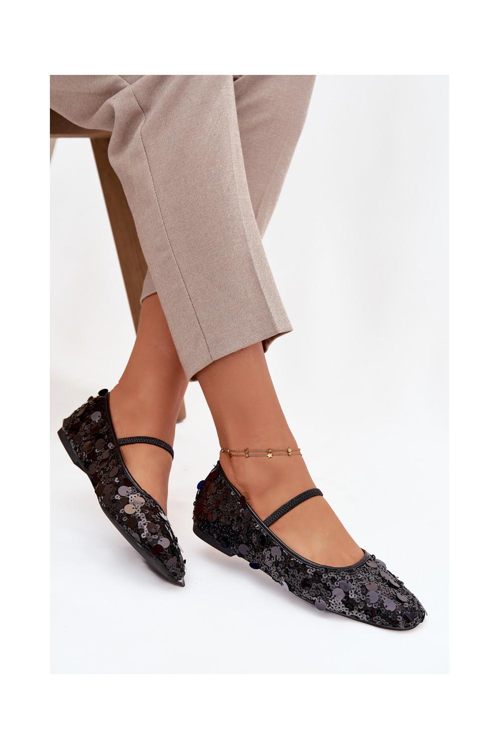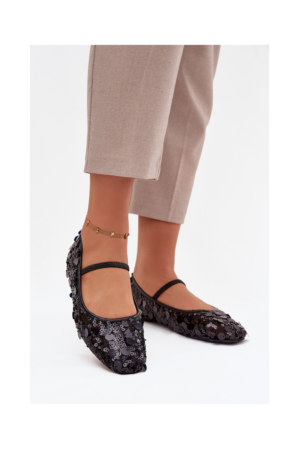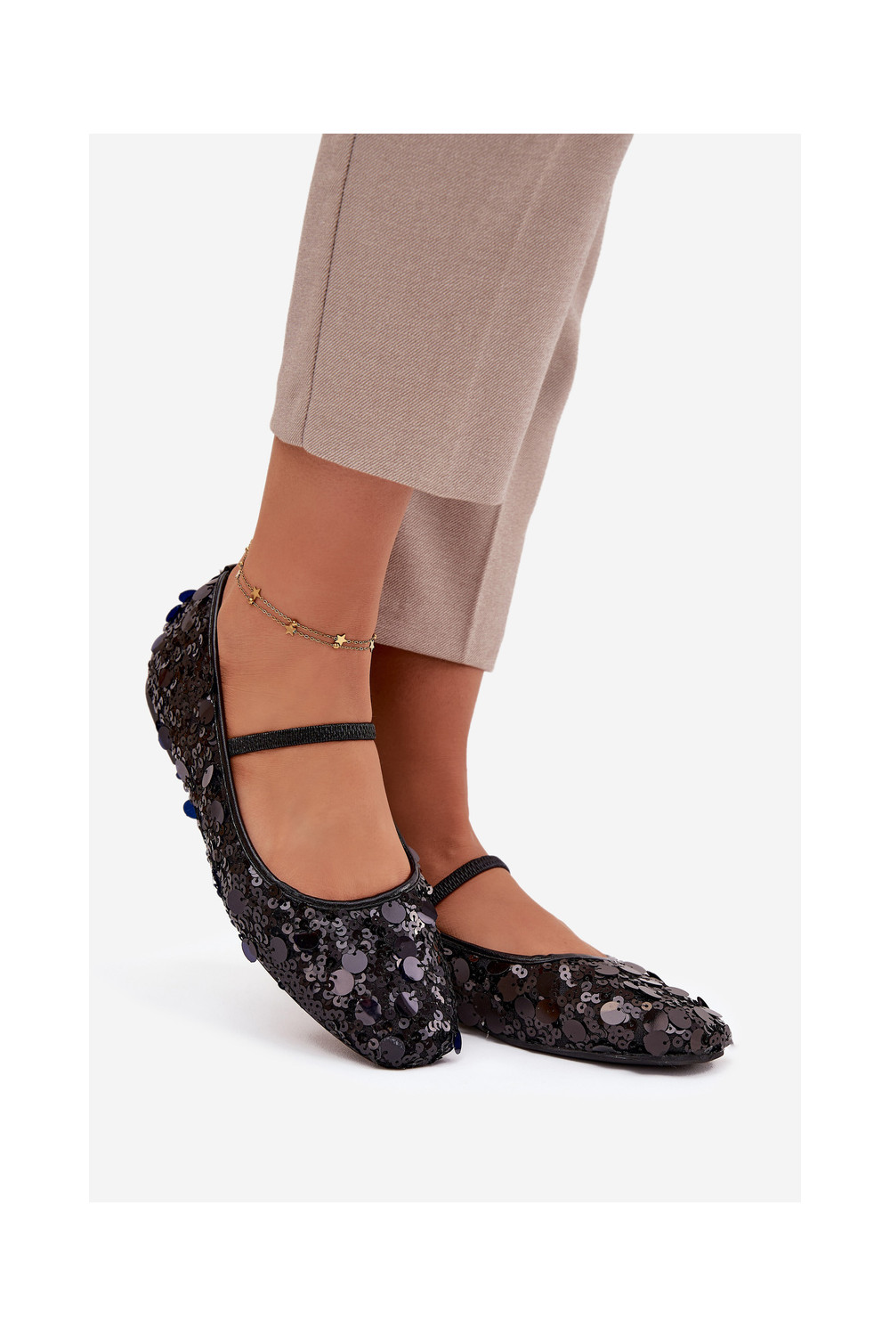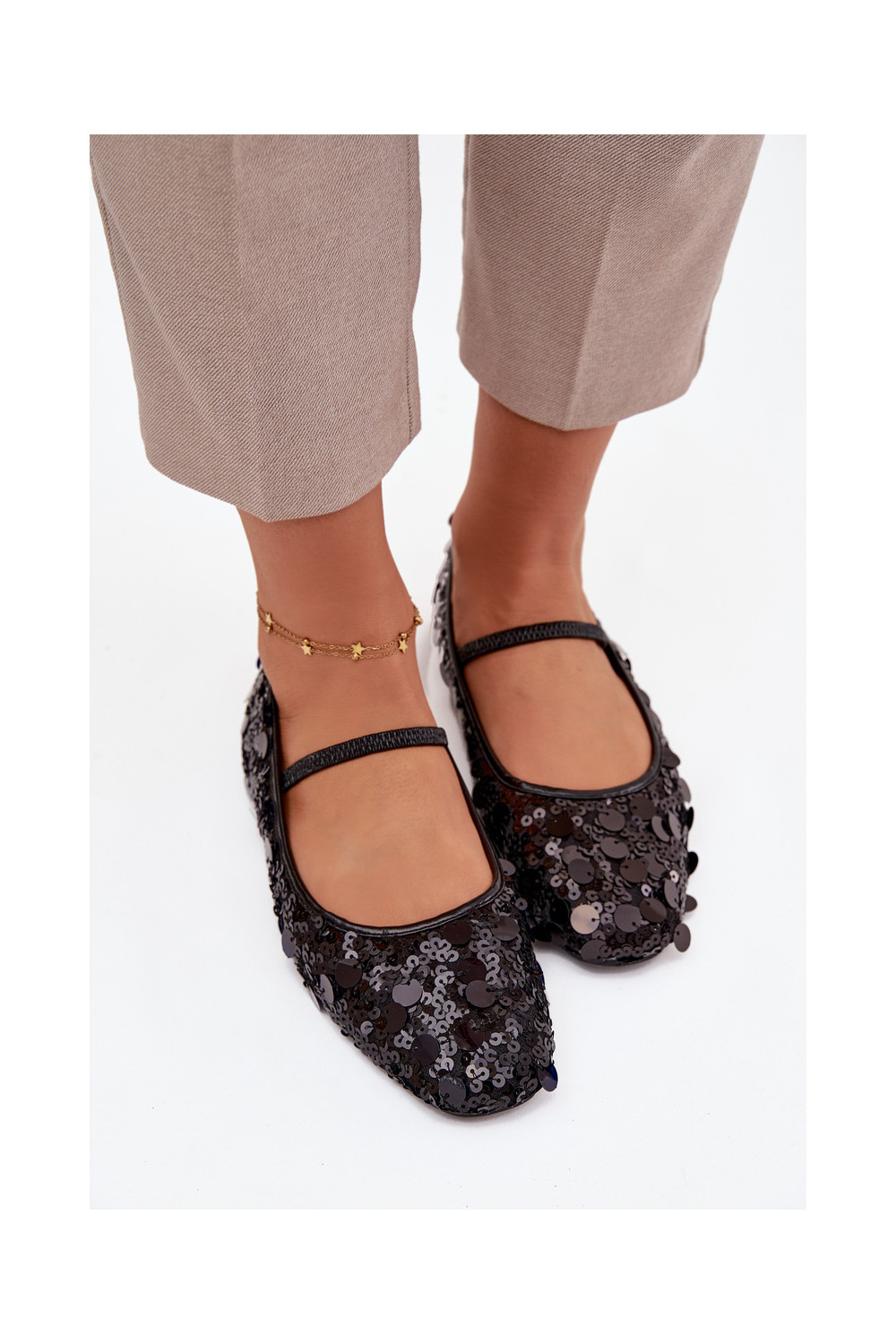 Balerinos Ozdobione Cekinami juodos spalvos Terlina