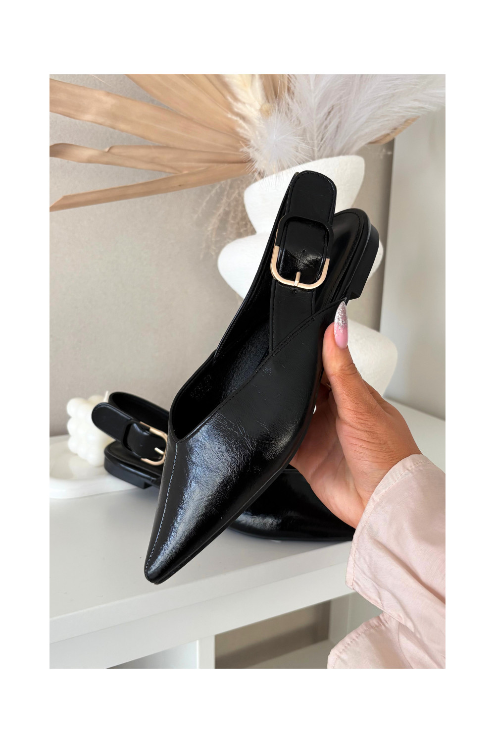 Lakuotos balerinos su sagtimis juodos spalvos Rinalle