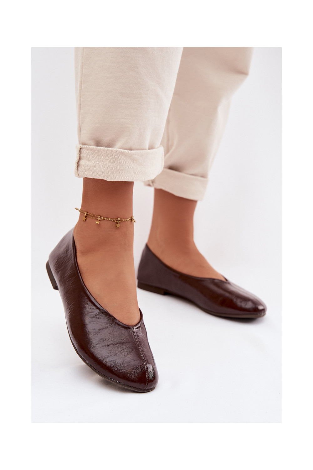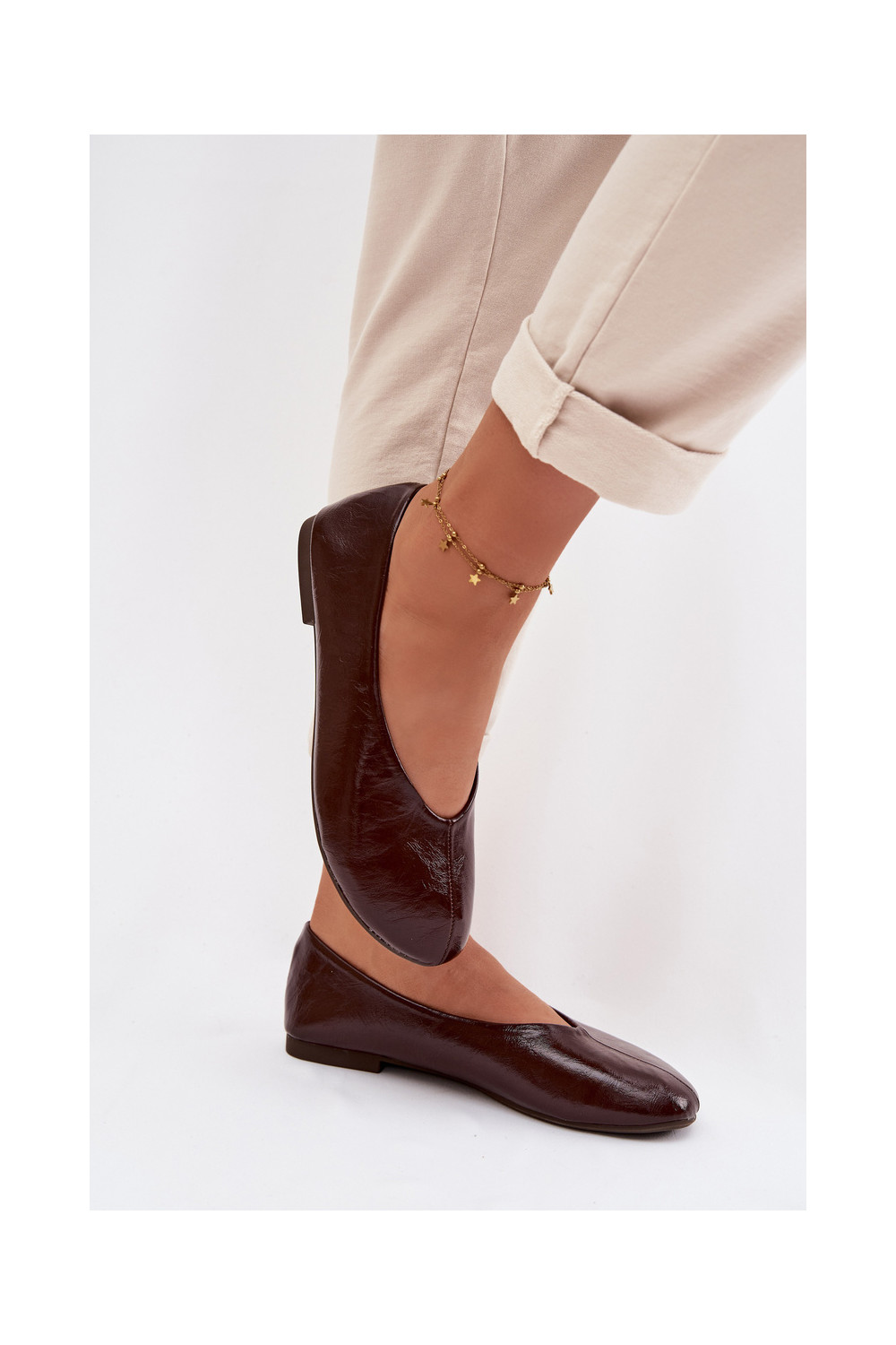 Lakuotos balerinos iš eko odos Czekoladowe Selanora
