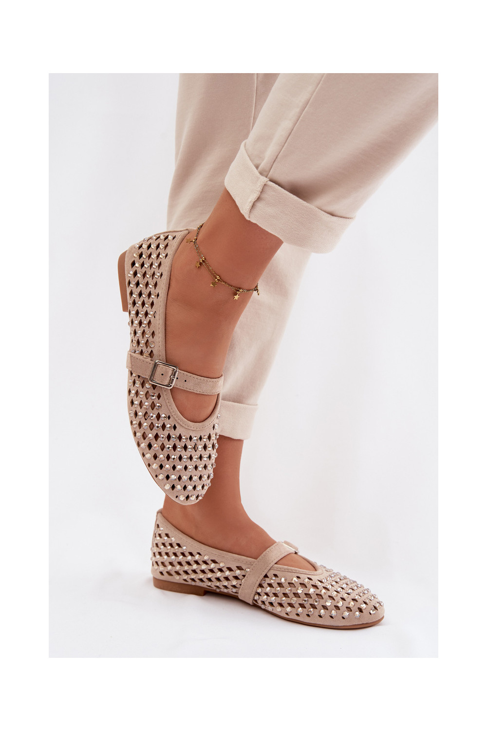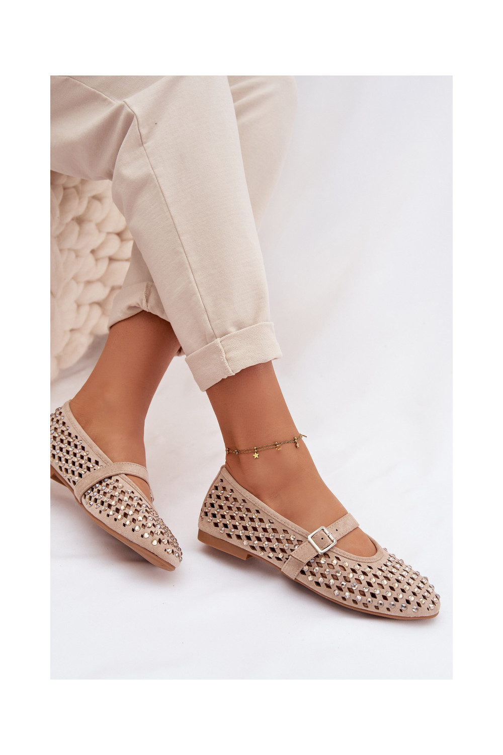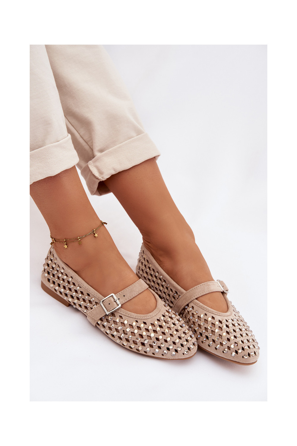Balerinos Moteriškas su aužūro elementais su tviskančiomis akutėmis I Juostelėsem smėlio spalvos INilvessa
