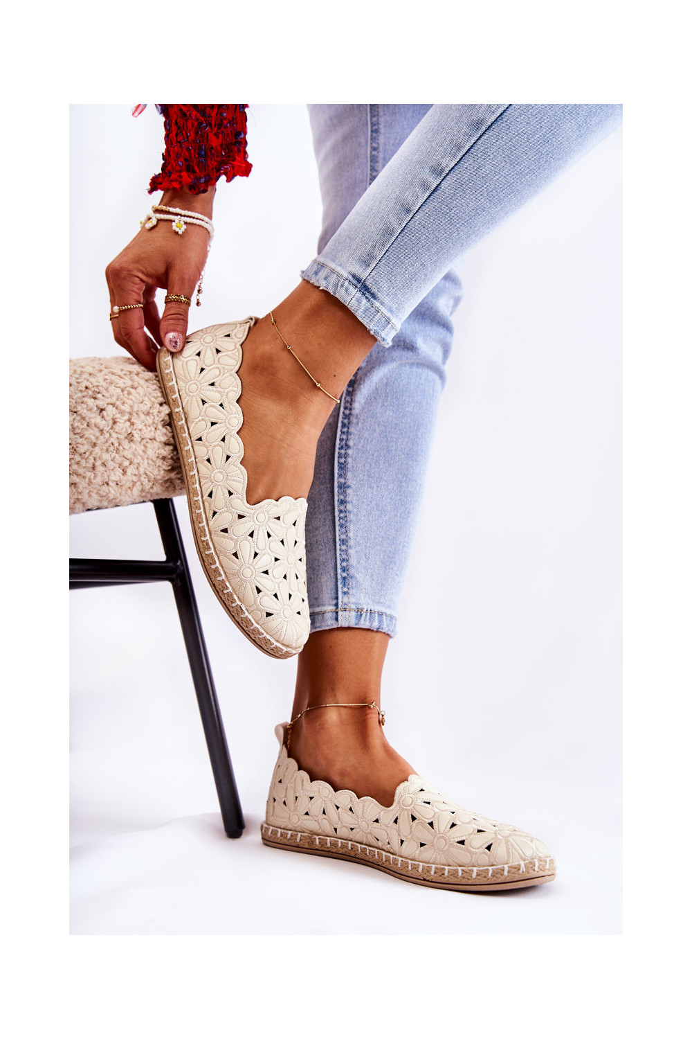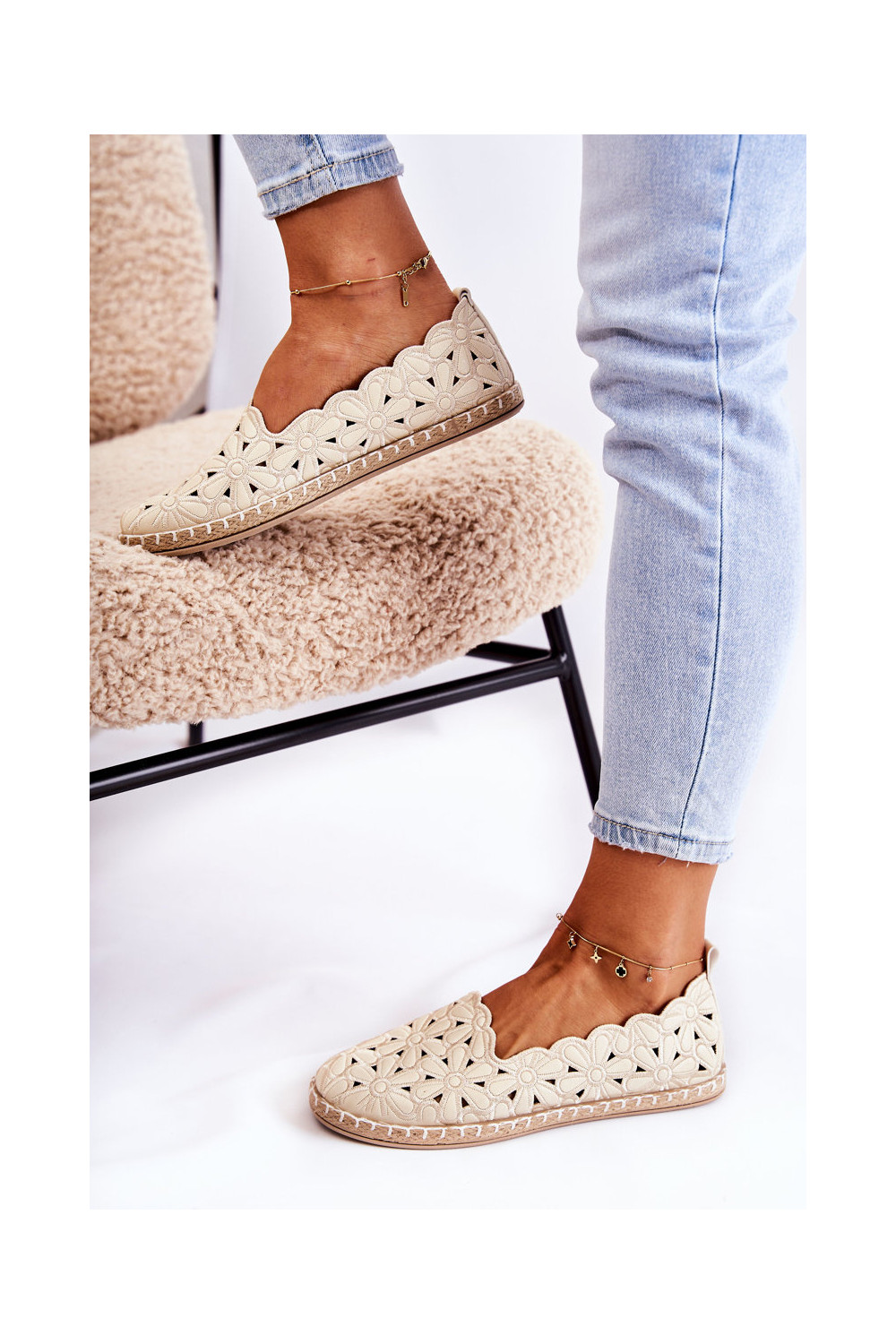 Moteriškas Įsispiriamo modelio Balerinos su gėlytėmis smėlio spalvos Vennice