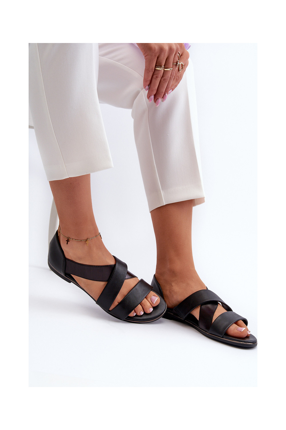 Odiniai sandalai su šluotele juodos spalvos Apulia