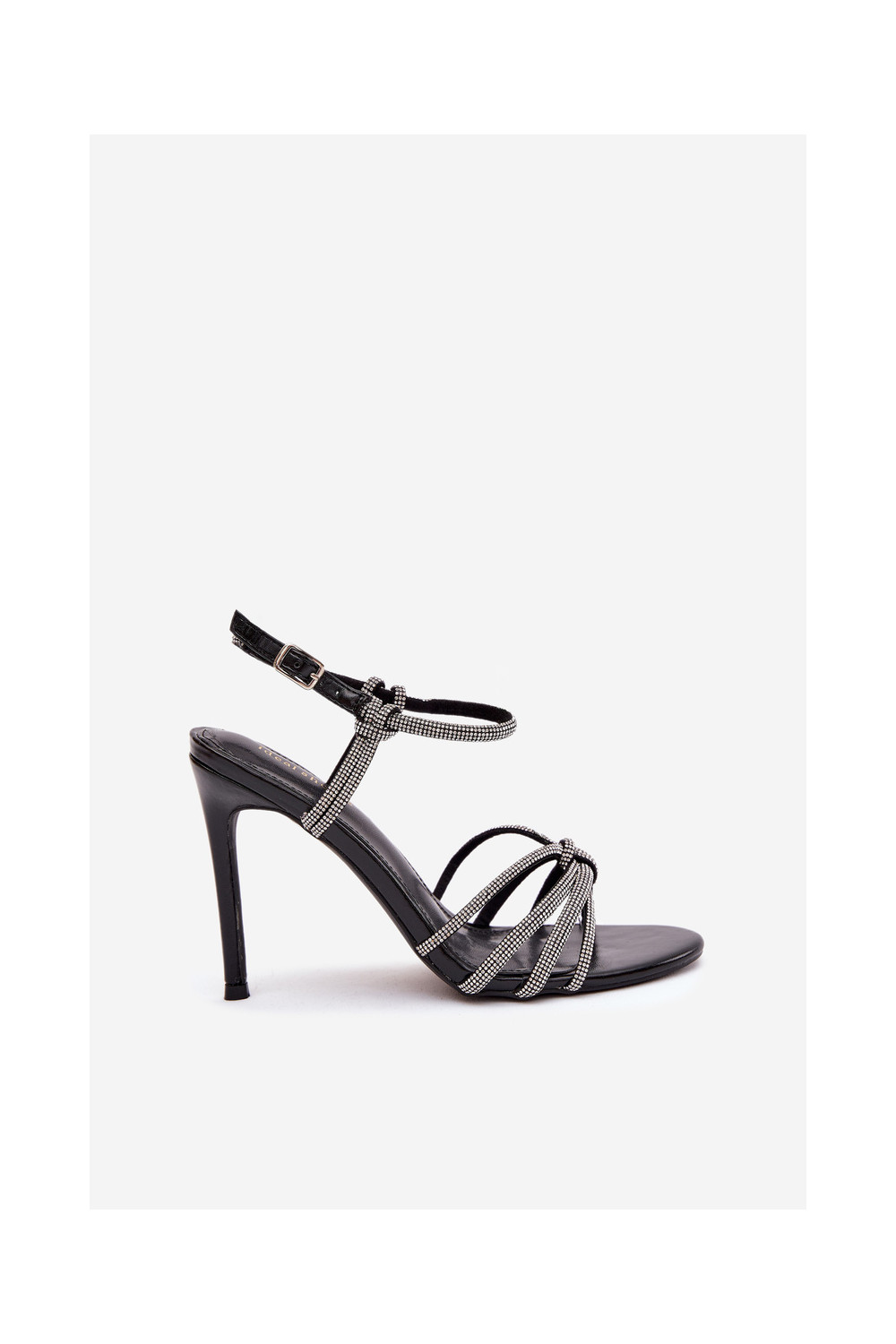 Moteriškos basutės su plonais kulniukais su juostelėmis Juodos spalvos Tanelle