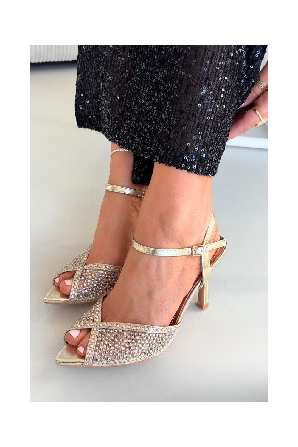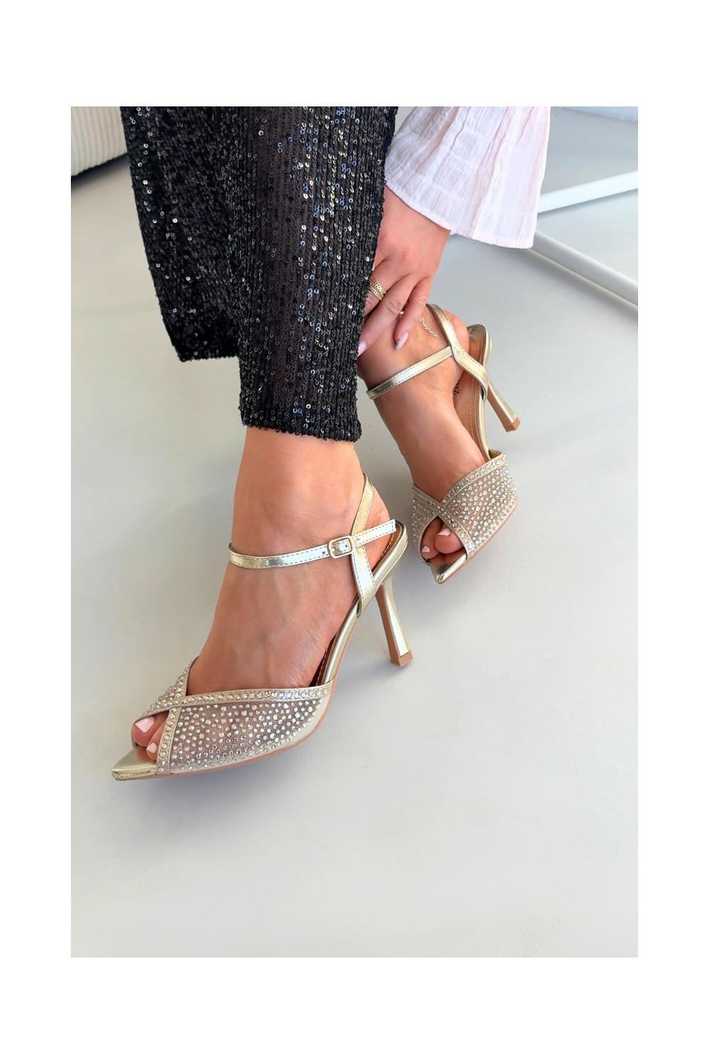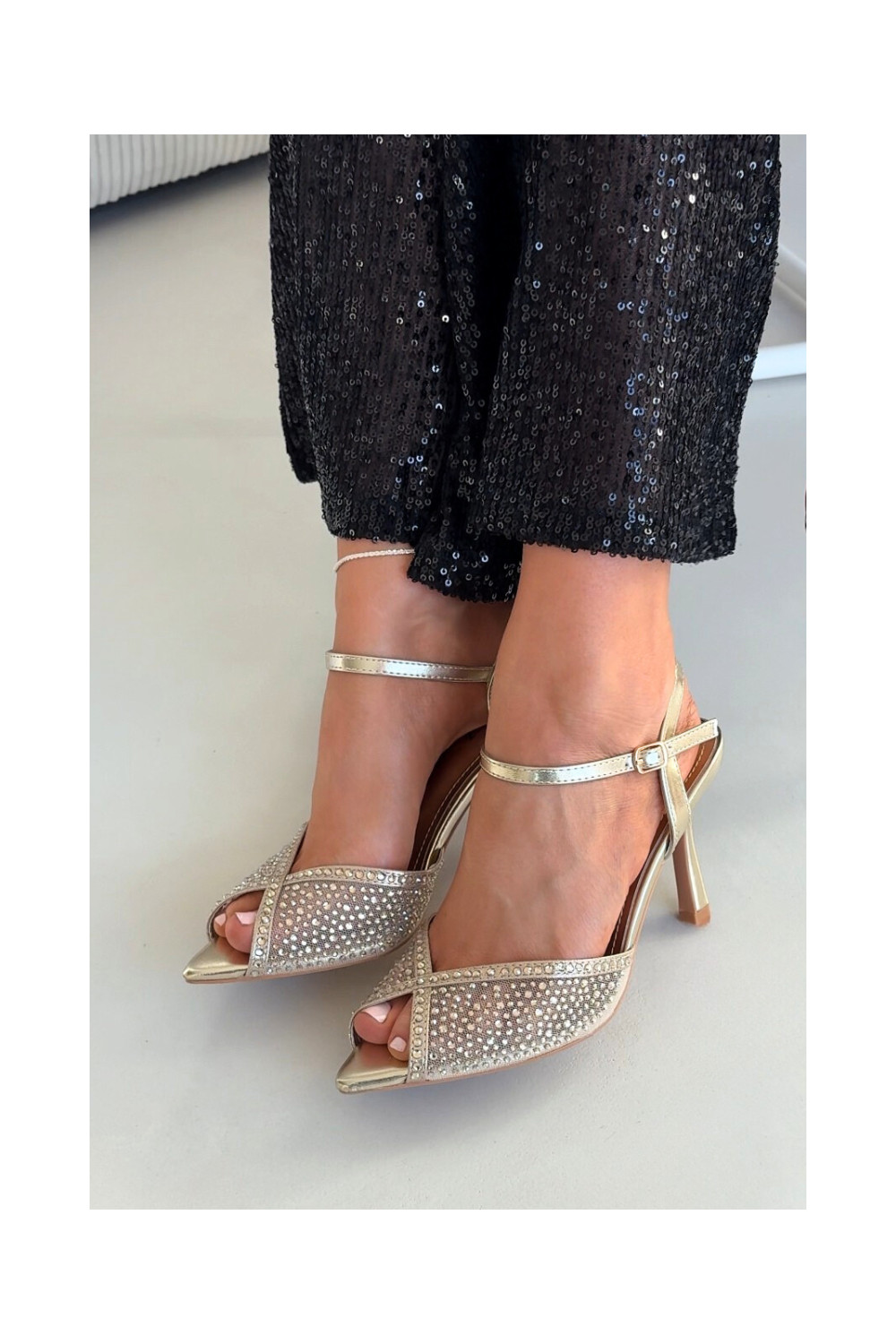 Moteriškos basutės su plonais kulniukais aukso spalvos Peloria