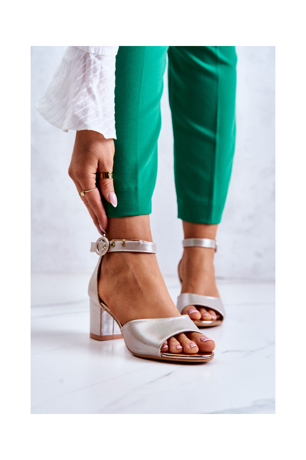Aukso spalvos odiniai aukštakulniai sandalai Vinceza 20100