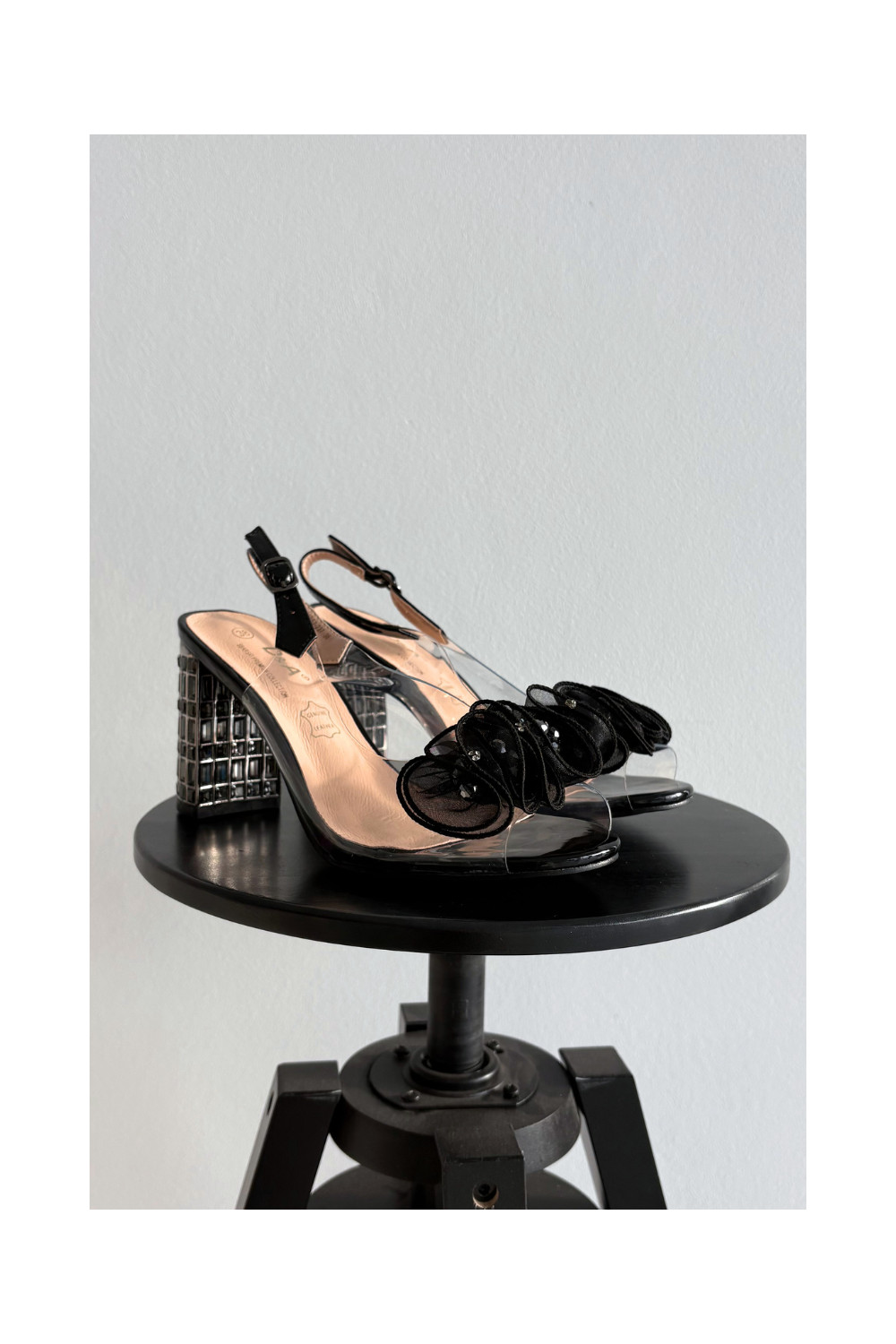 basutės su kulniukais su spindinčiomis akutėmis D&A MR52-237 Juodos spalvos