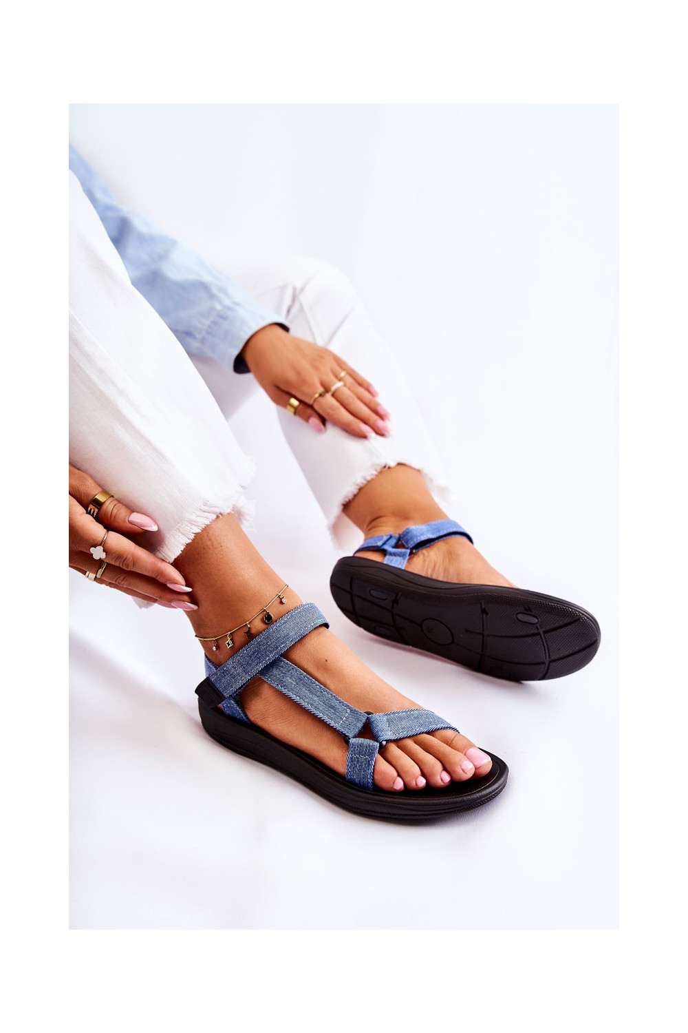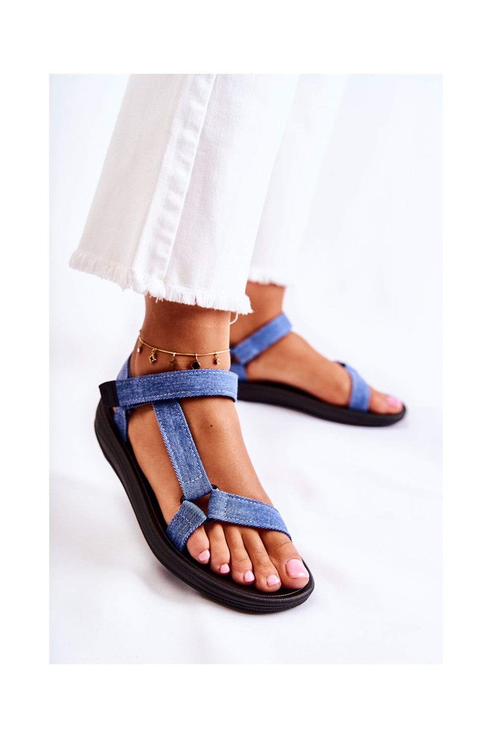Moteriškos basutės su lipniais užsegimais mėlynos spalvos Kalla