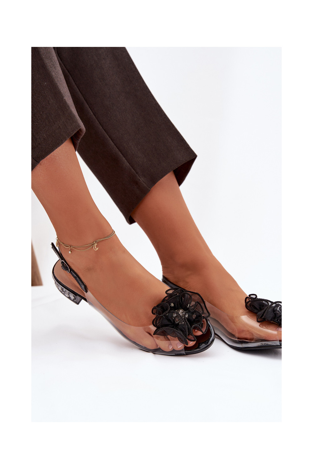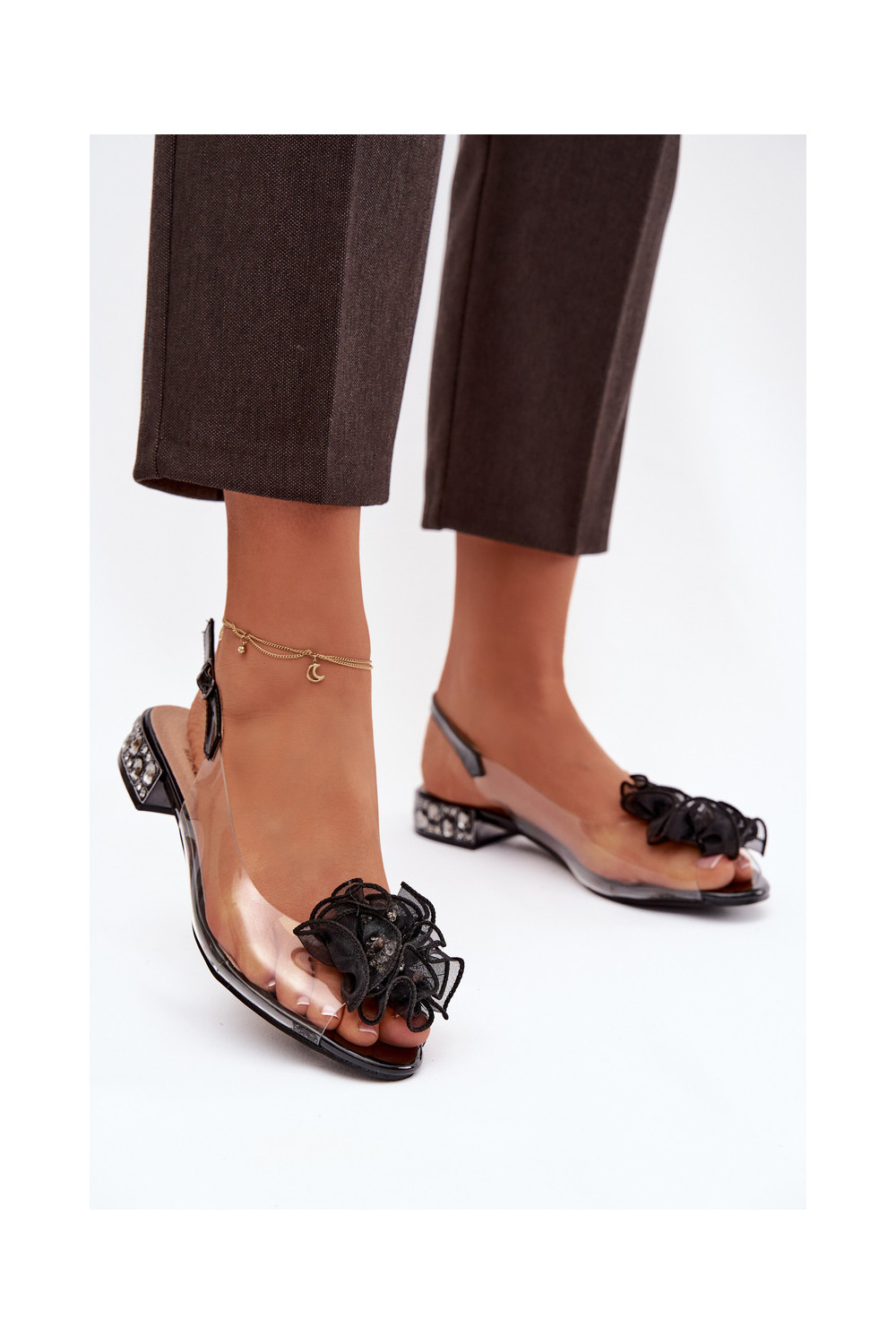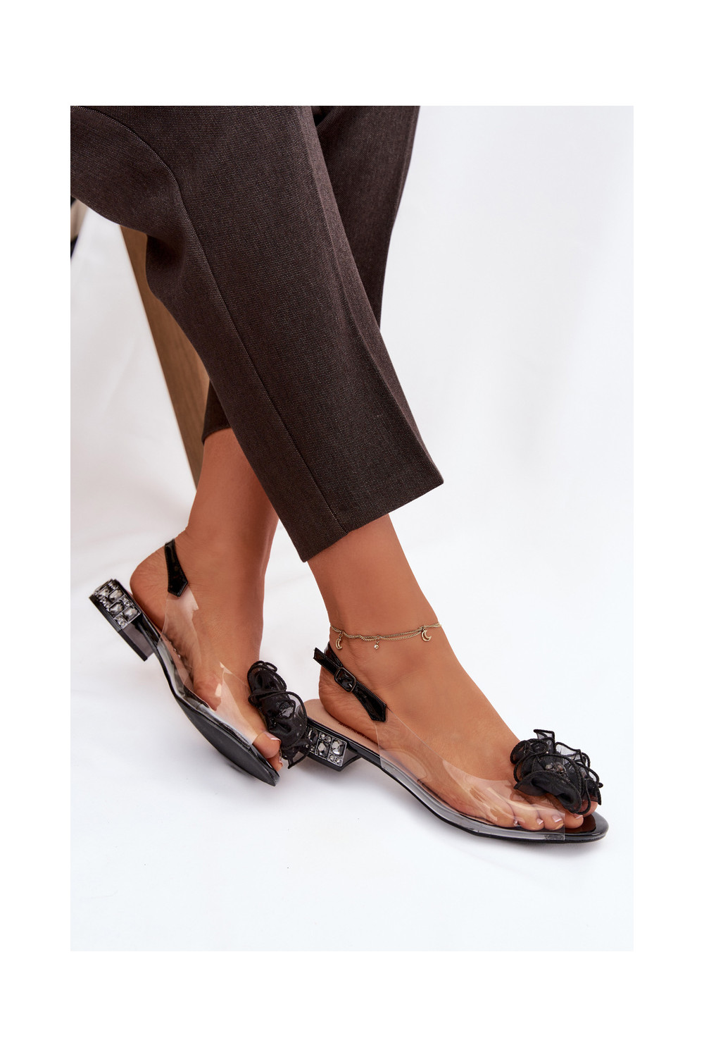 basutės žemu kulniuku su spindinčiomis akutėmis D&A MR52-230 Juodos spalvos