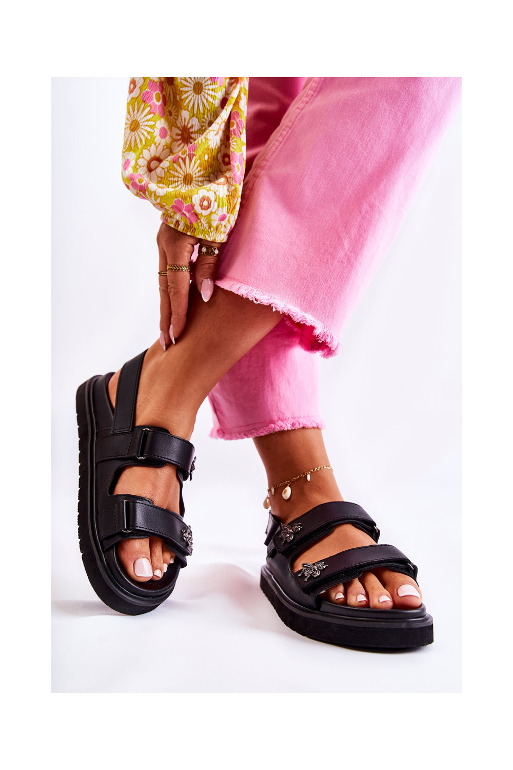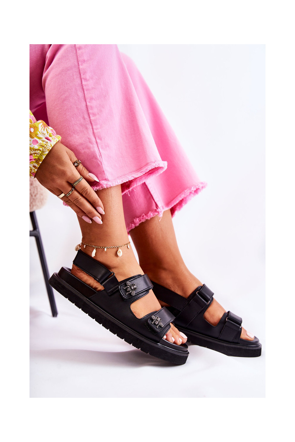 Moteriškas Moteriškos basutės su ornamentais juodos spalvos Elly