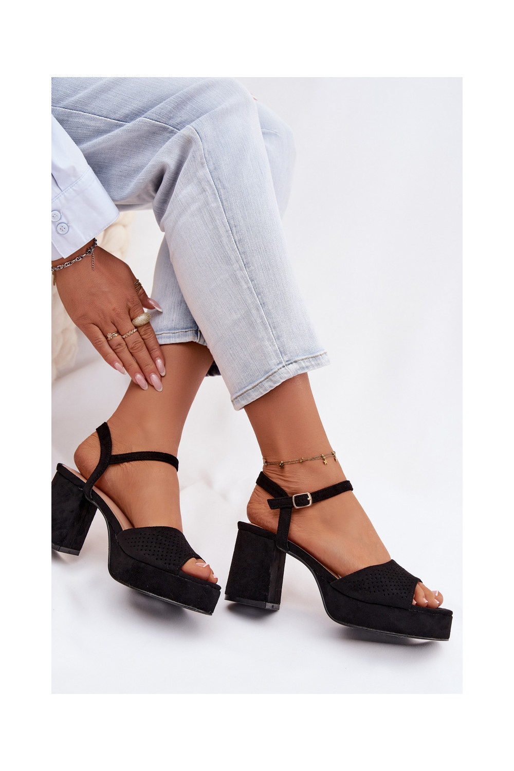 Moteriškos aukštakulnės basutėssuiš eko zomšosu juodos spalvos Iserelle