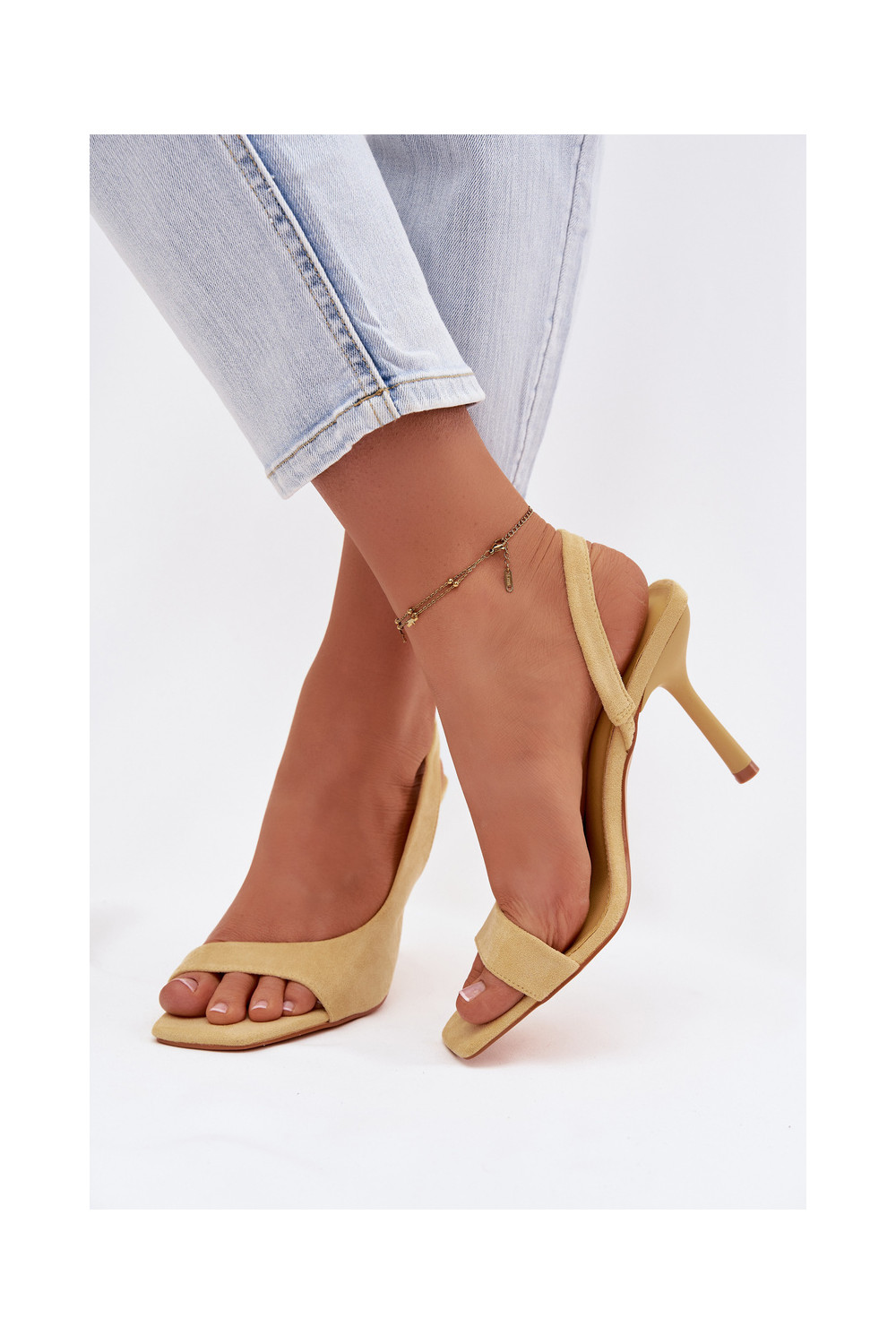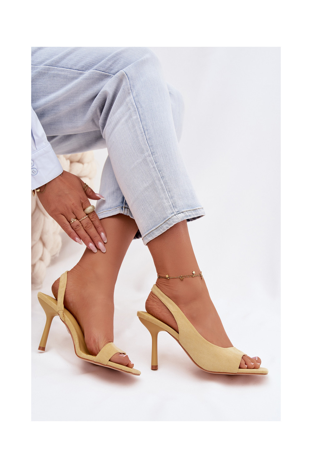 Moteriškos basutės su plonais kulniukaissuiš eko zomšosu geltonos spalvos Calvoria