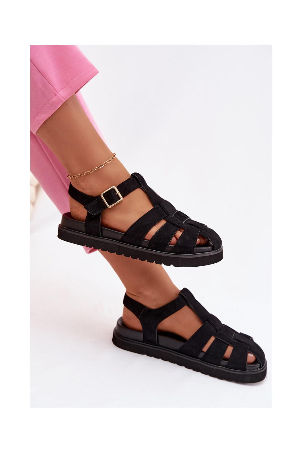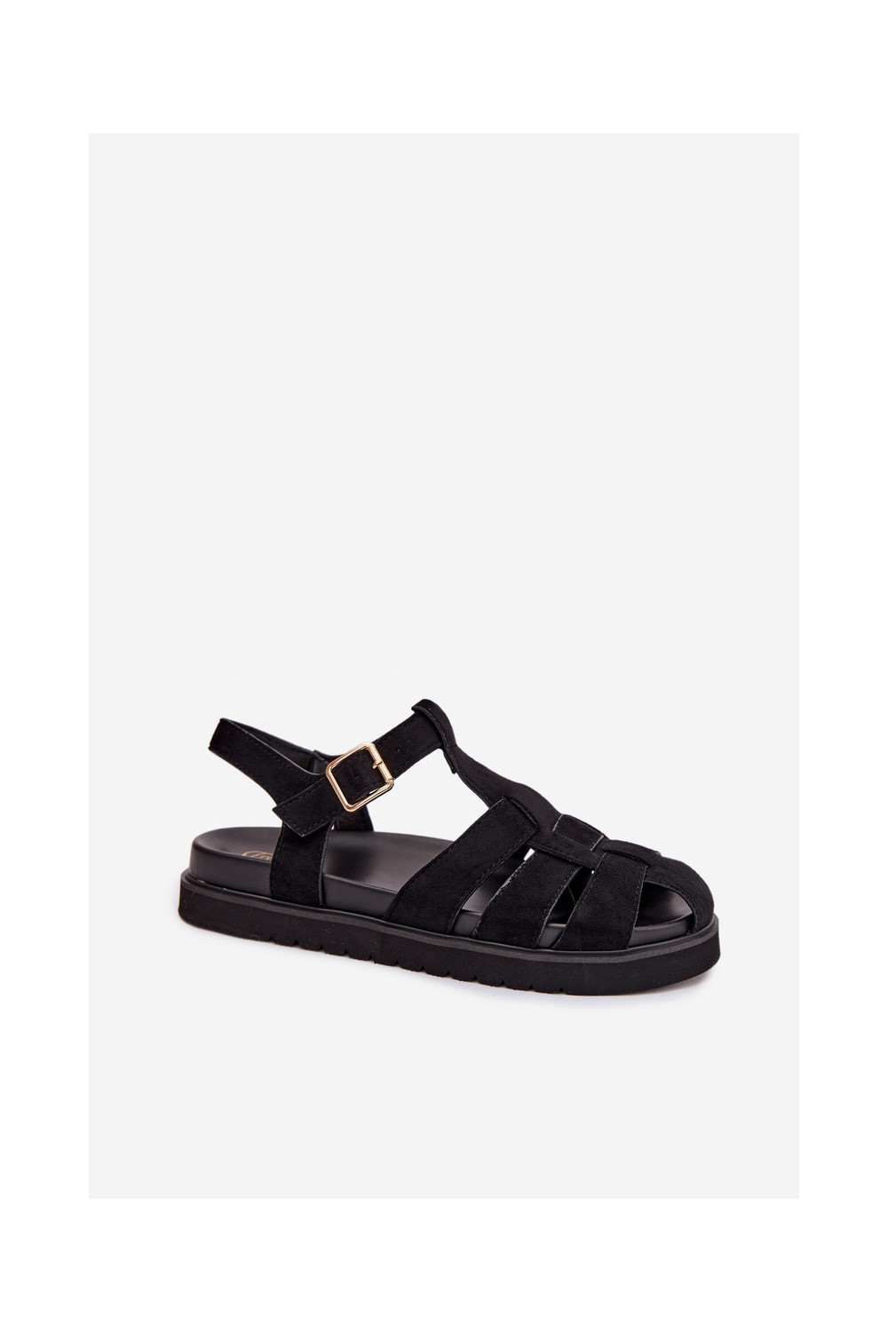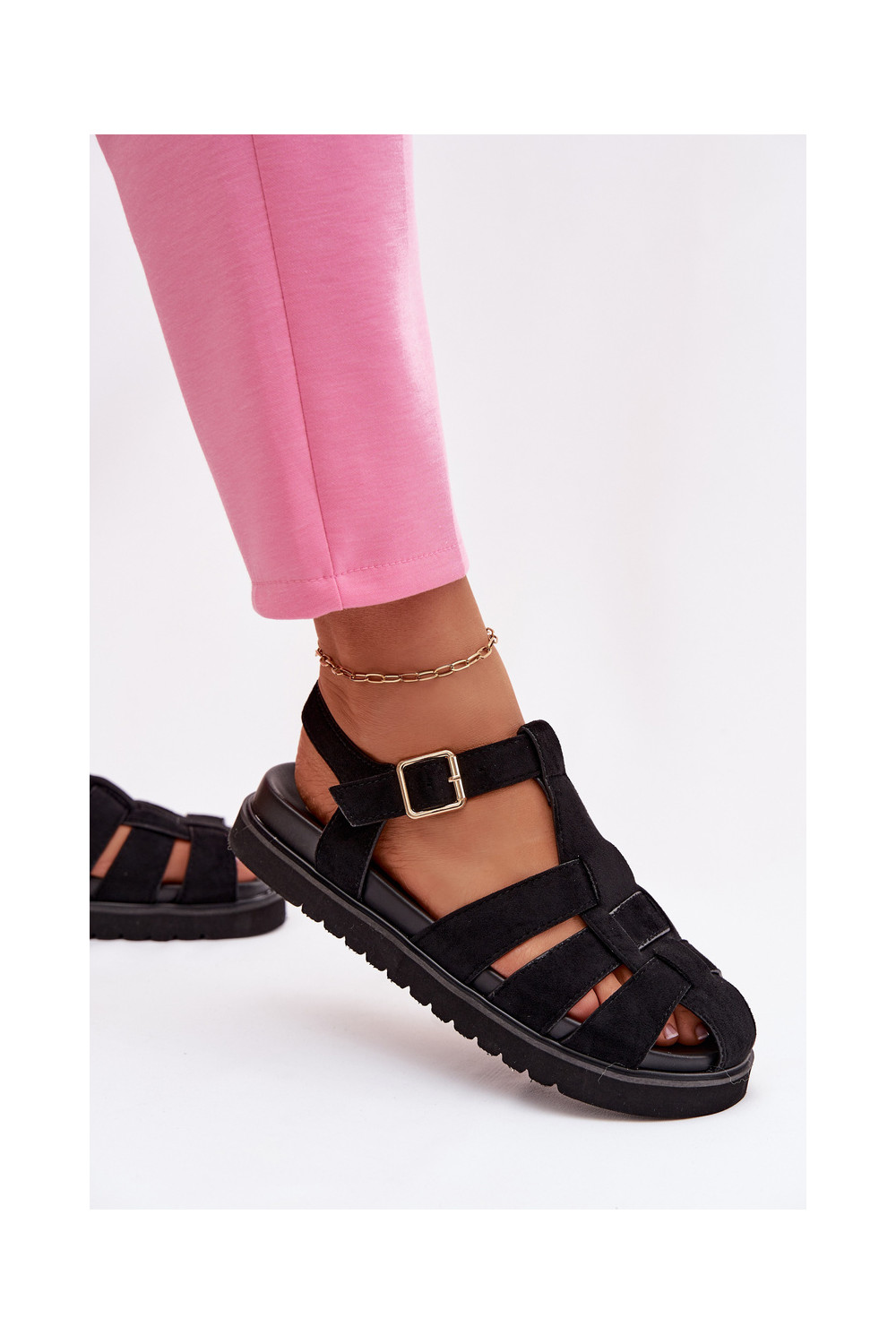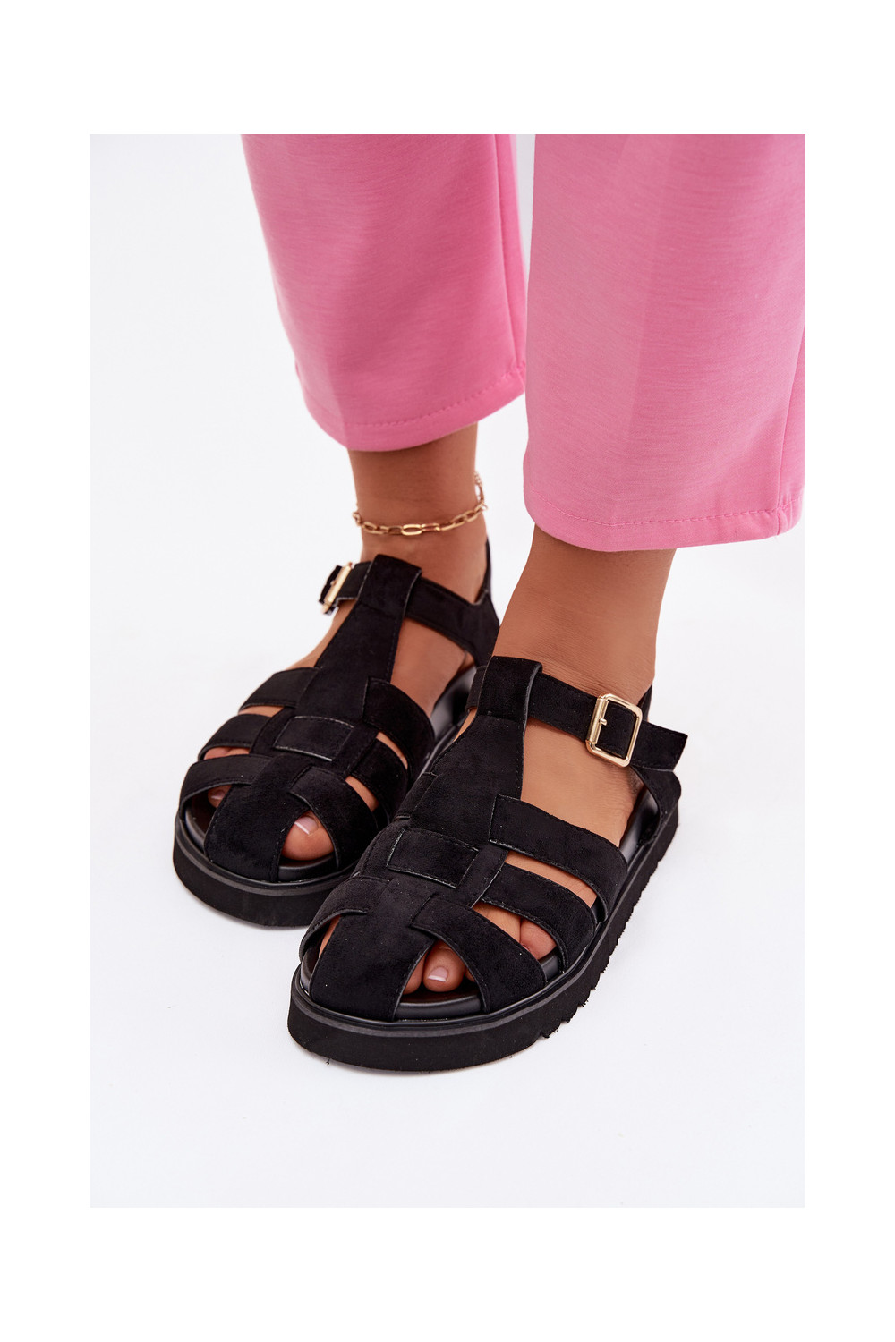 Moteriškos basutės Rzymianki su aukso spalvos sagtimis su platforma juodos spalvos Terelina