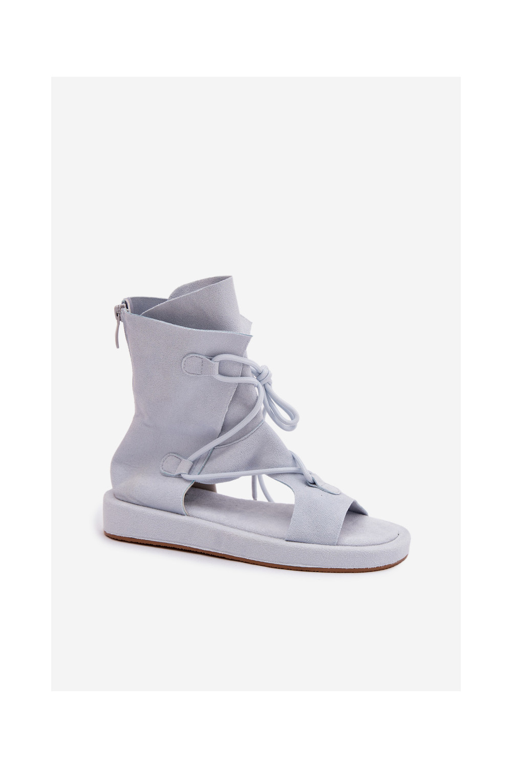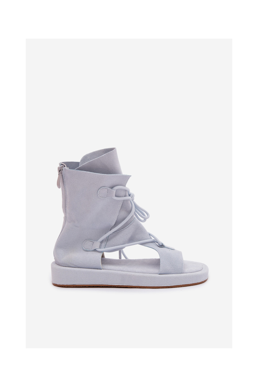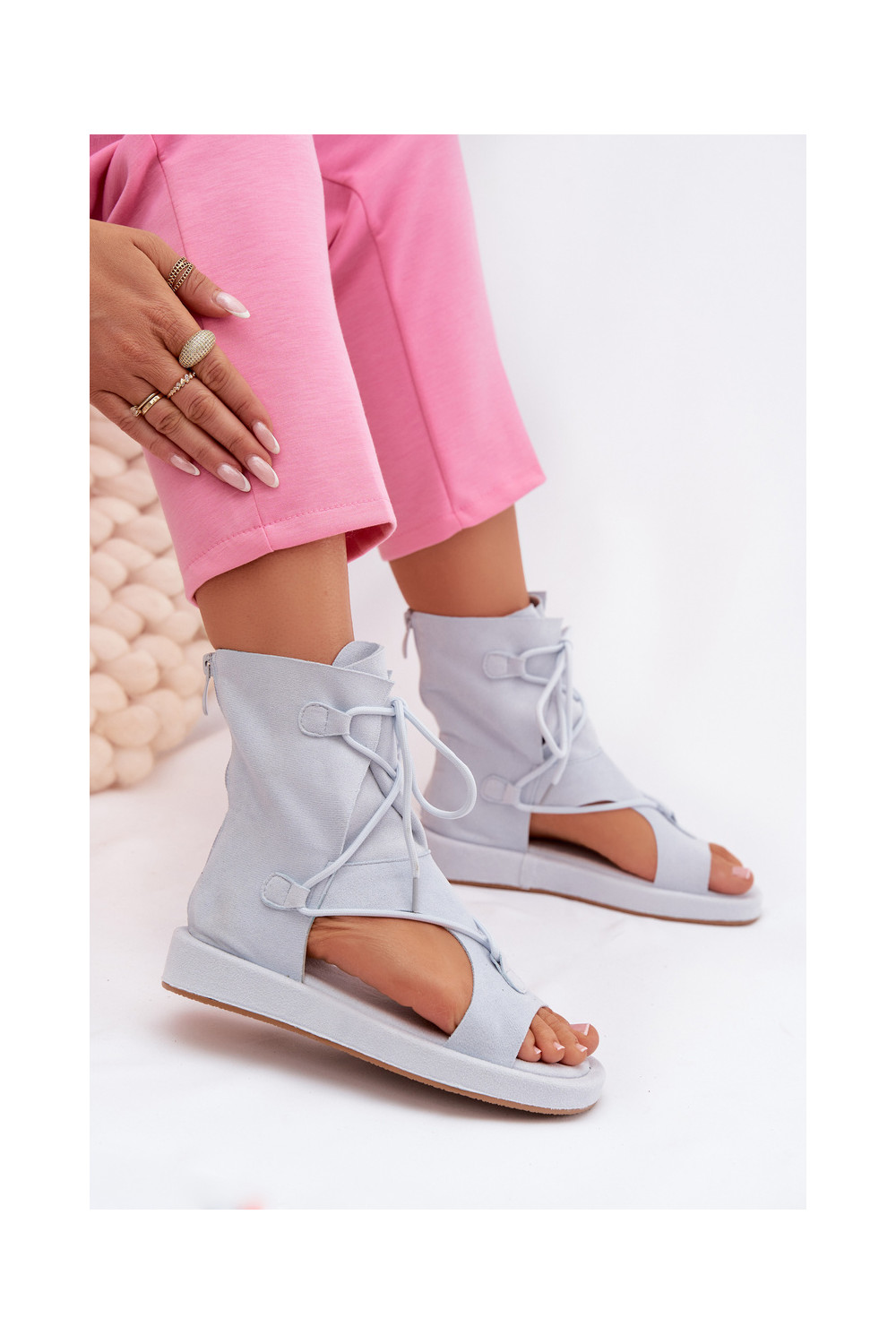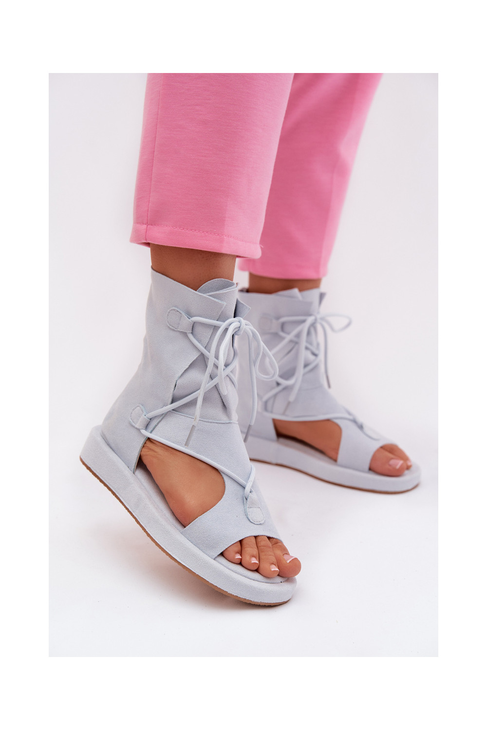 Moteriškos basutės iš eko zomšosoĮe su auliuku I INiązaniem šviesiai mėlynos spalvos Ferlisse