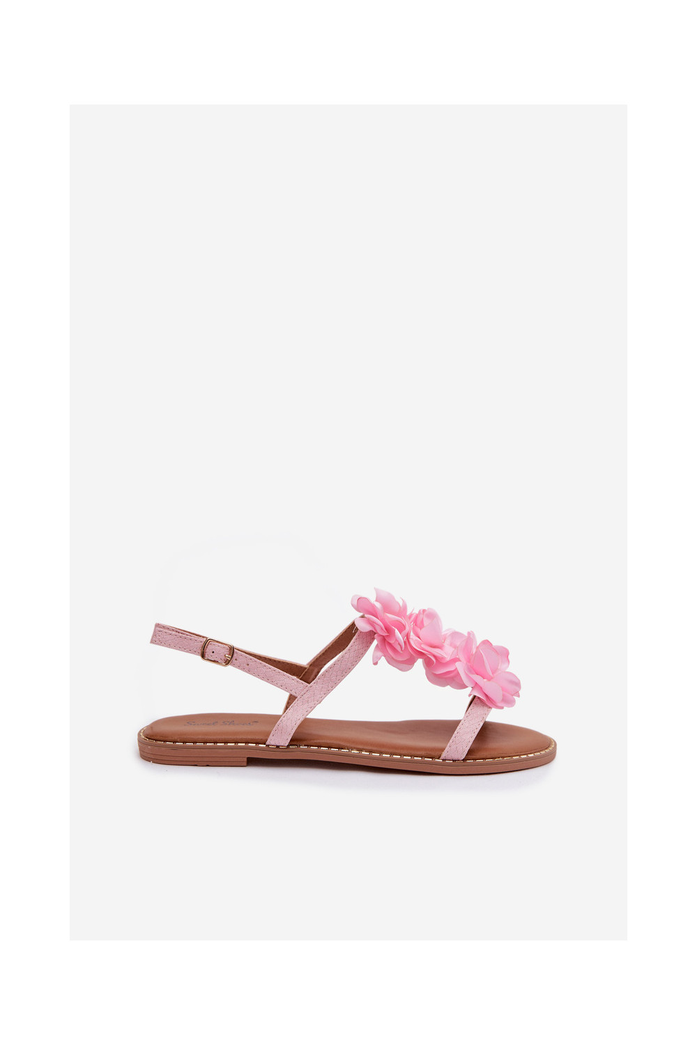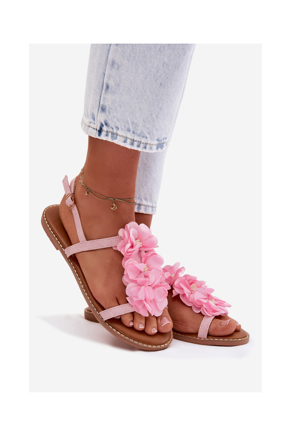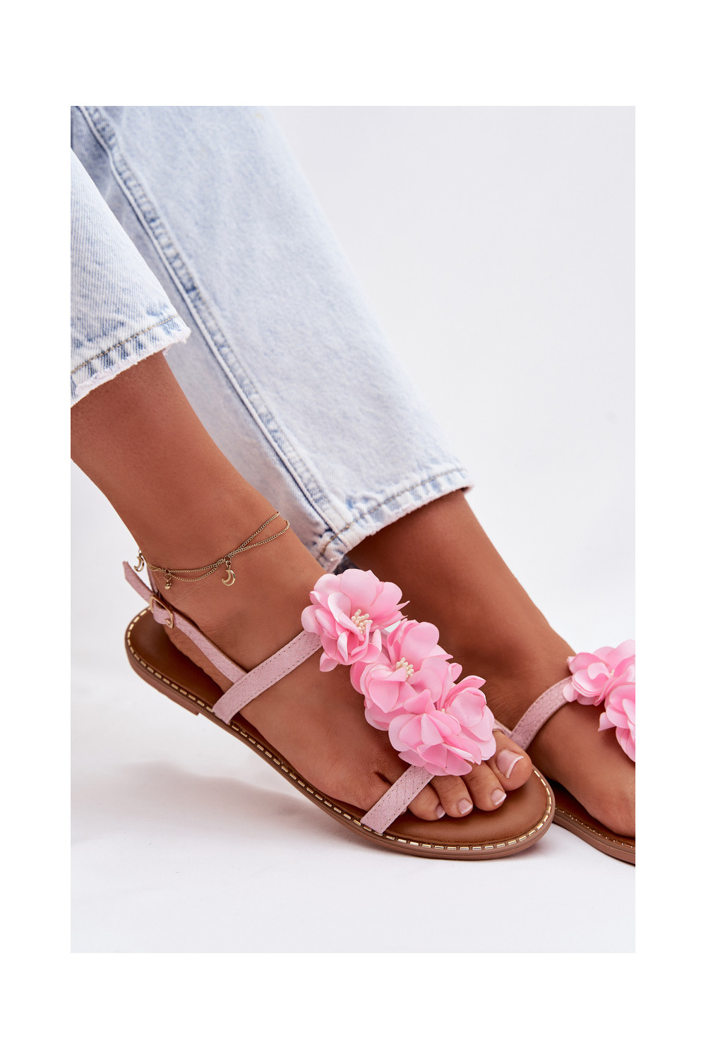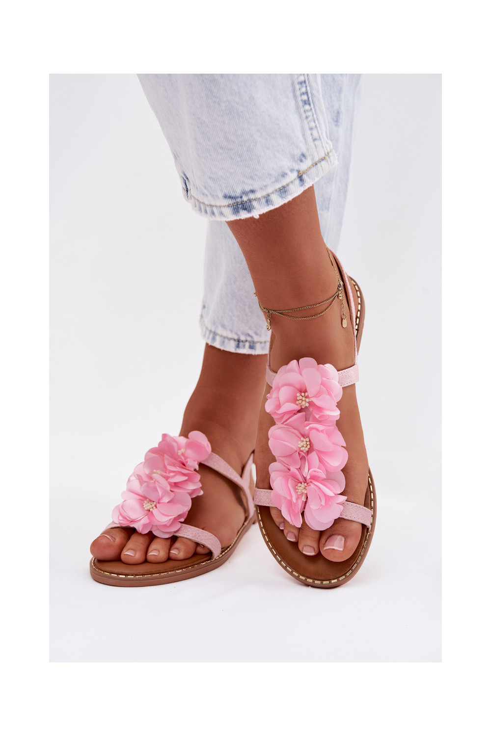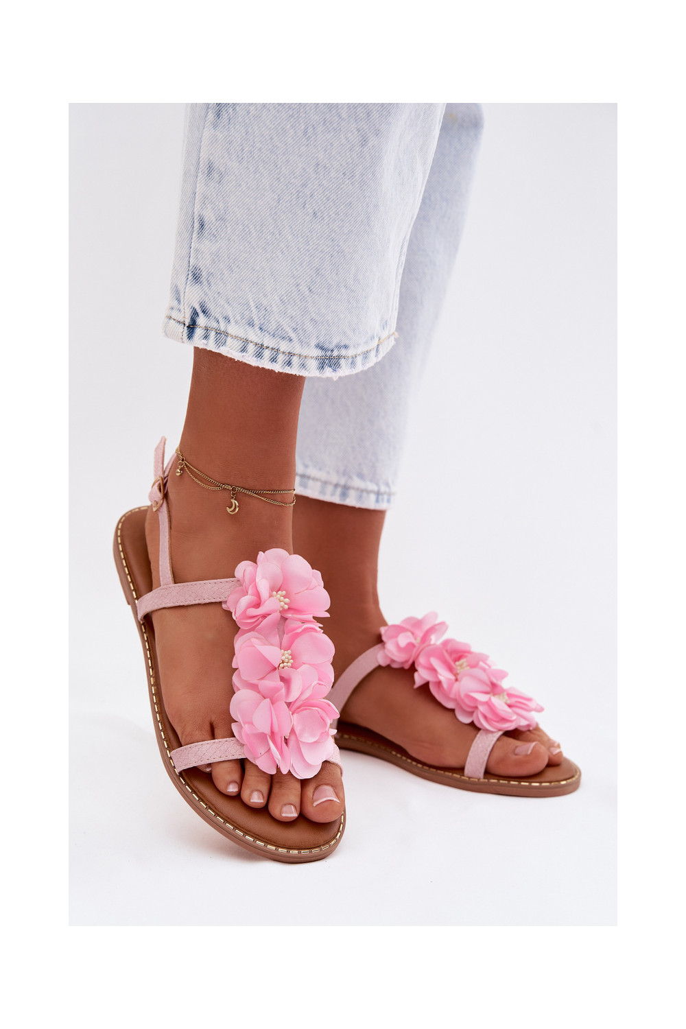 Lygiapadės basutės moterims  su gėlių motyvaiskami rožinės spalvos Noemia