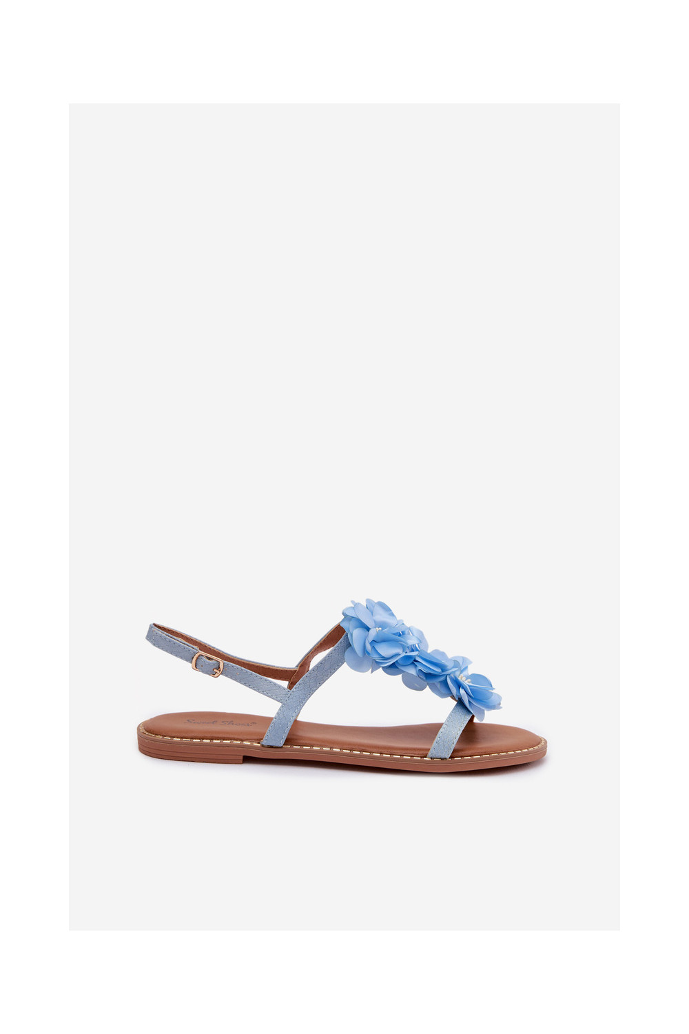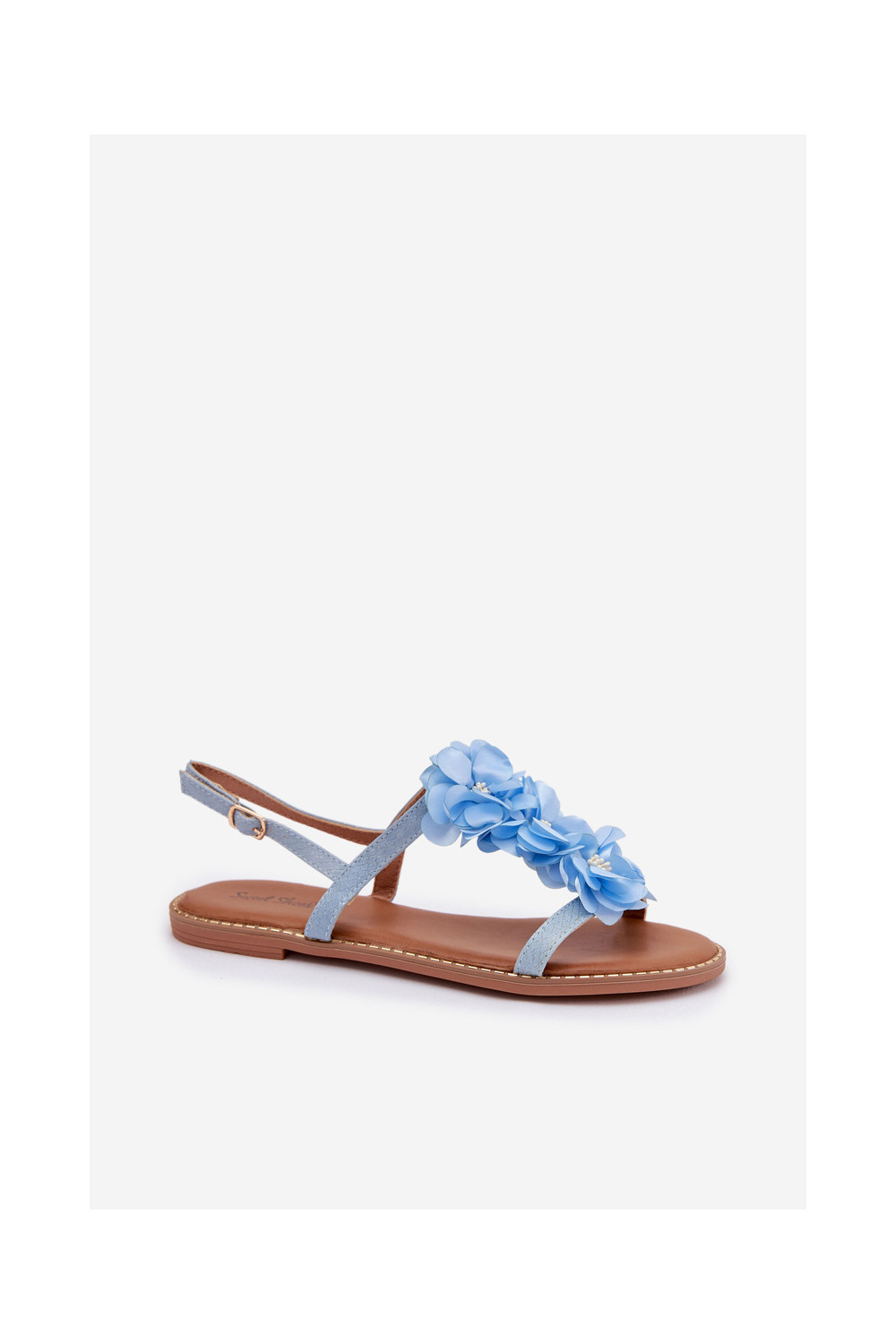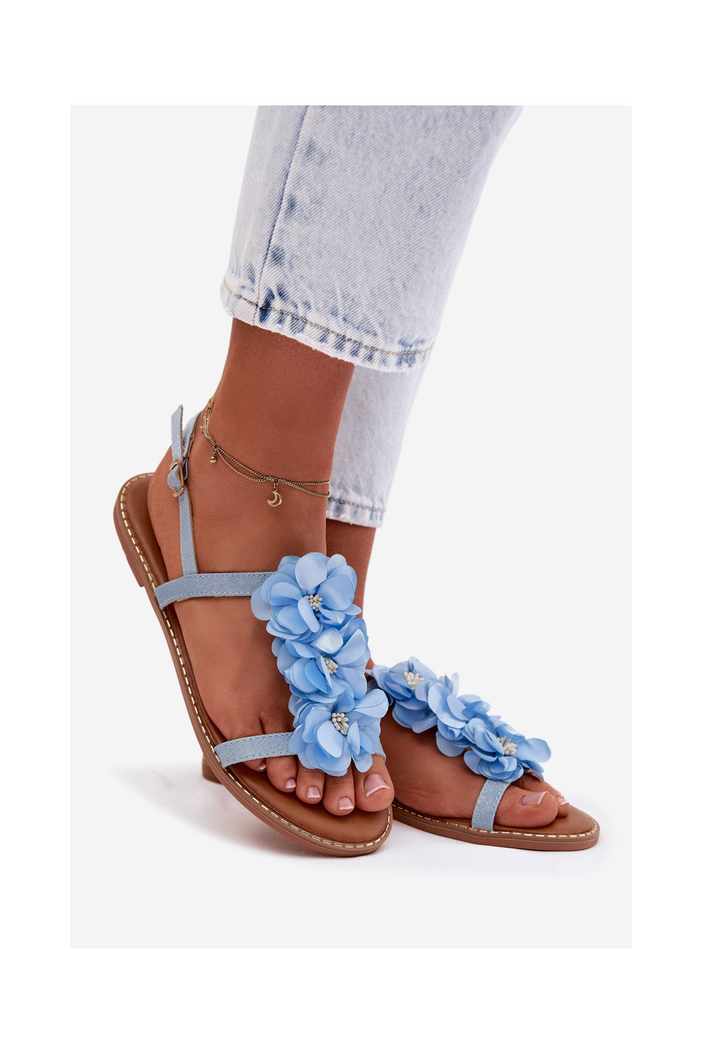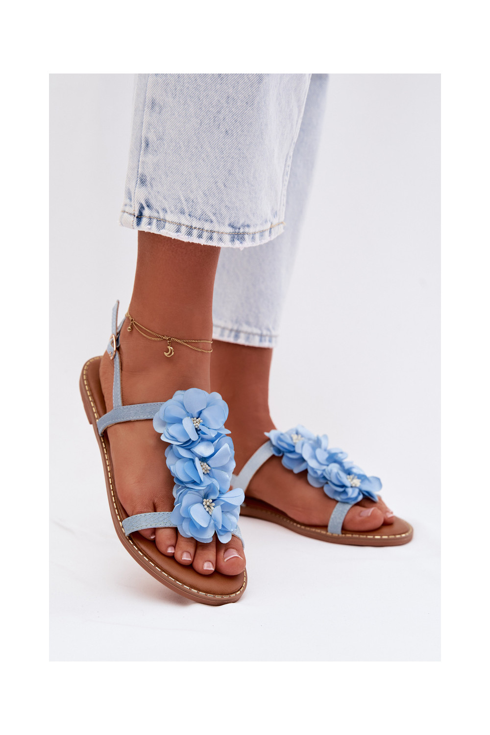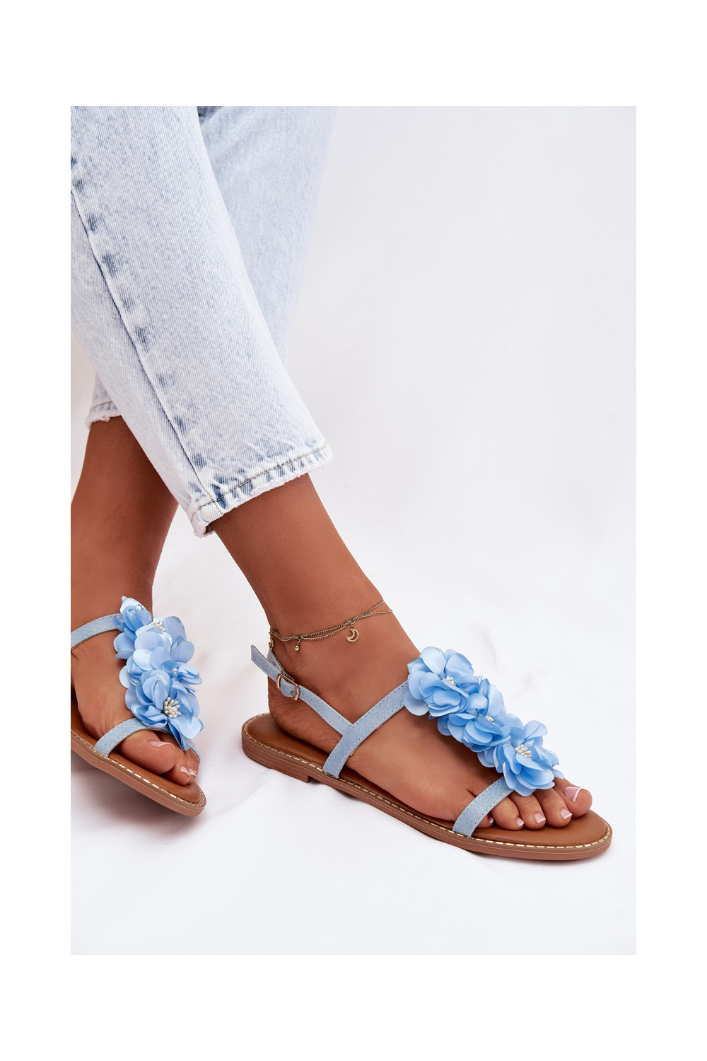 Lygiapadės basutės moterims  su gėlių motyvaiskami mėlynos spalvos Noemia